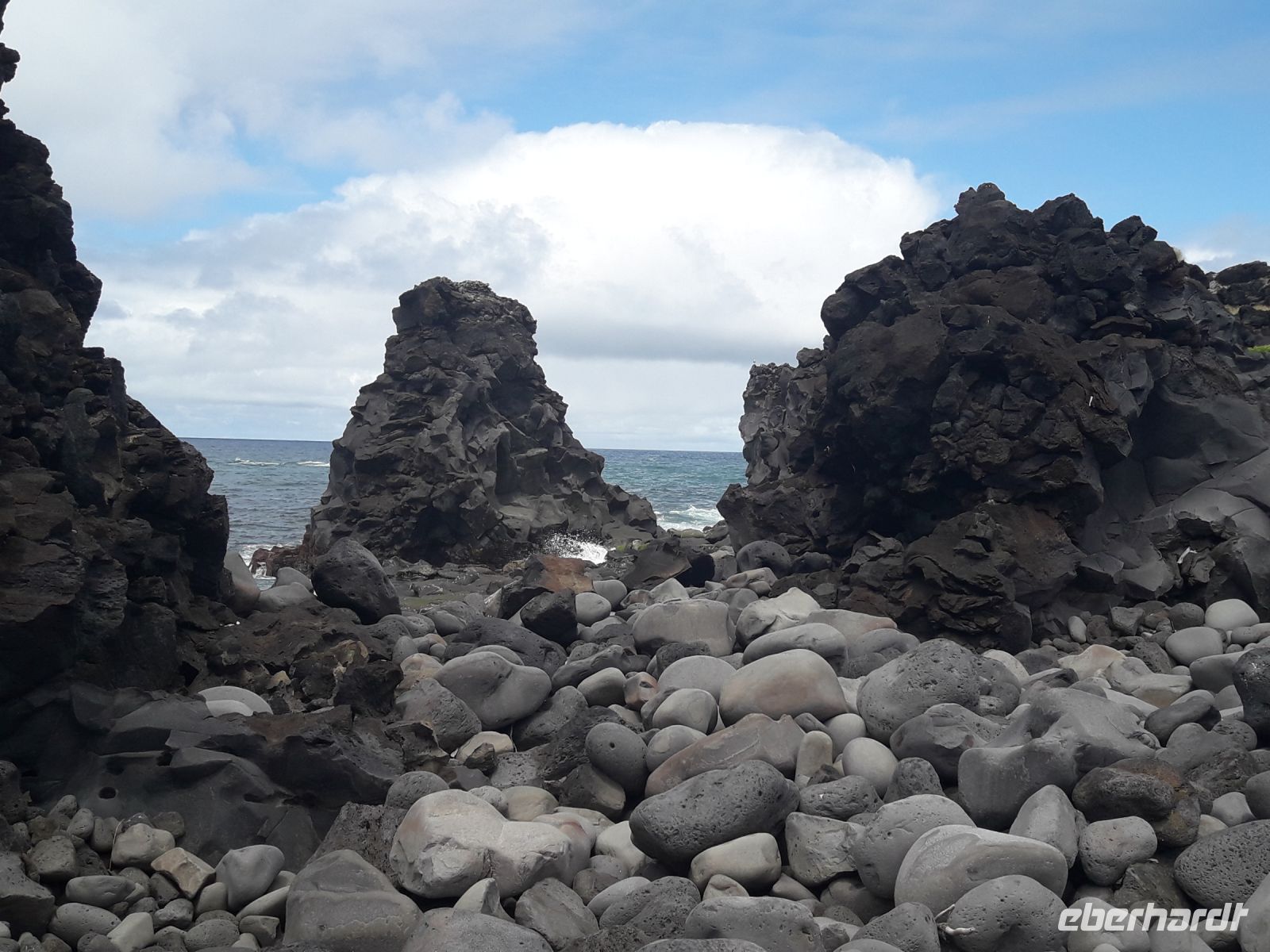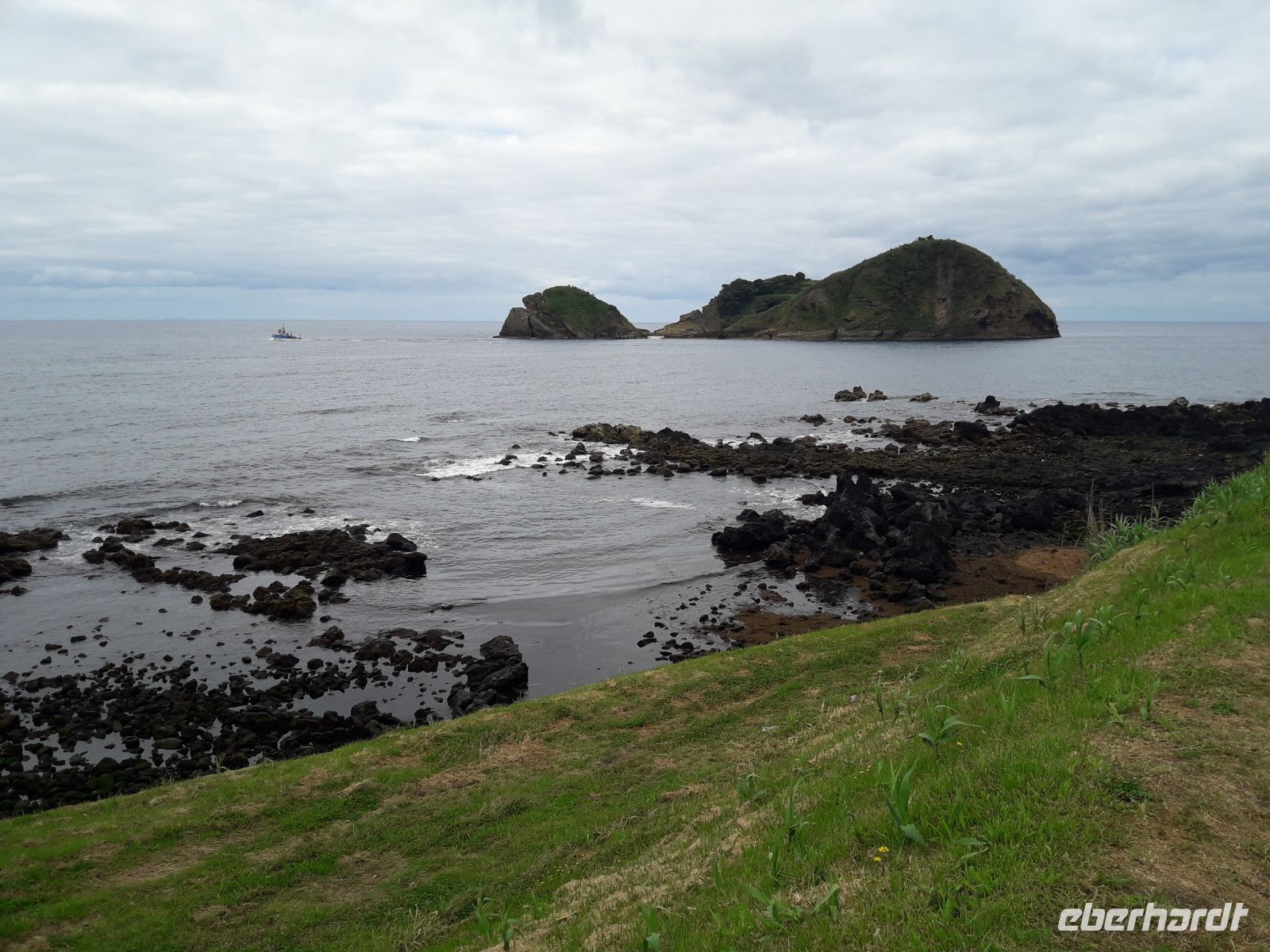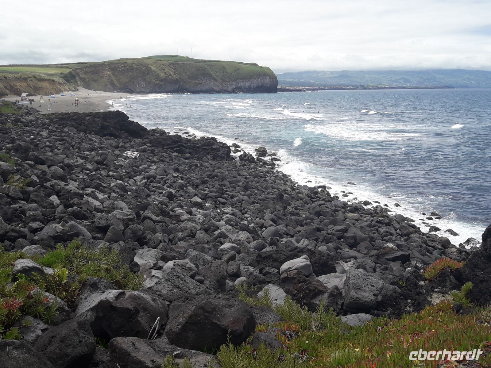 Von der Brandung rundgeschliffene Basaltfelsensteine und ein weiter Sandstrand begeistern uns an der Praia de Santa Barbara, ehe wir uns auf den Rückweg nach Ponta Delgada quer über die Insel machen. Später schlemmen wir gemeinsam ein Abendmenü im Restaurant Momentos - Genuss pur!