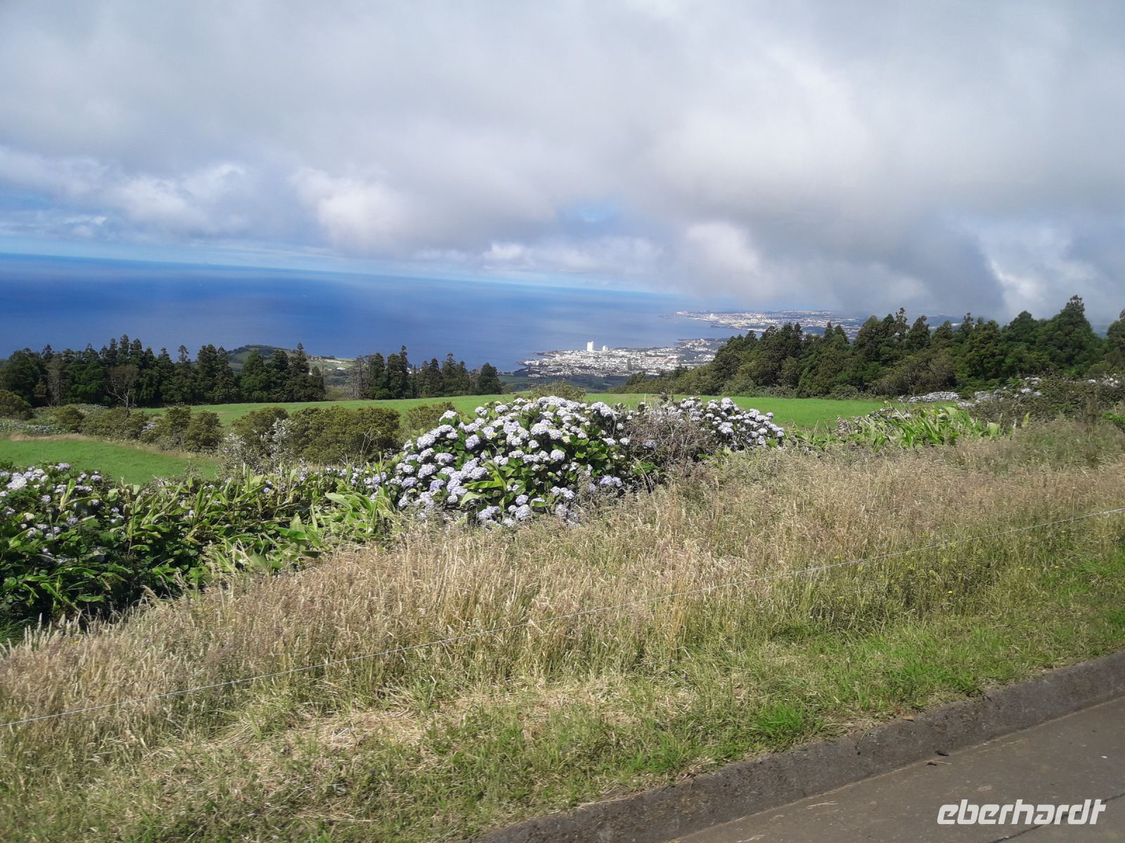 Auf blühenden Hortensienalleen geht es zur Südküste zurück zu einer Ananasplantage. Danach unternehmen wir noch in Ponta Delgada einen kleinen Stadtrundgang. Wir sehen die Festung Sao Bras, die Kirche Nossa Senhora de Esperanca und die Kirche Matriz de Sao Sebastiao mit ihren verzierten Portalen im Stil der Manuelik sowie das Rathaus.