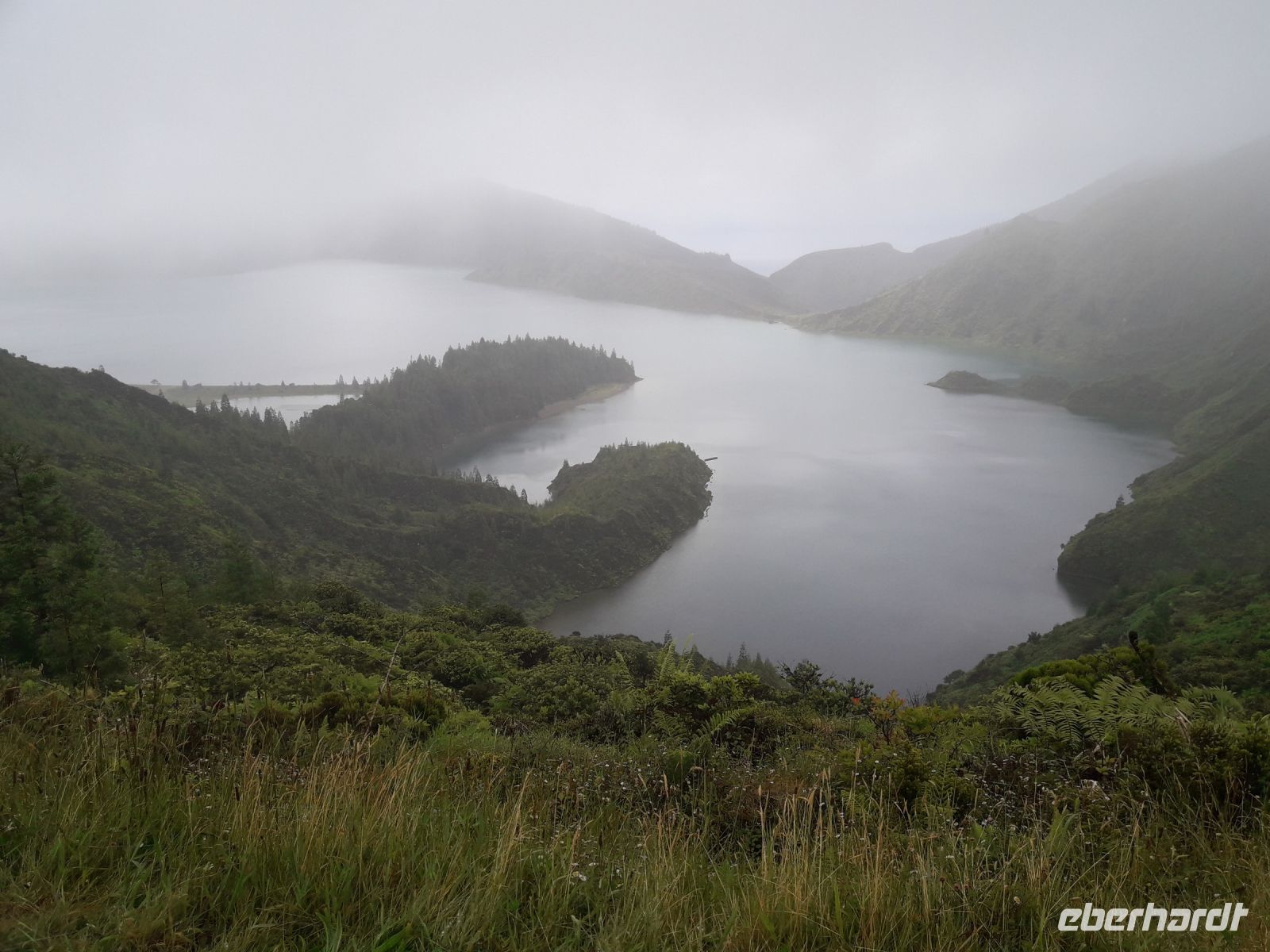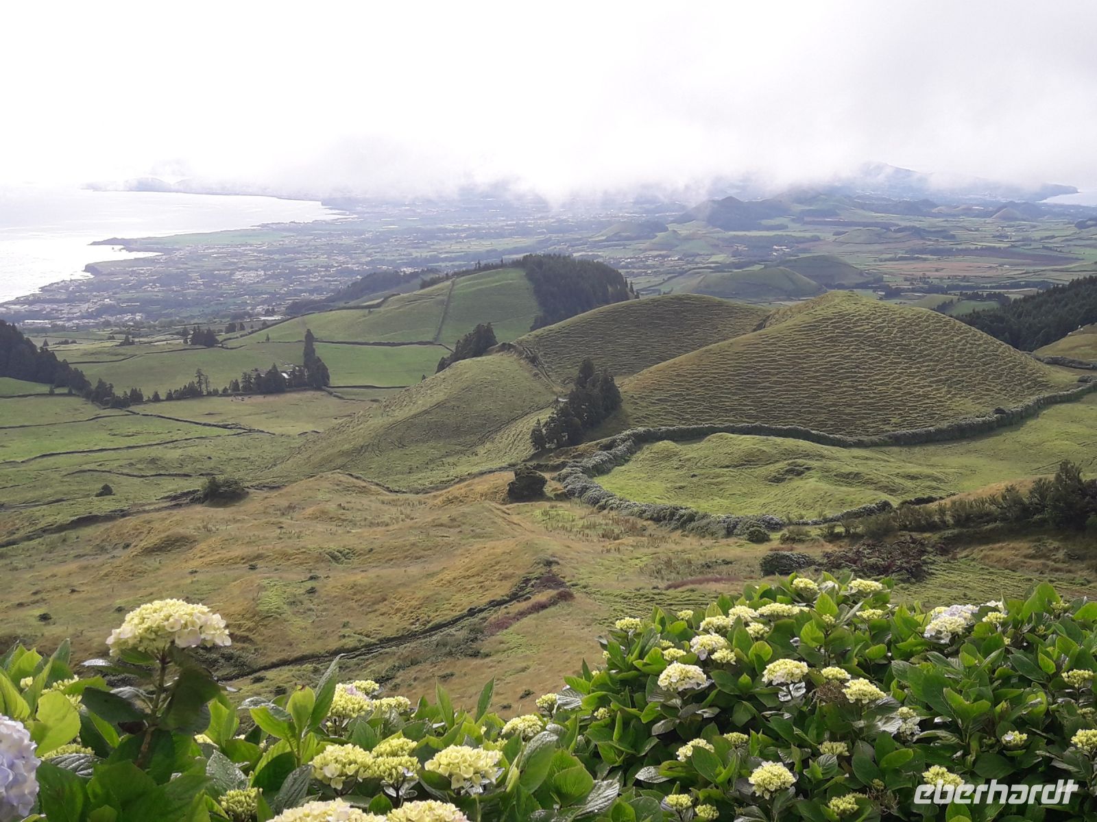 Heute erwarten uns in dem Inselparadies mit seinem subtropischen Klima herrliche Aussichtspunkte und zunächst das kleine Industriestädtchen Lagoa, das für seine Tonverarbeitung bekannt ist. Wir besuchen die Keramikfabrik. Sie stellt auch die typischen weiß-blauen Kacheln (Azulejos) her. Nach einem Spaziergang zum Fischerhafen geht es ins Inselinnere hinauf auf 900 Meter Höhe und in dichten Nebel. Wir sehen zunächst so gut wie gar nichts vom Lagoa do Fogo, dem "Feuersee", doch nach etwa 20 Minuten öffnet sich der Blick zum Krater. Er ist etwa 2 Kilometer lang und 1 Kilometer breit, seine Wände erreichen eine Höhe von bis zu 300 Metern.