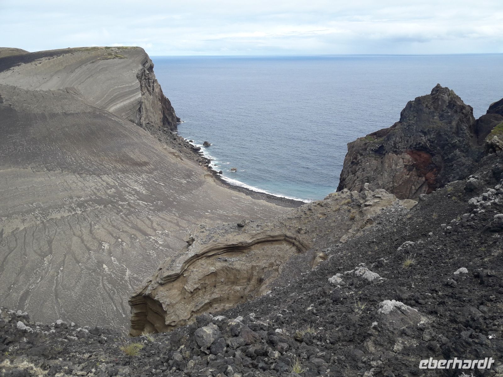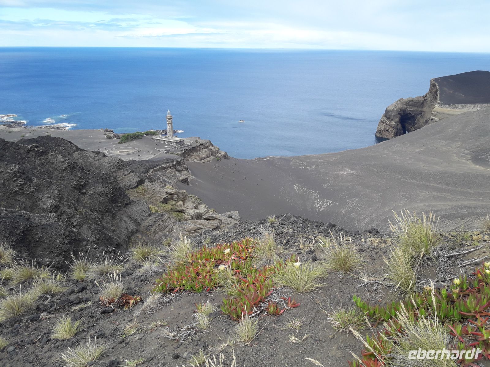 Mit unserem Reiseleiter Paulo geht es gleich nach der Landung auf Faial in den äußersten Westen der Insel nach Capelinhos. Hier ist 1957 im Zuge eines untermeerischen Vulkanausbruchs vor einem Leuchtturm eine ganze Halbinsel aus Lava und Asche mit einer Fläche von 2,4 Quadratkilometer neu entstanden. Das vegetationslose Braun dieser bizarren Mondlandschaft bildet einen reizvollen Kontrast zum Blau des Meeres.