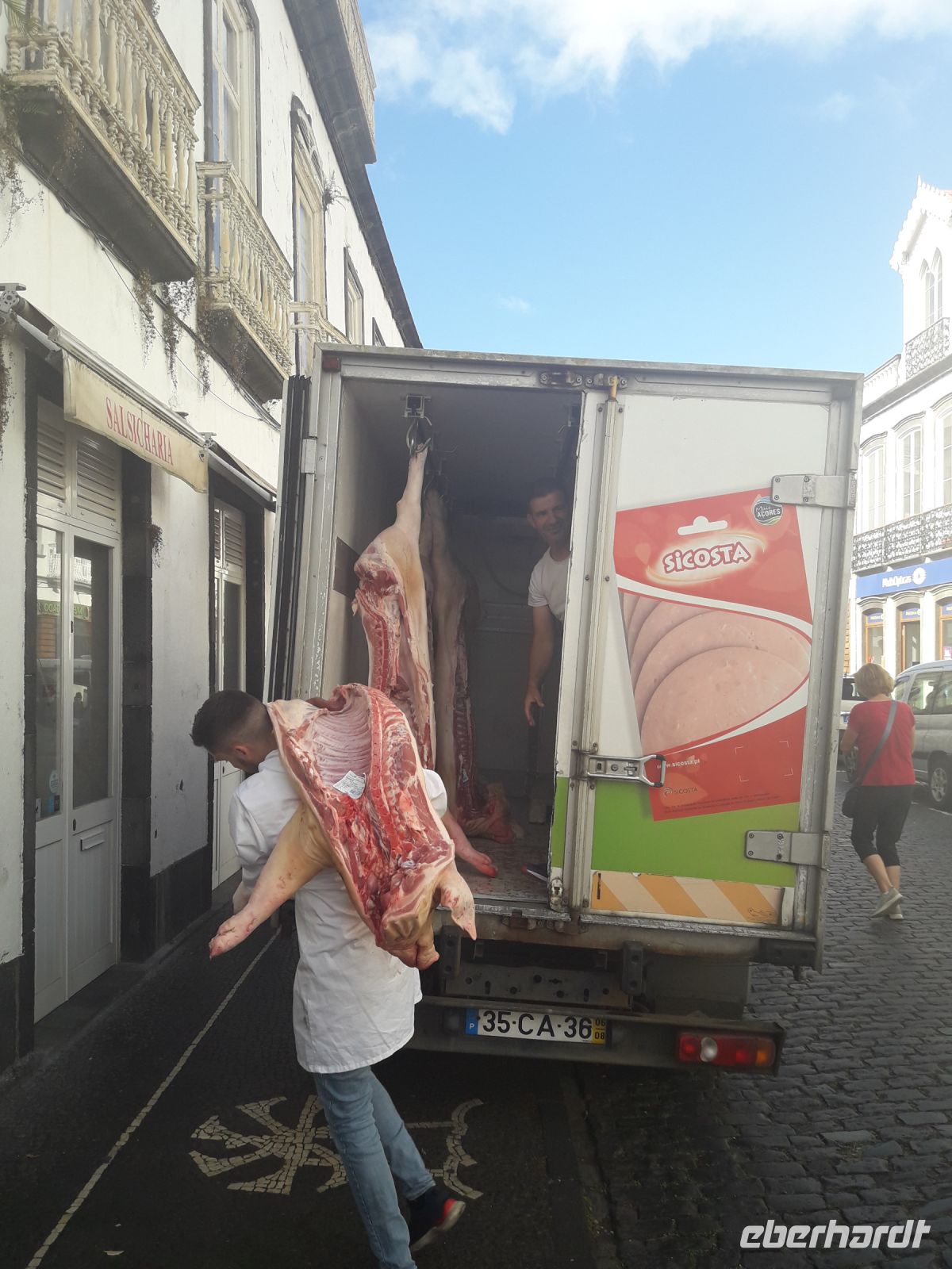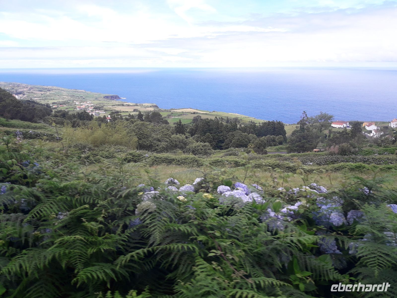 In Ribeira Grande an der Nordküste genießen wir die Mittagspause und die Likörverkostung in einem kleinen Lädchen und dann den wunderbaren Ausblick vom Vorplatz der Igreja Matriz. Die Stadt profitierte einst von den Flachs- und Wollspinnereien, die sich entlang des "großen Flusses" angesiedelt hatten.