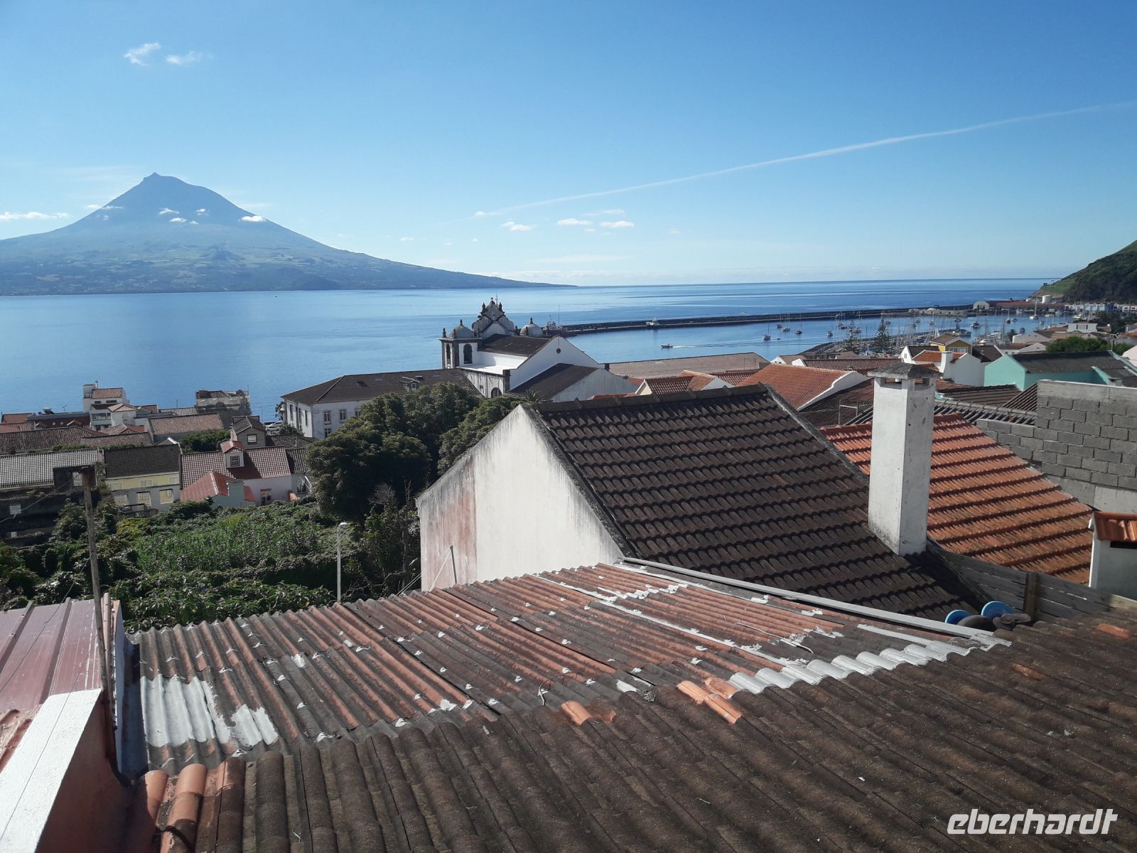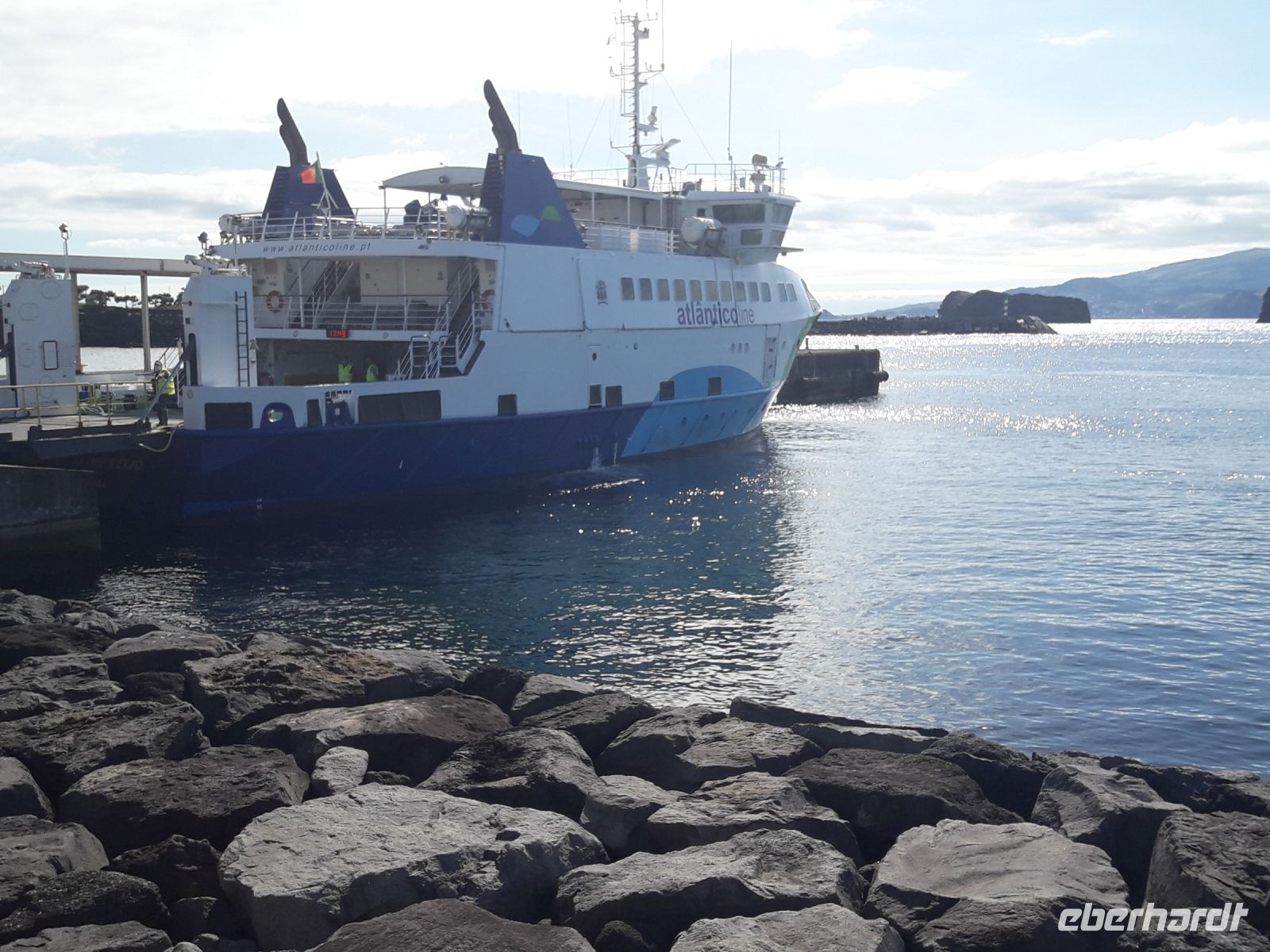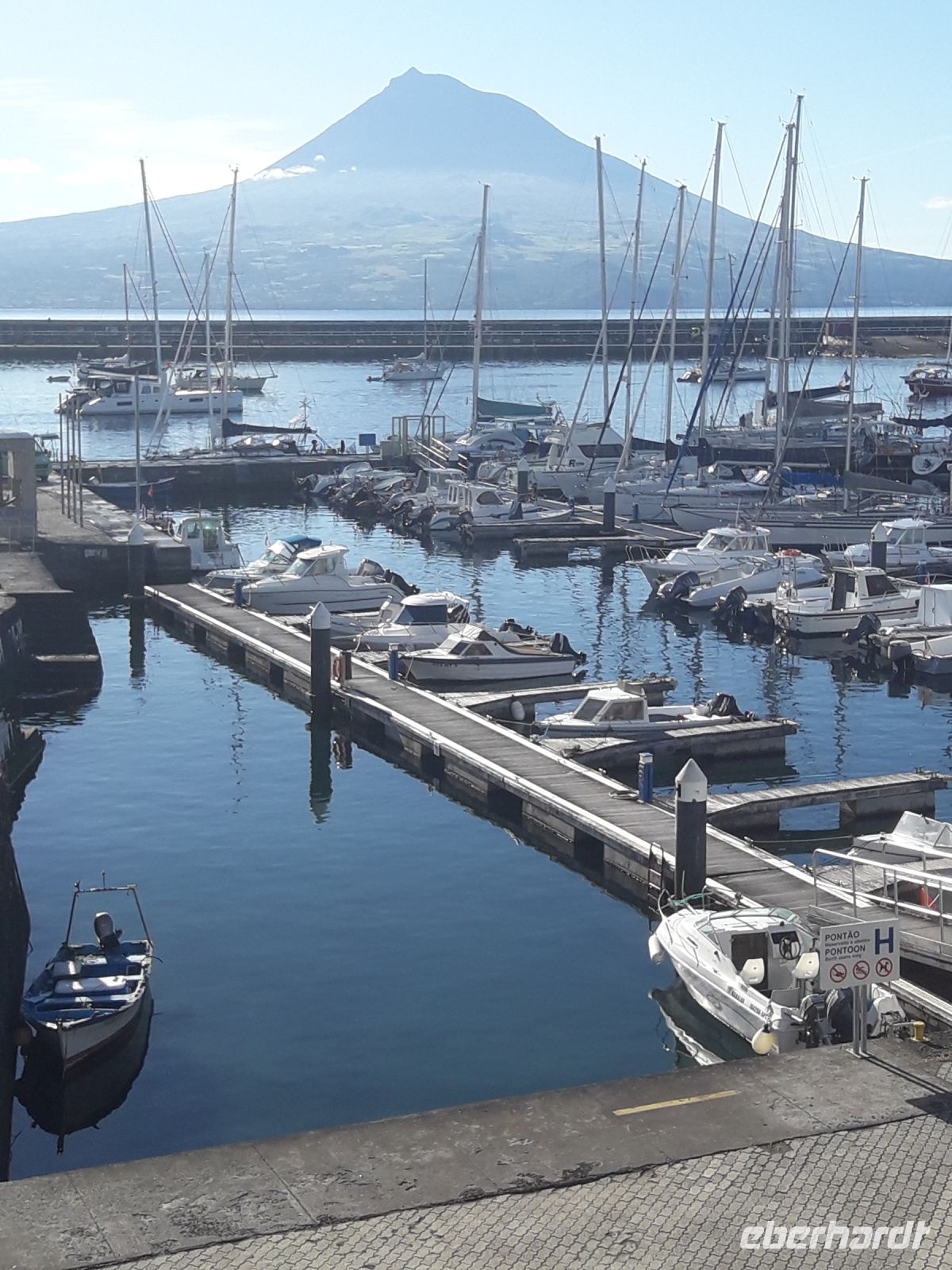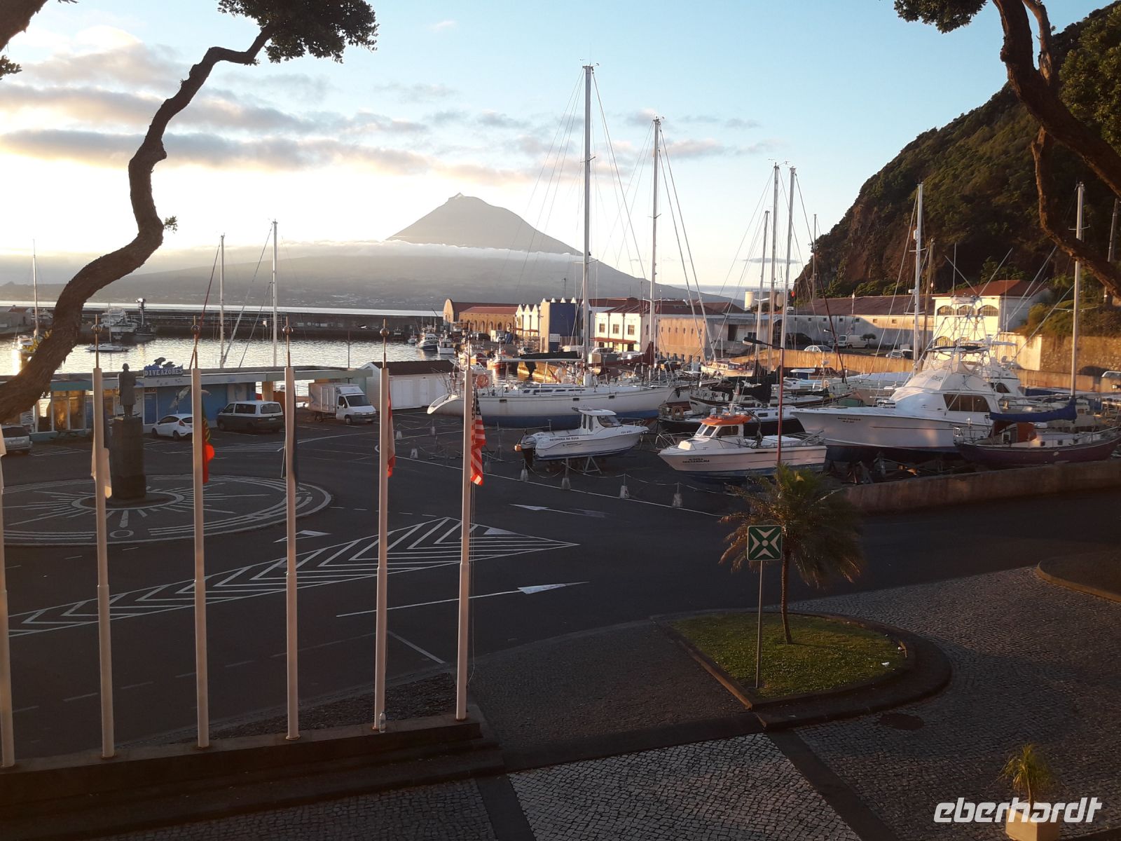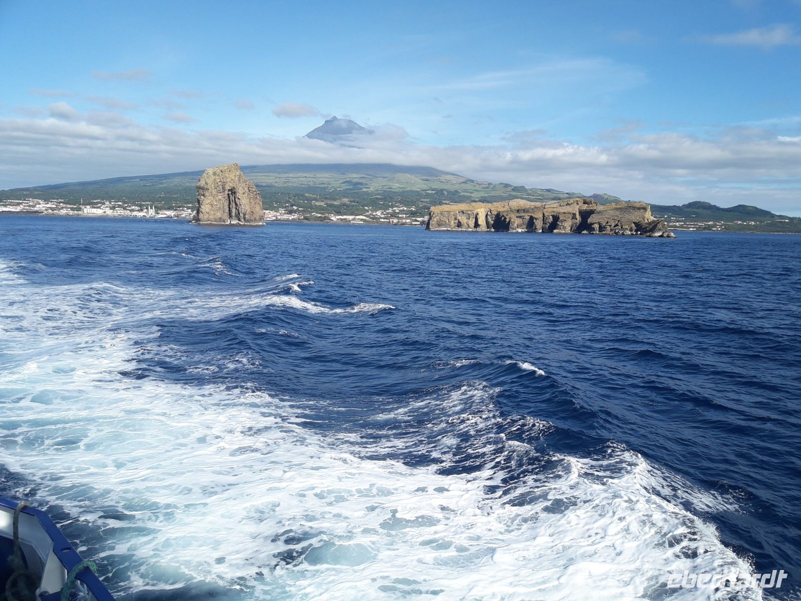 Noch können wir am Morgen die in Wolken gehüllte Spitze des Vulkankegels Pico nicht sehen bei unserer Überfahrt mit der Fähre zur gleichnamigen Insel, der zweitgrößten und geologisch jüngsten der Azoren. Sie ist nur ganze 6 Kilometer von Faial entfernt.