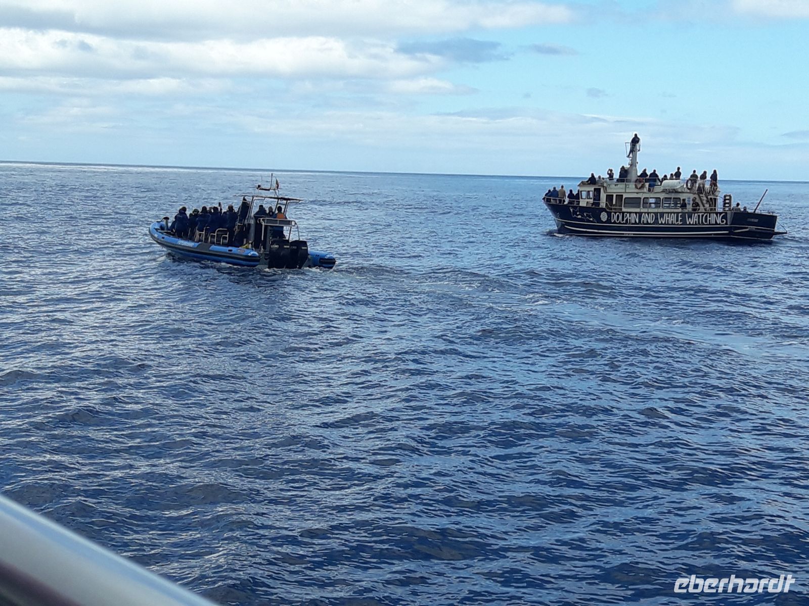 Fast alle unserer 20köpfigen Reisegruppe nehmen am Vormittag an der fakultativen knapp dreistündigen Walbeobachtungstour teil.