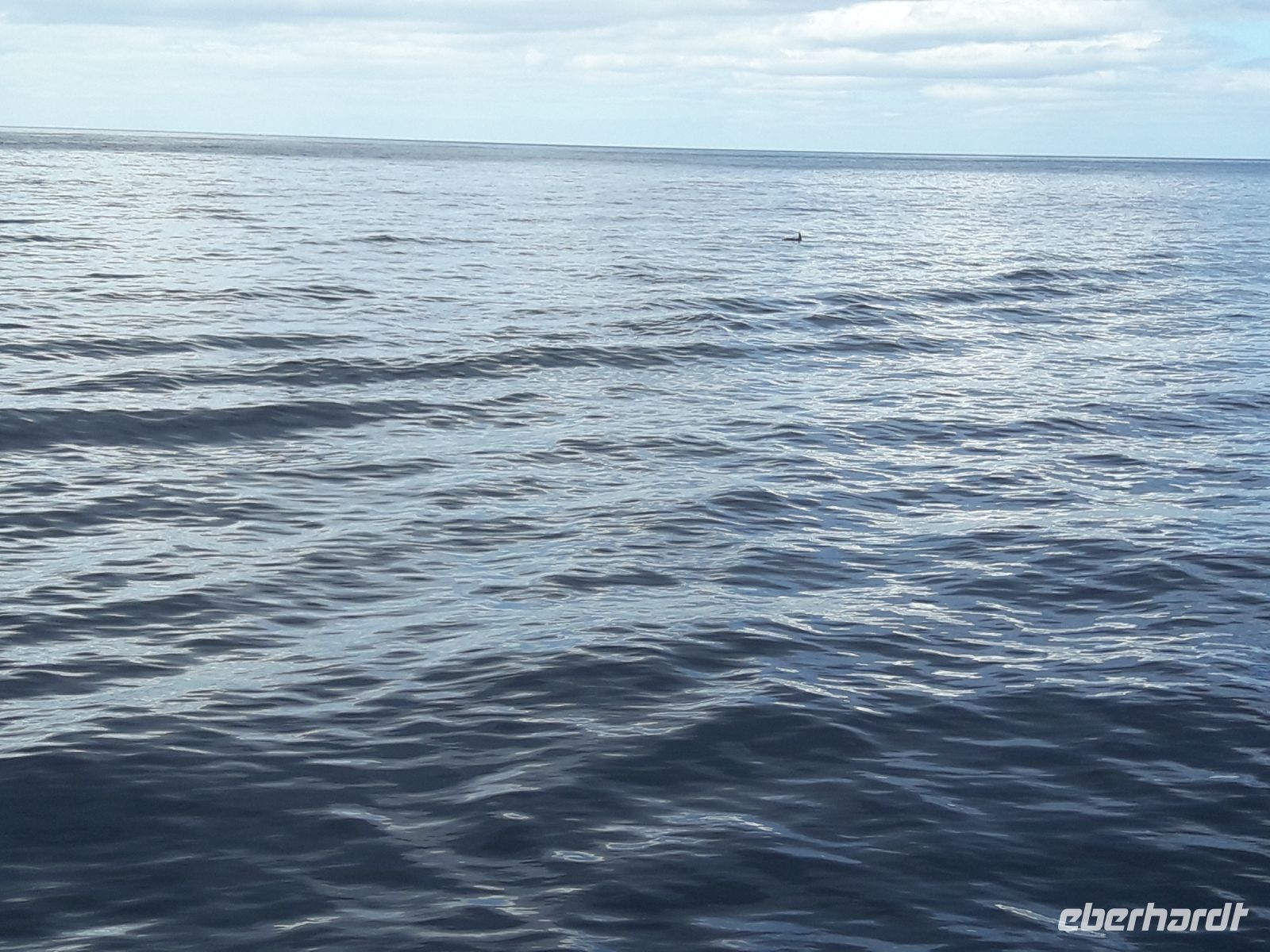 Wir haben Glück: Die See ist relativ ruhig und trotz der bedrohlichen Wolkenfront gibt es keinen Niederschlag. Und wir sehen Wale - gleich mehrere - und dann auch noch Riesendelfine!!!