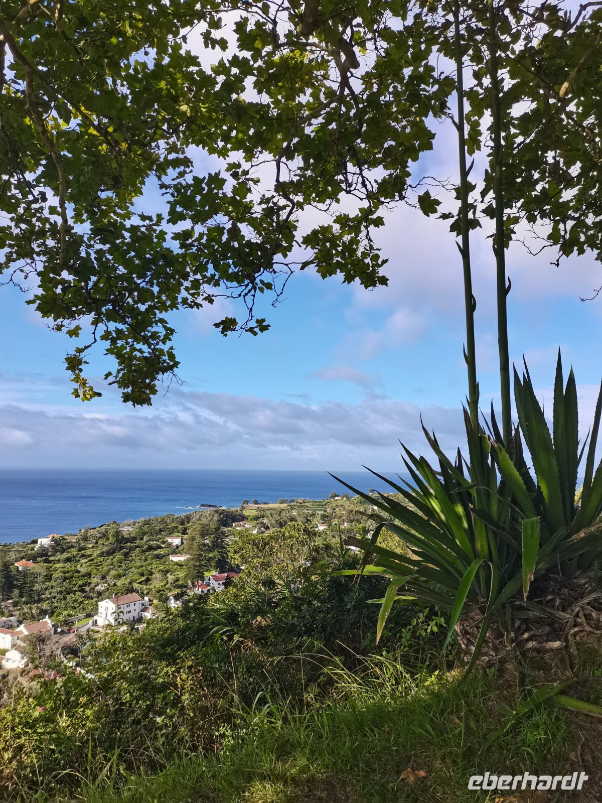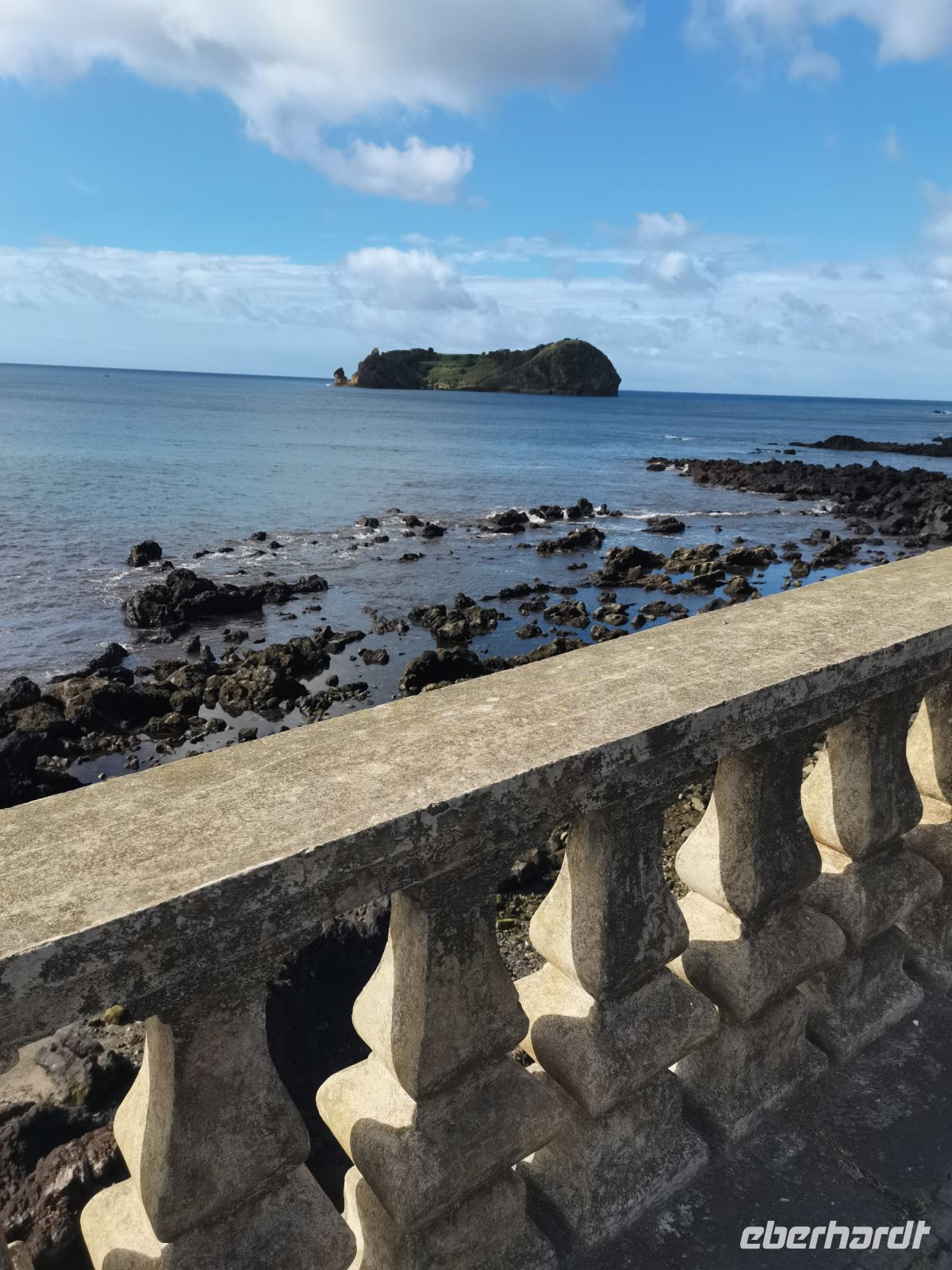 Das in Mitteleuropa bekannte Hochdruckgebiet "Azorenhoch" entsteht zwar in der Nähe der Azoren, wird aber mit den Westwinden z.B. nach Deutschland geweht. Das Wetter auf den Azoren ist hingegen wechselhaft, manchmal auch mehrmals am Tag. Heute ist also Zwiebellook angesagt, da sich das Wetter trotz milder Temperaturen jederzeit ändern kann. In der Tat ist das Wetter an diesem Morgen zunächst durchwachsen. Es ist warm, aber leicht bewölkt und ab und zu kommt die Sonne hervor. Unser Bus bringt uns nach Vila Franca do Campo. Schon auf der Strecke verzaubern uns das üppige Grün, die Pracht der Hortensien und die atemberaubenden Panoramen der Insel. Wir fahren vorbei an kleinen Dörfern und machen einen ersten Stopp, um das wunderschöne Panorama zu genießen. Nach der kurzen Busfahrt spazieren wir mit unserer Reiseleiterin durch Vila Franca zum kleinen Fischerhafen, wo wir einem Holzschnitzer bei der Arbeit zuschauen können. Beeindruckend ist die gepflegte Architektur der Ortschaften. Die weißen oder pastellfarbenen Häuser, größtenteils aus heimischem Stein, sind mit Basalt und den für die Azoren typischen grünen Fensterläden verziert. Die aufwändig mit thematischen Musterungen in Form von Fischen oder Wellen gepflasterten Fußwege runden das charakteristische Stadtbild ab. Vor Vila Franca liegt die kleine Vulkaninsel Ilheu, in deren Bucht von Juni bis Oktober gebadet und geschnorchelt werden kann.