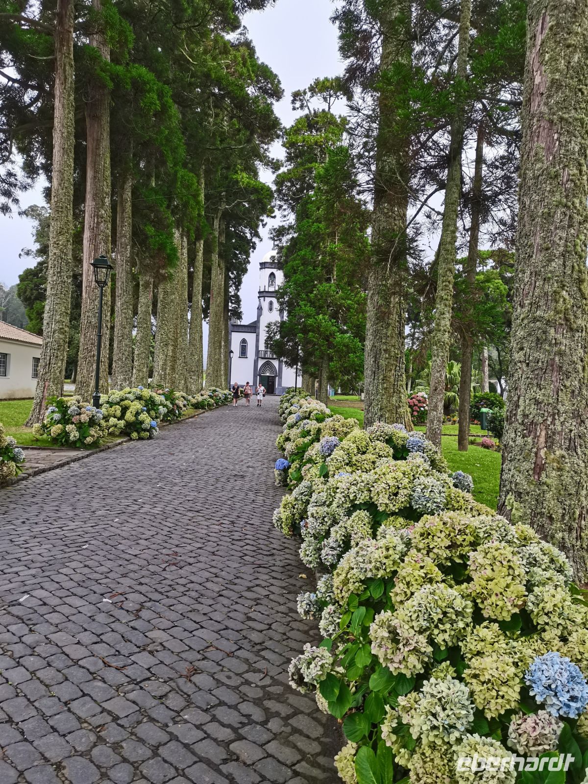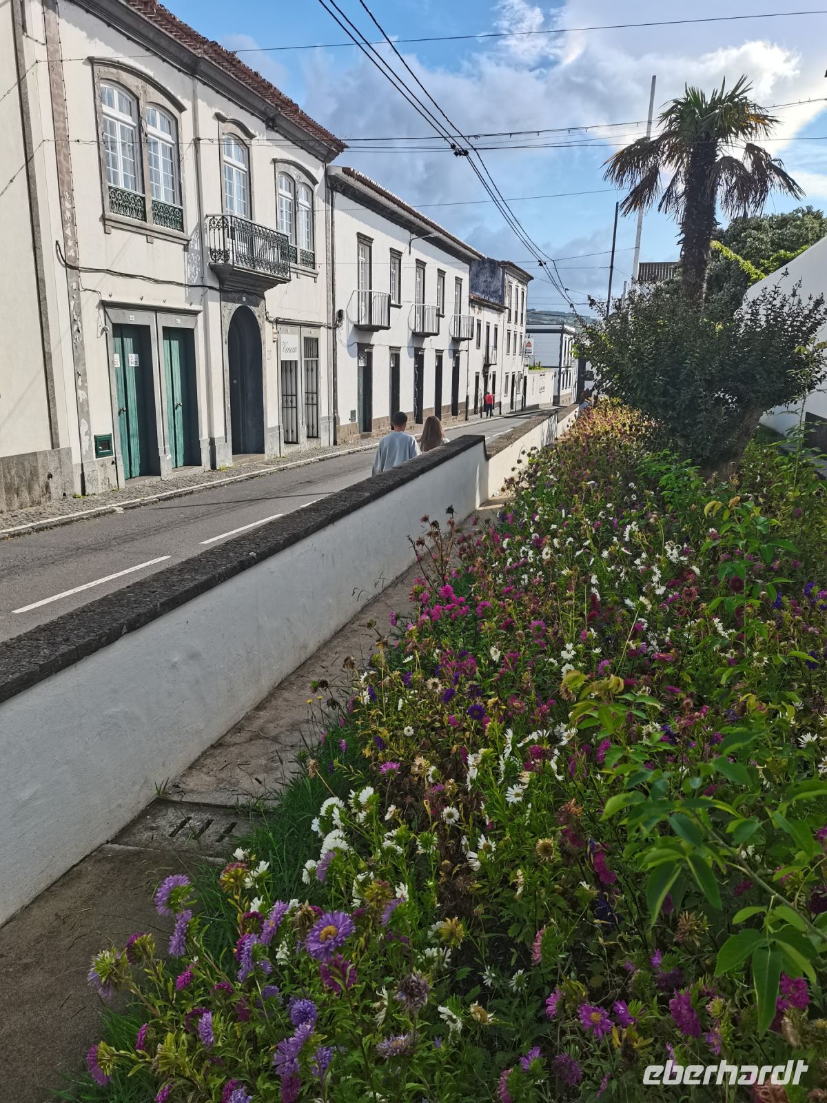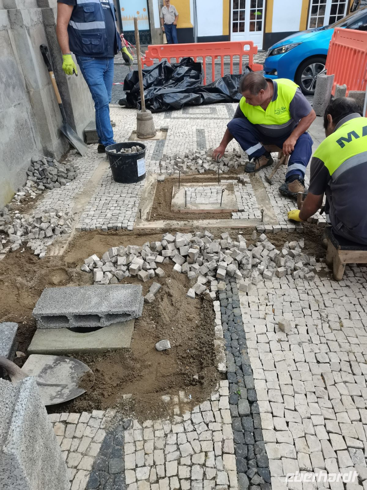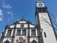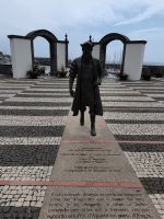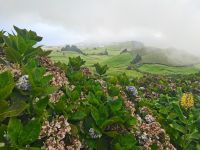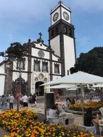 Anschließend fahren wir in den Ort Sete Cidades, in der Hoffnung, dass der Nebel uns eine bessere Sicht bietet auf den blauen und grünen See, der von einer Brücke getrennt wird. Die Westseite von Sao Miguel ist sehr feucht, daher ist Nebel keine Seltenheit, erklärt unsere Reiseleiterin. Wir halten am Aussichtspunkt "Pico do Carvao", an dem sich Nebelschwaden und Sonne auf unseren Fotos abwechseln. Der nächste Halt führt uns zu einem Aquädukt mit Bögen aus Basaltgestein, durch das bis 1888 Wasser nach Ponta Delgada transportiert wurde. Kurz darauf ist das Ortszentrum von Sete Cidades erreicht. Wir halten kurz an der Brücke zwischen dem Blauen und Grünen See, bevor wir im Ort die Mittagspause machen. Auch eine erneute Anreise zum Panoramapunkt Vista do Rei schenkt uns später keine Sicht. Die vielen Hortensien und die tiefe Schlucht lassen uns ahnen, wie schön der Blick von oben auf den Kratersee sein muss. Da das Wetter im unteren Bereich der Insel schön ist, entscheiden wir uns, mit unserer Reiseleiterin zum Stadtrundgang in Ponta Delgada aufzubrechen. Am nächsten Morgen reisen wir früh ab auf die nächste Insel, daher schließen wir das Abendessen gleich an den Stadtrundgang an und erholen uns anschließend im Hotel.