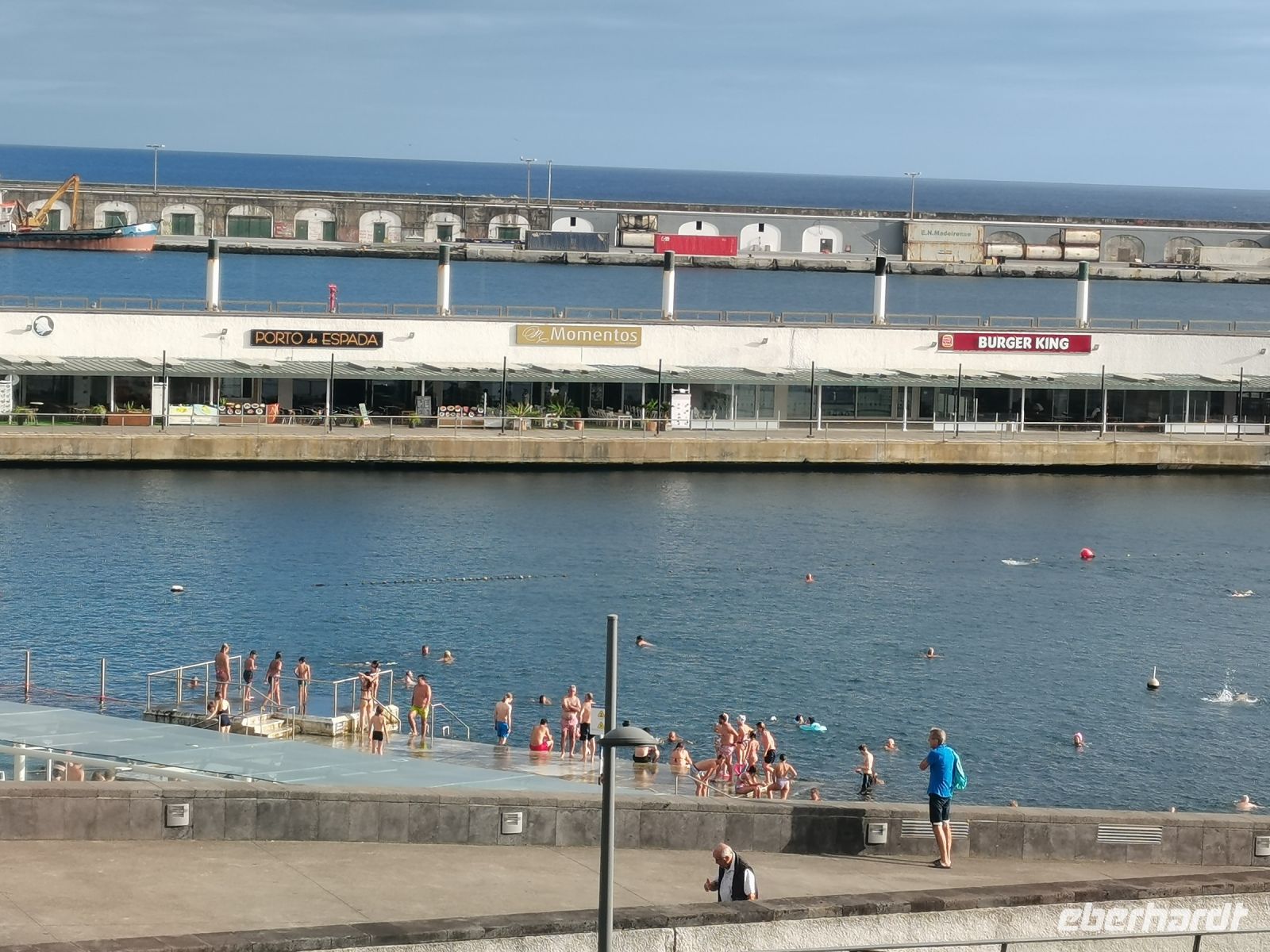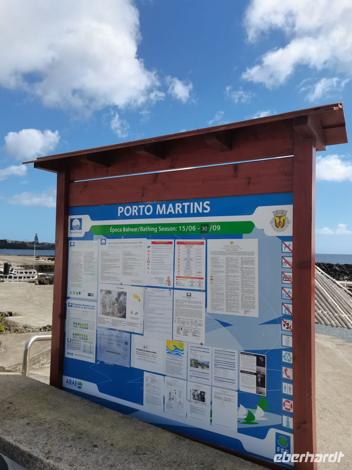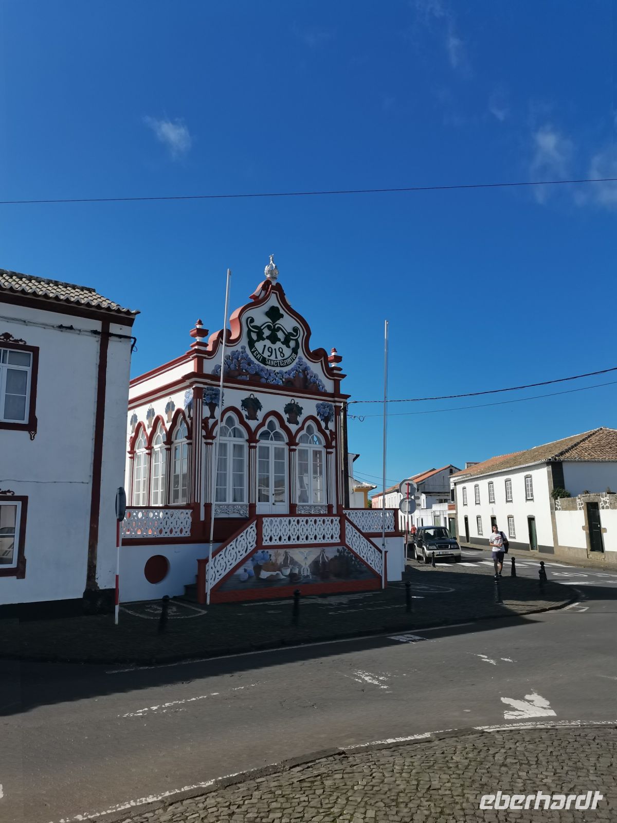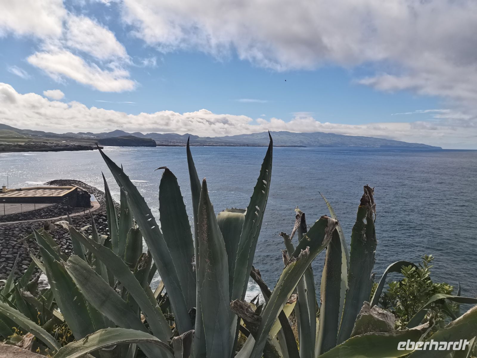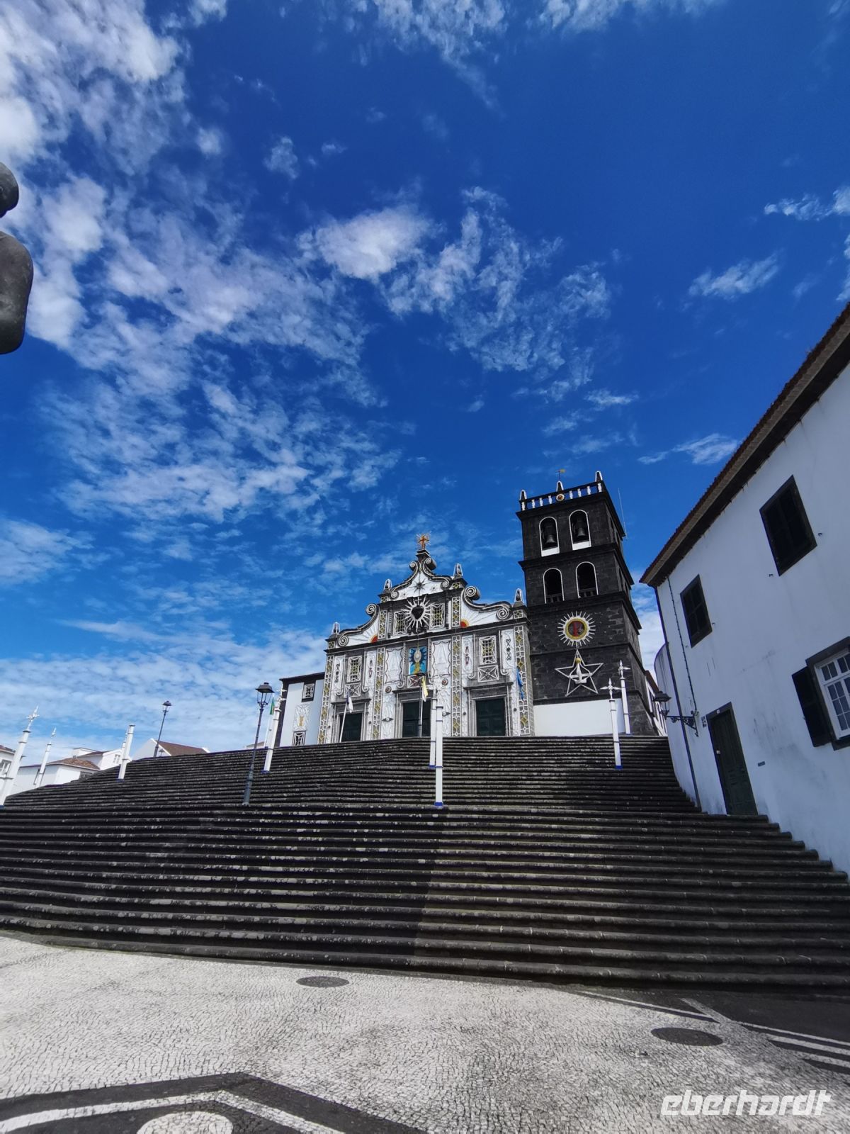 Wir erfahren, dass die Einwohner der Insel Terceira gerne feiern, so auch beim "Heiliggeist-Fest", das von Ostersonntag bis Pfingstsonntag gefeiert wird. Ganze 50 Tage dauert das fromme Danksagungsfest in den Dörfern, zu dem auch die Tradition des Stiertreibens gehört, wie uns ein großes Stier-Denkmal bestätigt. Auch Terceira ist von kleineren Inseln umgeben. Dazu gehören die "Ziegeninseln", die heute Naturschutzgebiet sind. Die Sicht ist hervorragend und wir genießen die Fahrt vorbei am Porto Judeu, wo wir eine der vielen Natur-Badestellen sehen. Unseren nächsten Halt machen wir in Sao Sebastiao, ein herausgeputzter Ort mit einem schönen Kirchplatz. Die "Igreja de Sao Sebastiao" ist eine der ältesten Kirchen der Azoren. Auf dem Platz unter Bäumen begrüßen uns freundlich die Einheimischen und wir lassen uns nieder für eine Kaffeepause. In Porto Martins sehen wir viele Ferienvillen und ein Naturschwimmbecken, das schon jetzt Lust auf unseren Badestopp in Praia da Vitória macht.