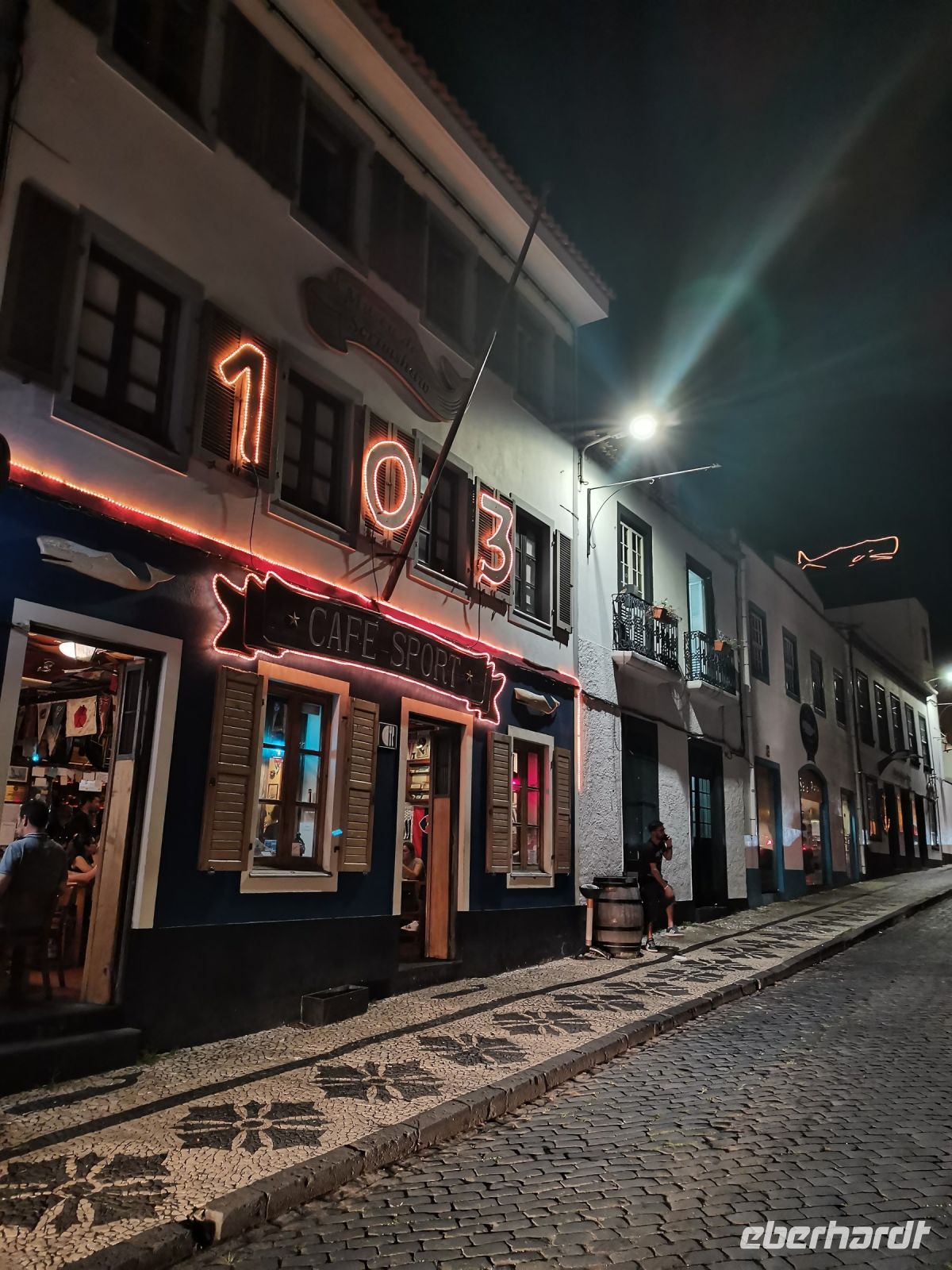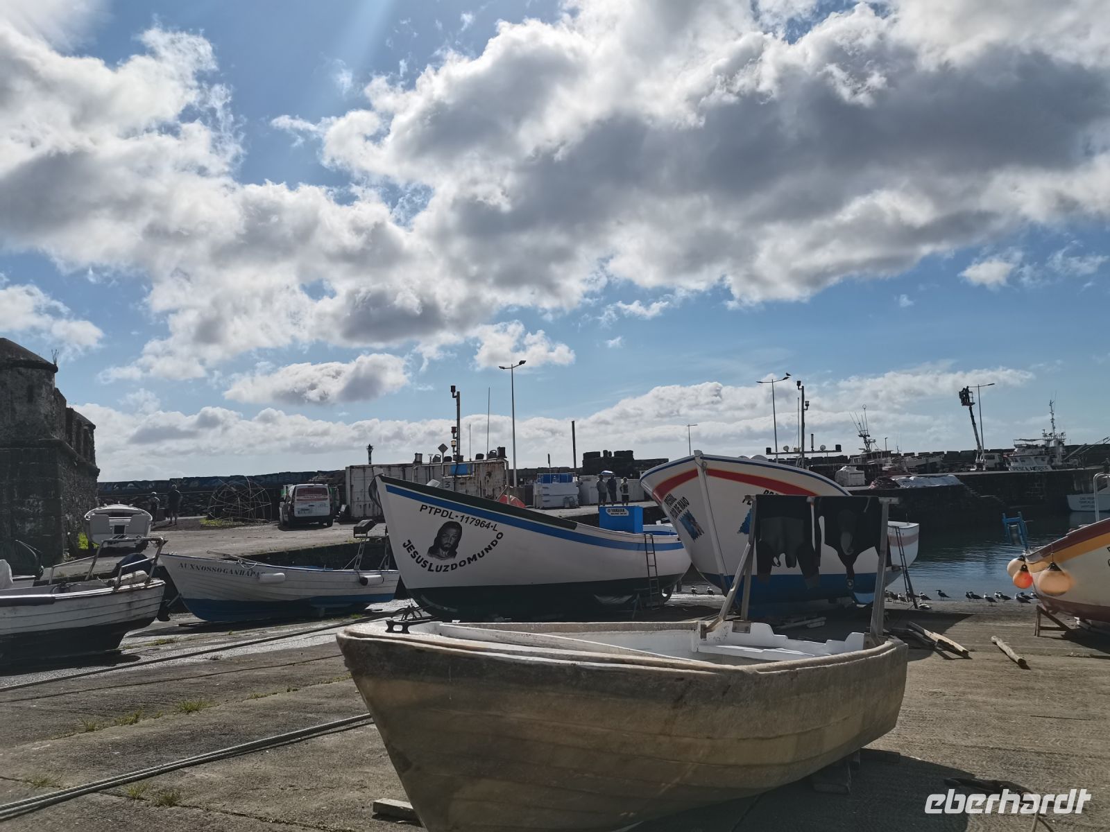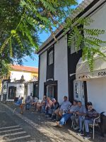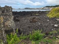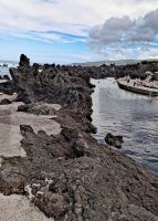 Am Nachmittag fahren wir den Berg Pico hinauf, der sich mittlerweile in Wolken gehüllt hat. Auf dem Rückweg zum Fährhafen besuchen wir das ländliche Gebiet an der Küste mit den einfachen Ferienhäusern der Einwohner, die sogenannte "Zona de Adegas" an der lavasteinigen Ebene im Nordwesten von Pico. Wir halten in Arcos und Lajido und machen einen Spaziergang durch den Ort, in dem Einheimische mit Freunden und Familie den Sonntag bei einem Picknick verbringen. Der Auswanderungskontext ist hier besonders zu erkennen, wie wir im Gespräch mit Kanadiern erfahren, die immer gerne in ihre Heimat "Azoren" zurückkehren. Um 18:00 Uhr nehmen wir die Fähre zurück nach Faial und werfen vom Wasser aus nochmal einen Blick auf die Bergspitze des Pico. Den sommerlich lauen Abend verbringen wir in Horta in den Gassen um unser zentral gelegenes Hotel am Segelhafen. Der Berg Pico ist nun wieder in einen kleinen Heiligenschein gehüllt, als hätte es nie Wolken gegeben.