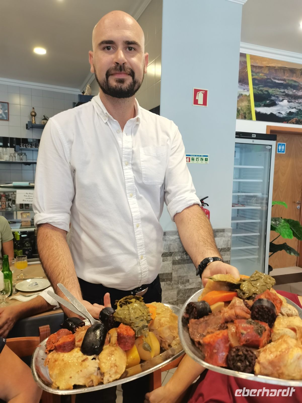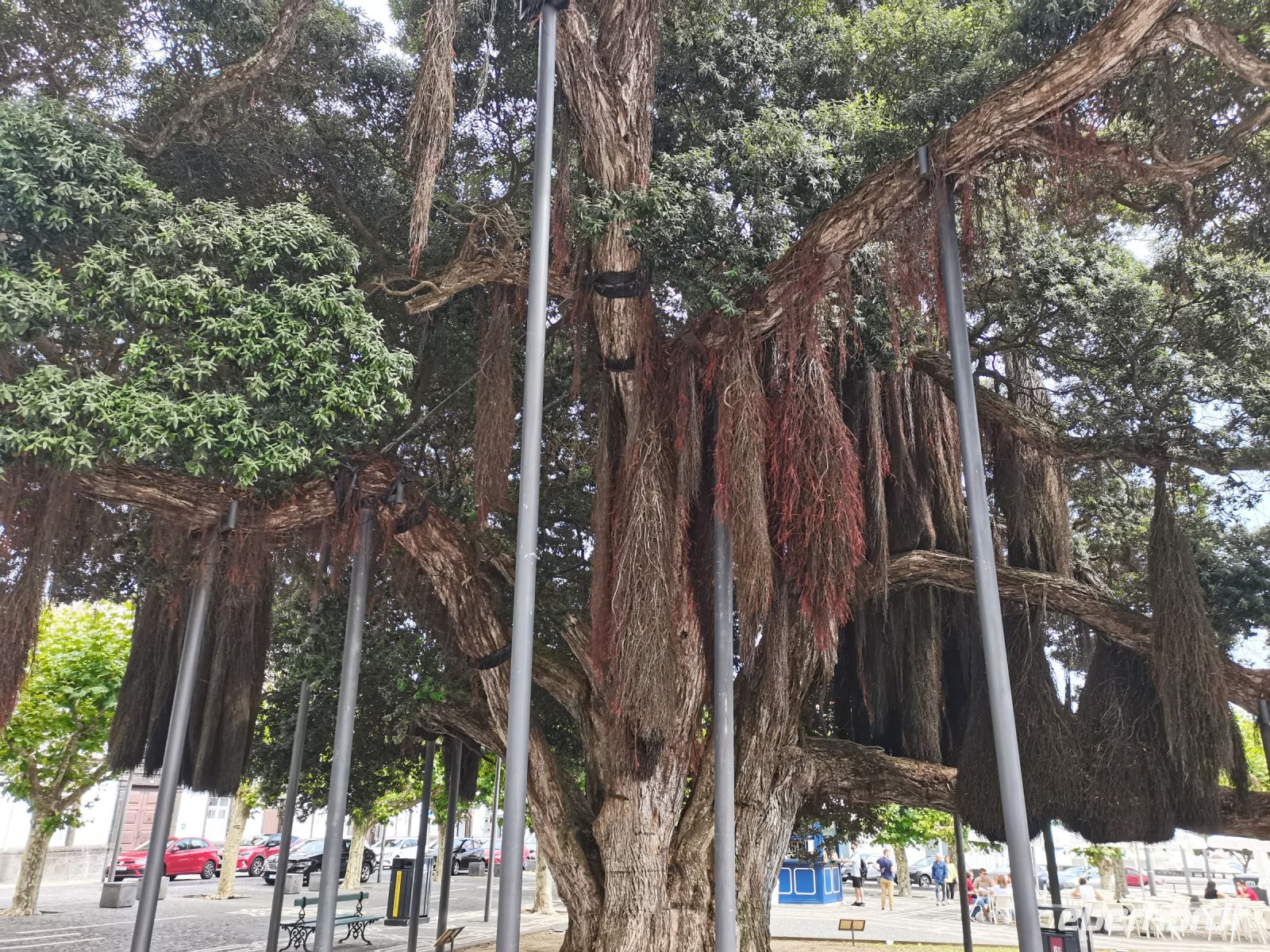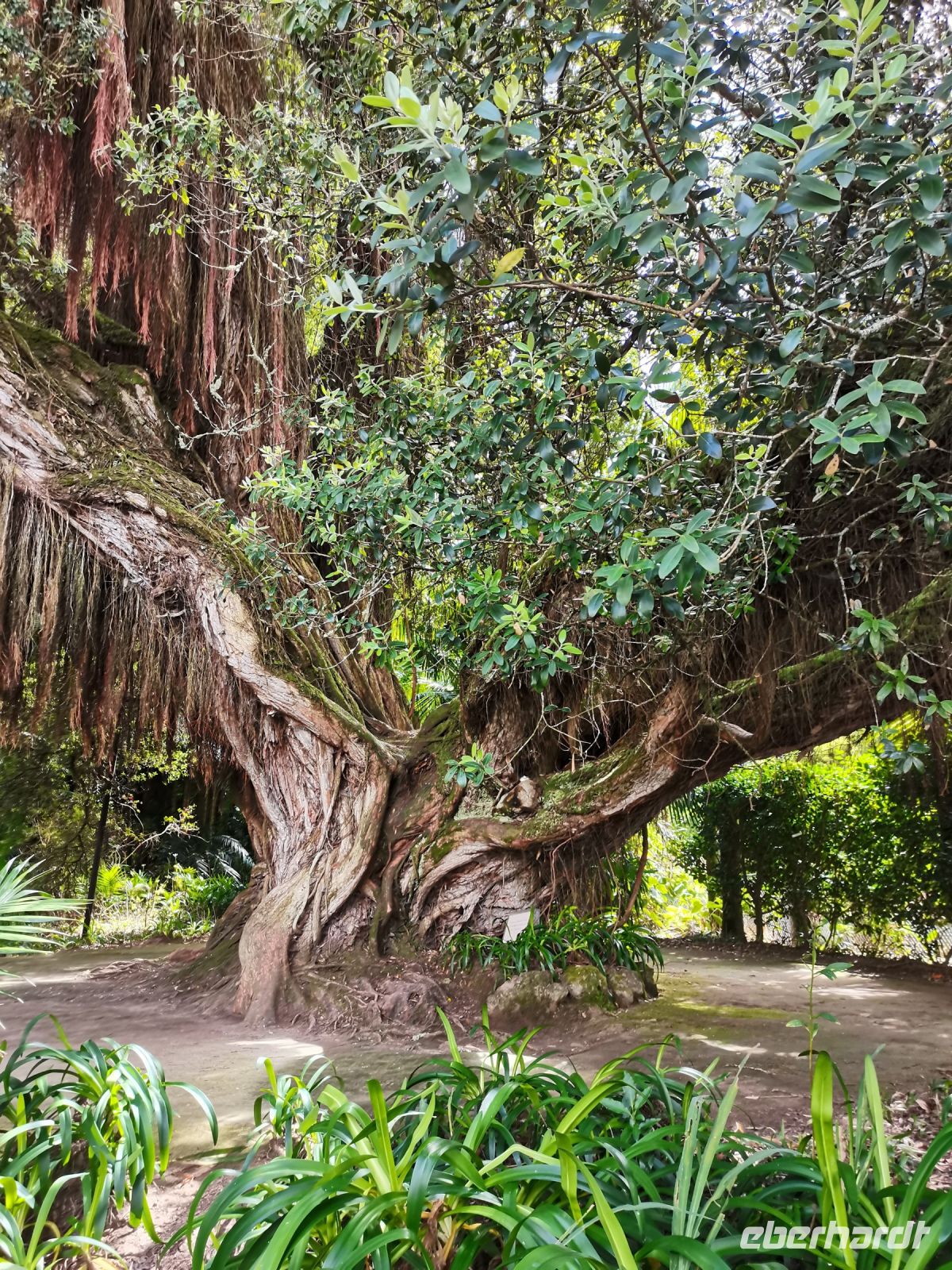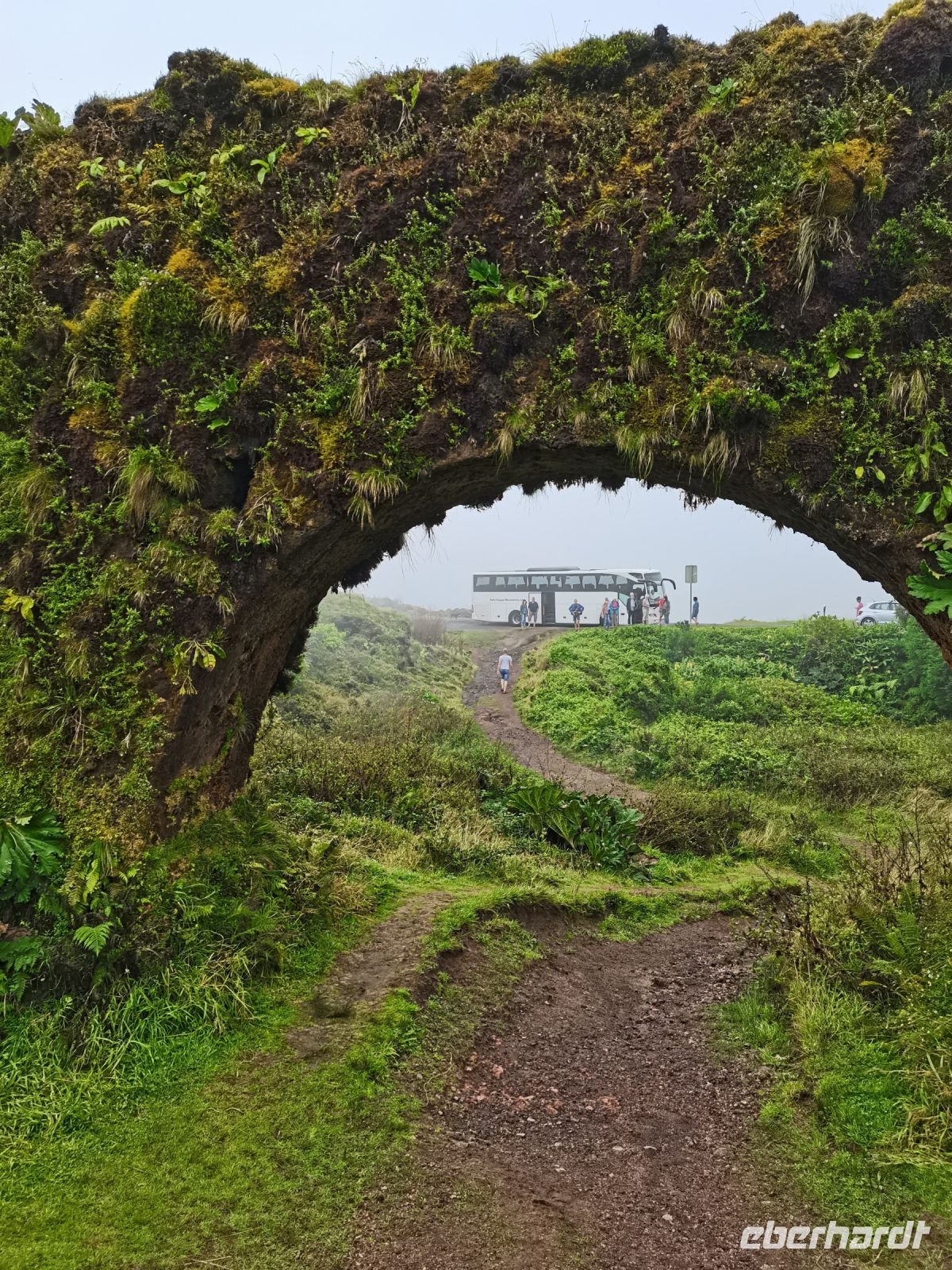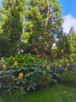 Nach diesen ersten Eindrücken geht unsere Fahrt weiter zum malerischen See "Lagoa das Furnas". Wir sind gespannt auf die Erdlöcher in denen für uns der Eintopf "Cozido das Furnas" gekocht wird. In Furnas sorgen 22 Quellen für Heilwasser verschiedenen Mineralgehalts. Einige sind kochend heiß und damit wie geschaffen zum Garen von Speisen, andere eignen sich für ein wohliges Bad, das auch bei uns noch auf dem Tagesprogramm steht. Tatsächlich erreichen wir die dampfenden Fumarolen kurz vor der Mittagszeit und beobachten die einheimischen Gastronomen, wie sie jeweils zwei große, mit einem weißen Tuch abgedeckte, Töpfe mit Eintopf aus den Erdlöchern ziehen und zu ihren Wagen bringen. Wir sind gespannt, was uns heute zum Mittagessen erwartet! Die Vertiefungen in der Erde sind namentlich gekennzeichnet von den Restaurants, die die jeweiligen Töpfe am Furnas-See garen lassen. So auch unsere Töpfe, die uns in einem kleinen Lokal im Örtchen Furnas aufgetischt werden. Auf dem Weg zum Bus bestaunen wir den Sicheltannenwald und die für uns ungewöhnlich abwechslungsreiche Natur, die die hohe Luftfeuchtigkeit und das Mikroklima der Inseln hervorbringt.