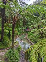 Beim Mittagessen genießen wir in einem charakteristischen Lokal in Furnas das bis zu sechs Stunden in der Erde gegarte Fleisch und Gemüse zu dem eine Soße gereicht wird. Gut gestärkt für weitere Entdeckungen bringt uns der Busfahrer in den Park Terra Nostra, eine der schönsten Grünanlagen der Welt. Bei diesem Park handelt es sich um ein wahres Naturparadies: Baumfarne, gigantische Strelizien, Magnolien, Azaleen und Kamelien säumen unseren Weg, um nur einige Exemplare aus dem dschungelartigen Garten zu nennen. Entspannung wartet nun im großen Thermalbecken auf uns, ein einzigartiges Erlebnis im rund 38 Grad heißen Thermalwasser, das von Naturquellen gespeist wird. Anschließend haben wir noch Zeit zu einem kleinen Spaziergang durch den Park.