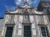 Nach kurzer Zeit erreichen wir den Ort Ribeira Grande, die mit 10.000 Einwohnern zweitgrößte Stadt auf Sao Miguel. Prächtige Kirchen und schöne Stadthäuser säumen die Hauptstraße. Wir stärken uns in einem der vielen Lokale am Hauptplatz von Ribeira Grande, um anschließend die Sehenswürdigkeiten des attraktiven Ortes anzuschauen. Beeindruckend sind die vielen Eisenholzbäume auf dem Platz, auf dem es sich auf Bänken im Schatten gut ausruhen lässt. Auch heute lässt sich noch die Bedeutung der Stadt in früheren Zeiten erkennen. Der Name "Ribeira Grande" steht für den großen Fluss an dem die ersten Siedler im 15. Jahrhundert Wassermühlen zum Mahlen des Getreides gebaut hatten. Wir besuchen die mit wunderschöner Wandkeramik und goldenen Altären verzierte Kirche "Igreja de Nossa Senhora da Estrela", eines der wichtigsten Baudenkmäler von Ribeira Grande. Das Theater der Stadt ist zufällig geöffnet, was wir für eine spontane Besichtigung der Räumlichkeiten nutzen. Abschließend verkosten wir in einem kleinen Laden typische Liköre der Azoren. Nachmittags erreichen wir unser Hotel und haben Zeit für einen Besuch der Markthalle von Ponta Delgada, die wir nach einem kleinen Spaziergang durch die schönen Gassen der Hauptstadt von Sao Miguel erreichen. Wer möchte, nimmt ein Bad im Atlantik, bevor wir um 19 Uhr gemeinsam zu unserem Willkommmens-Abendessen im Segelhafen starten und so den Tag gemütlich ausklingen lassen.