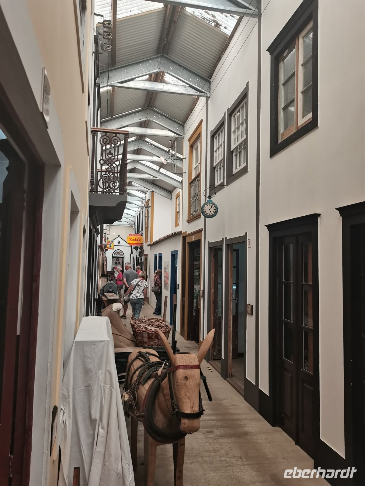 Im Museum Oficina Museu sehen wir in einem ehemaligen Bauernhof, was Manuel (83) im Laufe der letzten zwei Jahrzehnte an Erinnerungsstücken aus der Vergangenheit zusammengetragen hat. Es ist eine unglaubliche private Kollektion, die er mit seiner Frau Emilia hütet. Die früheren Ställe und Gänge hat der ehemalige Grundschullehrer mit Häuserfassaden verkleidet, hinter denen sich rund 35 historische Werkstätten und Geschäfte befinden. Sie alle beherbergen Originalstücke aus seiner Sammlung und lassen die Vergangenheit wieder aufleben. Viele historische Maschinen hat er eigens auf die Insel gebracht. Er bekam sie geschenkt und übernahm im Gegenzug die "Entsorgung", erfahren wir. Auch Kunsthandwerkerinnen lassen sich an Webstühlen bei ihrer Arbeit beobachten. Wir kommen aus dem Staunen nicht mehr heraus, was Menschen aus Leidenschaft und mit purer Eigeninitiative als Lebenswerk hervorbringen können.
