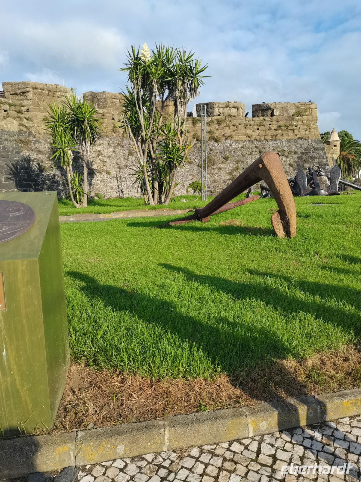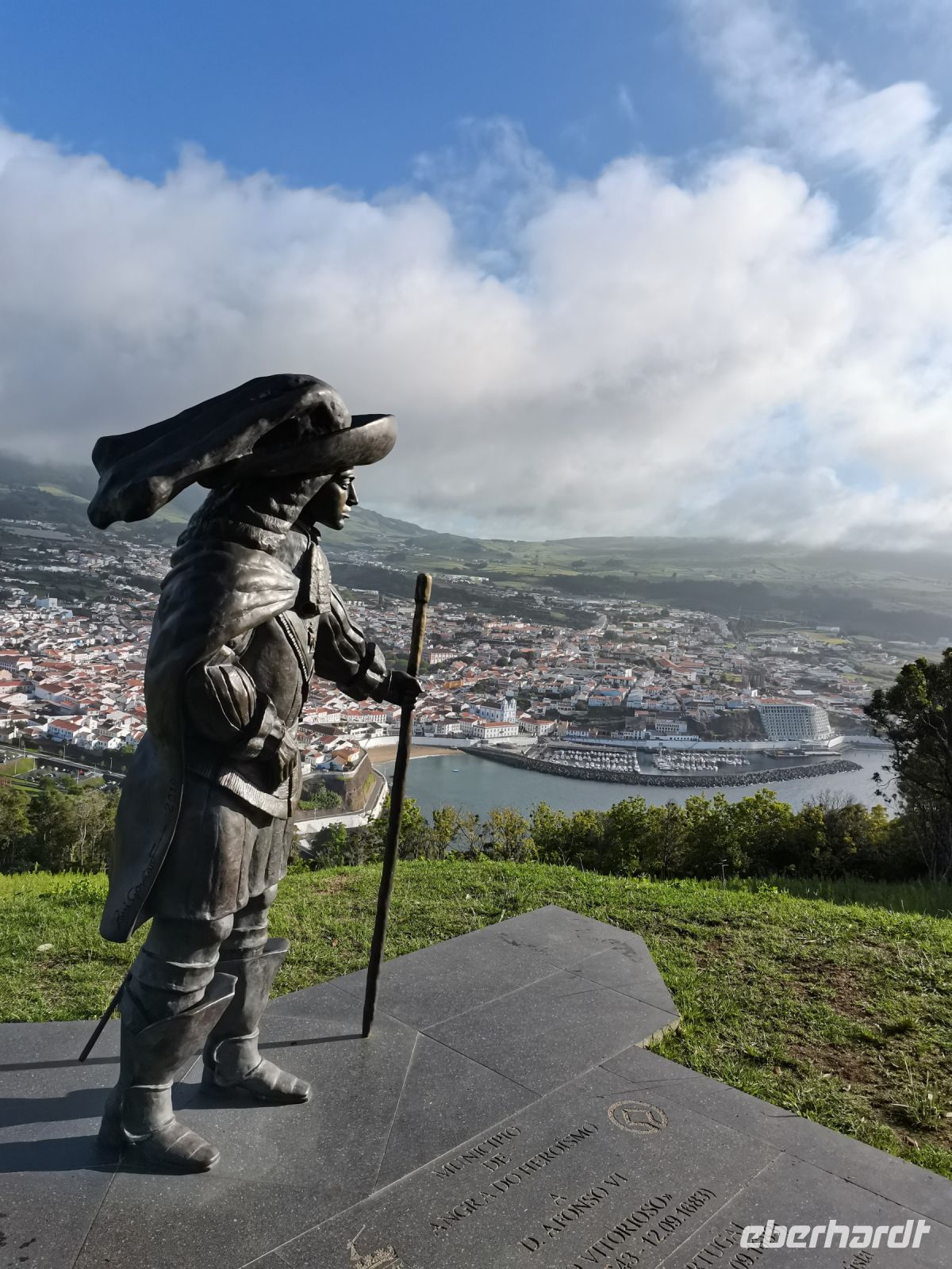 Unsere Tagestour beginnt nach dem Frühstück und führt uns zunächst zur Festung auf dem Monte Brasil, den wir bereits vom Hotel aus sehen können. Es handelt sich um den Hausberg von Angra (205 Meter). Die Festung wurde während der Zeit der spanischen Herrschaft Ende des 16. Jahrhunderts errichtet und gehört zu den größten Verteidigungsanlagen Europas. Nachdem Portugal wieder unabhängig wurde, errichtete man in der Festungsanlage ab 1645 die Kirche "Igreja de Sao Joao Baptista". Den Namenszusatz "do Heroismo" (Heldenmut) erhielt die Stadt im Jahr 1837 von König Pedro IV, der die Stadt als Basis nutzen durfte, um von hier aus seinen Thronanspruch in Portugal durchzusetzen. Die Schlüssel zur Festung sind bis heute im Rathaus bewahrt, davon konnten wir uns am Vortag im Festungssaal des Rathauses überzeugen. Wir merken, wie stolz die Einwohner auf ihre historische Bedeutung als ehemalige Hauptstadt Portugals sind und hören noch von weiteren Heldentaten.