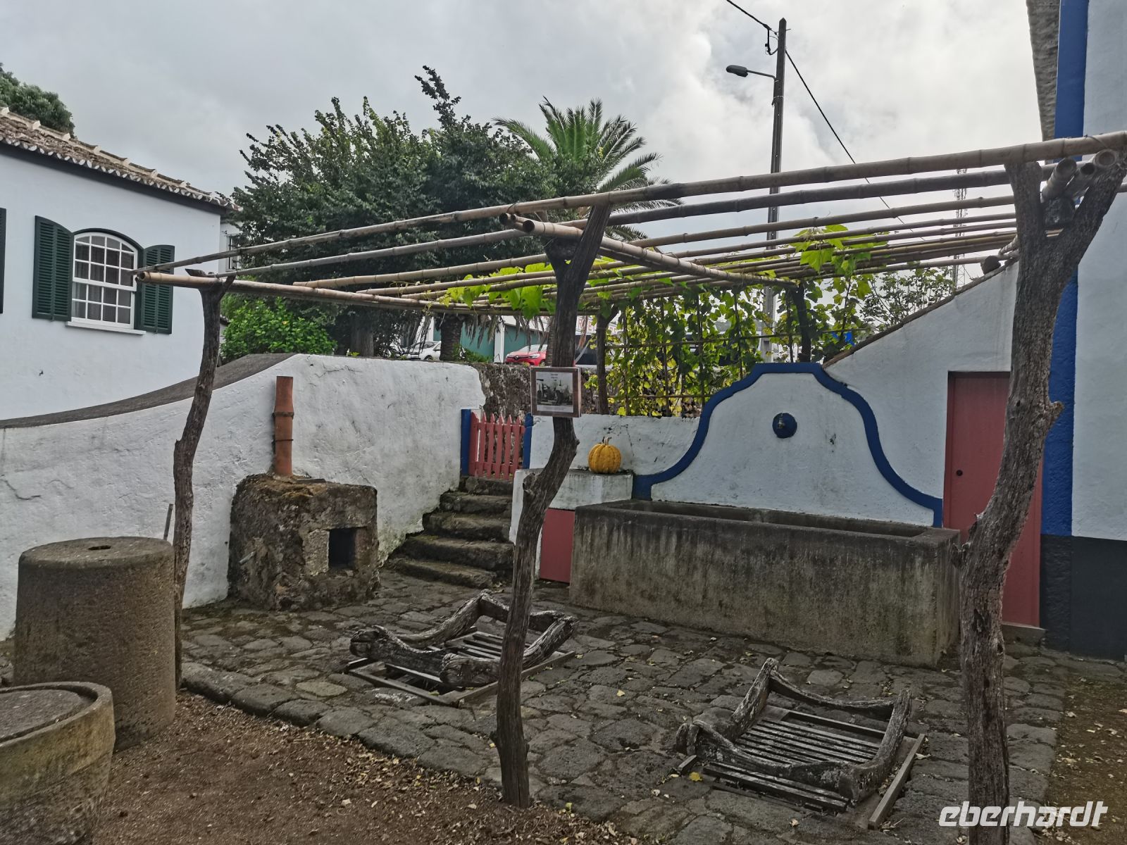 Das unvorhersehbare Wetter der Azoren fordert auch heute Flexibilität bei der Tagesgestaltung. Unsere Reiseleiterin hat die Webcam an den Panoramastellen stets im Blick, um uns die Highlights der Insel im besten Licht zu zeigen. Hierzu gehört die am meisten fotografierte Aussicht "Vista do Rei", der Königsblick, der morgens noch im Nebel liegt. Wir entschließen uns, zunächst die Ananasplantage zu besichtigen, damit der Wind den Nebel in der Zwischenzeit vertreiben kann. Wir erfahren, dass die Azoren der einzige Ort auf der Welt sind, wo Ananas in Gewächshäusern kommerziell angebaut wird. Zwei Jahre reifen die Früchte unter dem weiß gestrichenen Glas der Gewächshäuser. Früher gab es 4000 Treibhäuser, heute sind es noch drei Plantagen. Der Export ist eingestellt. Auch Bananen wachsen auf den Inseln das ganze Jahr über. Die Ananas der Azoren sind eher klein und zeichnen sich durch die Süße und ihre "Krone" aus, die schon in Miniatur auf den Baby-Ananas zu sehen ist. Im großen Shop der Plantage verkosten wir Liköre und kaufen Souvenirs, bevor wir über kleine Dörfer, endlose Weiden mit Kühen zum ethnographischen Museum "Oficina Museu" im Bauerndorf Capelas fahren.