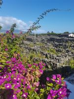 Bei fast 30 Grad begeben wir uns mit der Fähre auf die Insel Pico, die wir bereits nach 30 Minuten mit dem Boot erreichen. Warum die Insel Pico "Ilha Negra" (schwarze Insel) genannt wird, wird beim Anblick der felsigen Küste und der vom leuchtenden Grün umgebenen Lavastromplateaus schnell deutlich. Die beschauliche Insel ist von vielen kleinen Dörfern überzogen, die Lust auf einen Spaziergang machen. Wir hören, wie wichtig hier die Weinproduktion in der Vergangenheit war. Auch heute werden aus der Traube "Verdelho dos Acores" hervorragende Weine produziert. Unser erster Halt gilt einem Weinanbaugebiet, in dem wir Informationen über die Historie des Weinanbaus in Pico erfahren. Die Landschaft ist beeindruckend, denn die Bewohner haben mühselig kleine Äcker und Weideflächen geschaffen in den Lavaströmen, die bis zur Küste liefen. Das Weinanbaugebiet ist netzförmig von niedrigen Lavasteinmauern überzogen. Wir spazieren auf dem Weg bis zur alten Windmühle. Das schwarze Gestein aus der erstarrten Lava speichert auf ideale Weise die Sonnenwärme und lässt hervorragend die Trauben gedeihen. Heute steht das Gebiet mit den fruchtbaren Böden unter dem Schutz der UNESCO. Wir erfahren, dass nun frühere Anbaugebiete wiederbelebt werden, um das Winzertum auf Pico zu fördern. Die Reblaus hatte im 19. Jahrhundert den Weinbau zerstört. In der Tat verfügt Pico über die größte Vielfalt an Weinen und Likören.