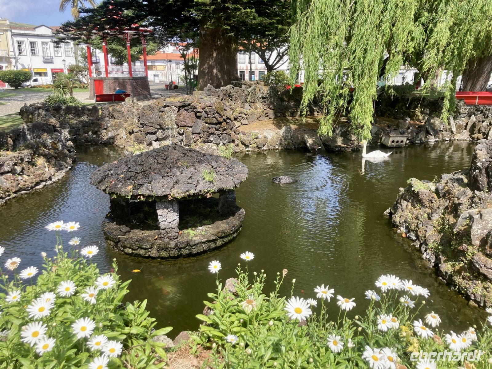 Im Anschluss besuchten wir den Park Terra Nostra, einen der schönsten Parks der Azoren. Hier hatten wir die Möglichkeit, in 38 Grad warmen Thermalbecken zu baden. Der Park umfasst 12 Hektar und rund 2.500 Bäume, vor allem Farne und die Sicheltanne, die für die Azoren typisch ist.