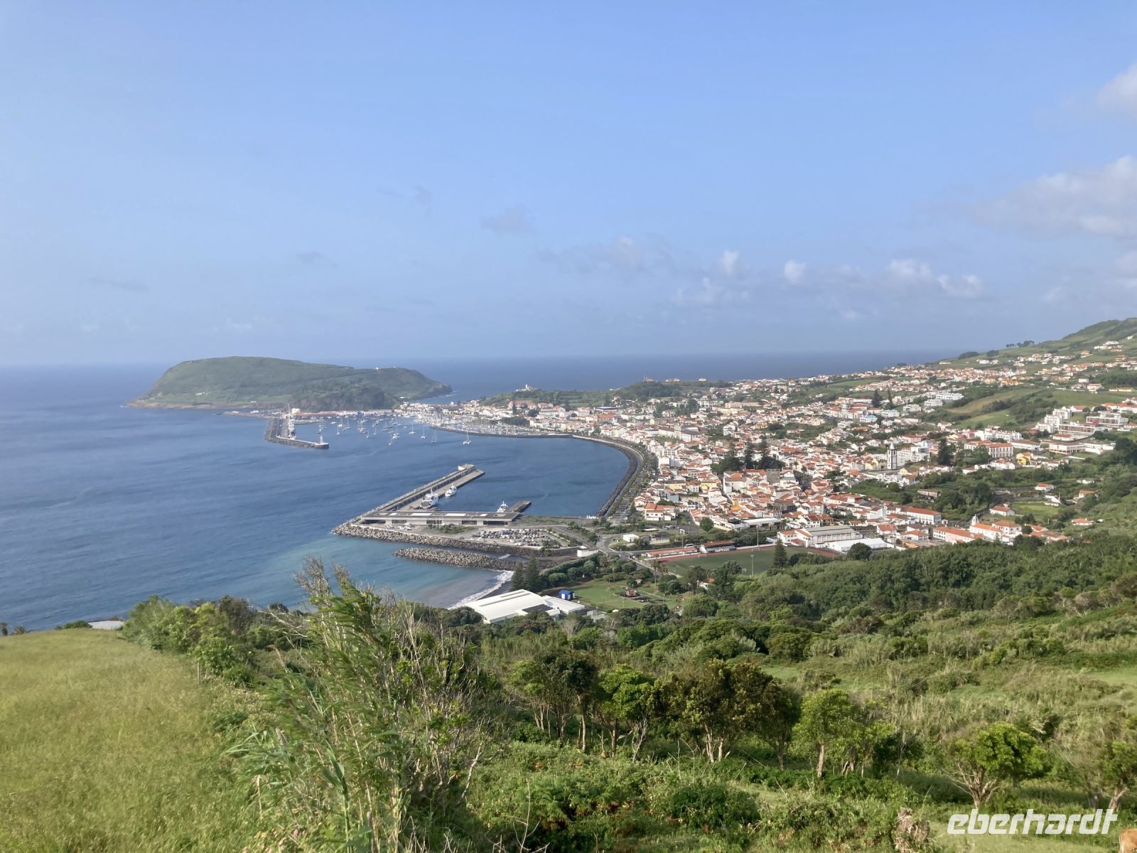 Unser Tag auf der Insel Faial begann mit einem Besuch an einer Aussichtsplattform, von der aus wir einen wunderschönen Blick auf die Stadt Horta hatten. Die Stadt selbst ist sehr charmant und hat eine interessante Geschichte. Wir bewunderten die bunten Häuser und die vielen Boote im Hafen.