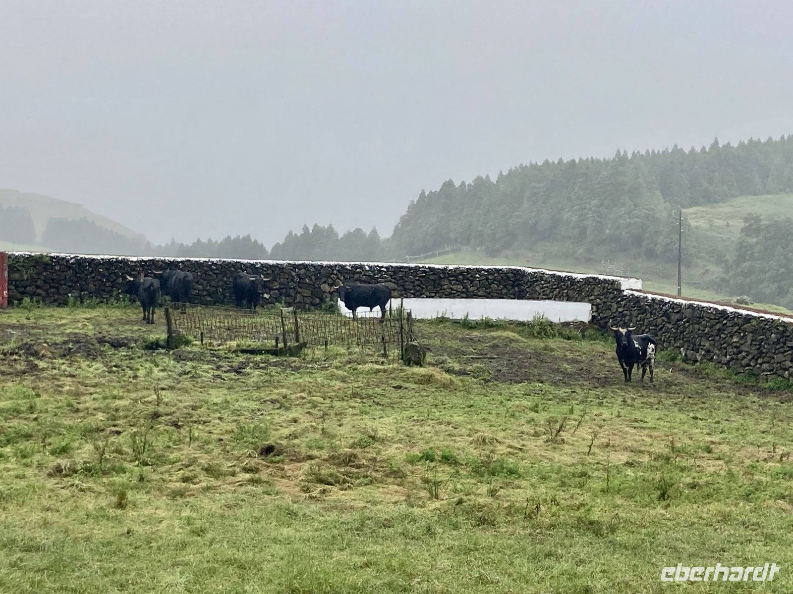 Auf den Azoren gibt es mehr Kühe als Menschen, und wir waren überrascht zu erfahren, dass die Kühe immer draußen sind und keinen Stall haben. Sie werden in der Weide gemolken.