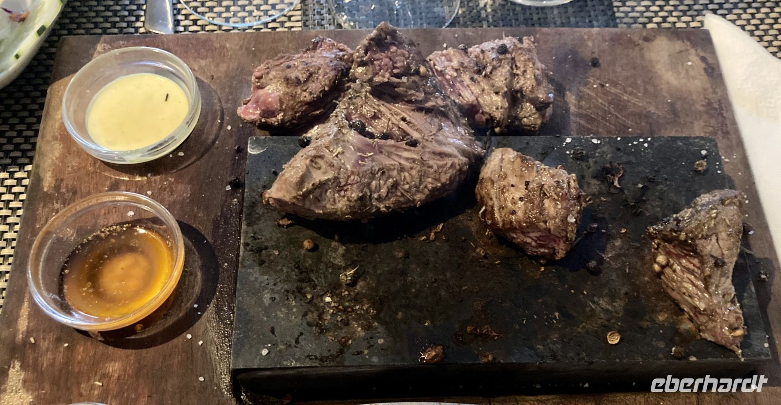 Am Abend gingen wir gemeinsam in ein Restaurant, das eine besondere Spezialität anbot. Wir konnten Fleisch oder Fisch auf einem heißen Stein am Platz selbst zubereiten. Es war ein tolles Erlebnis und das Essen war köstlich.