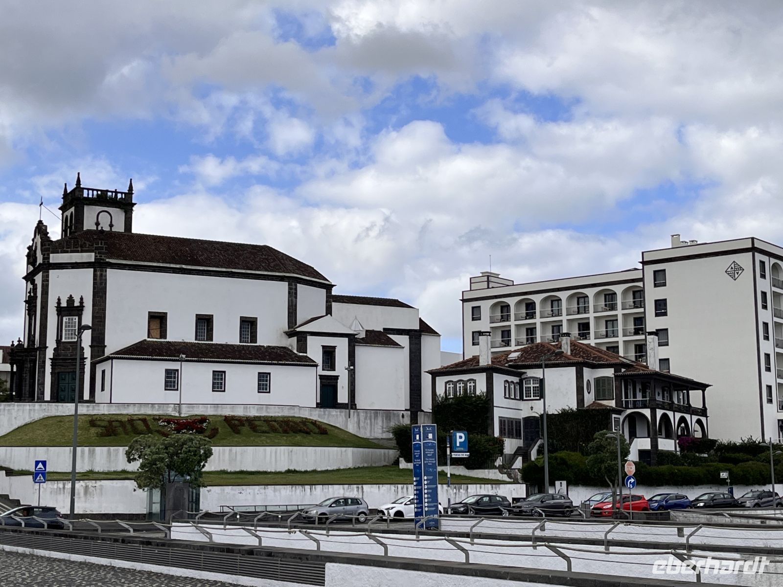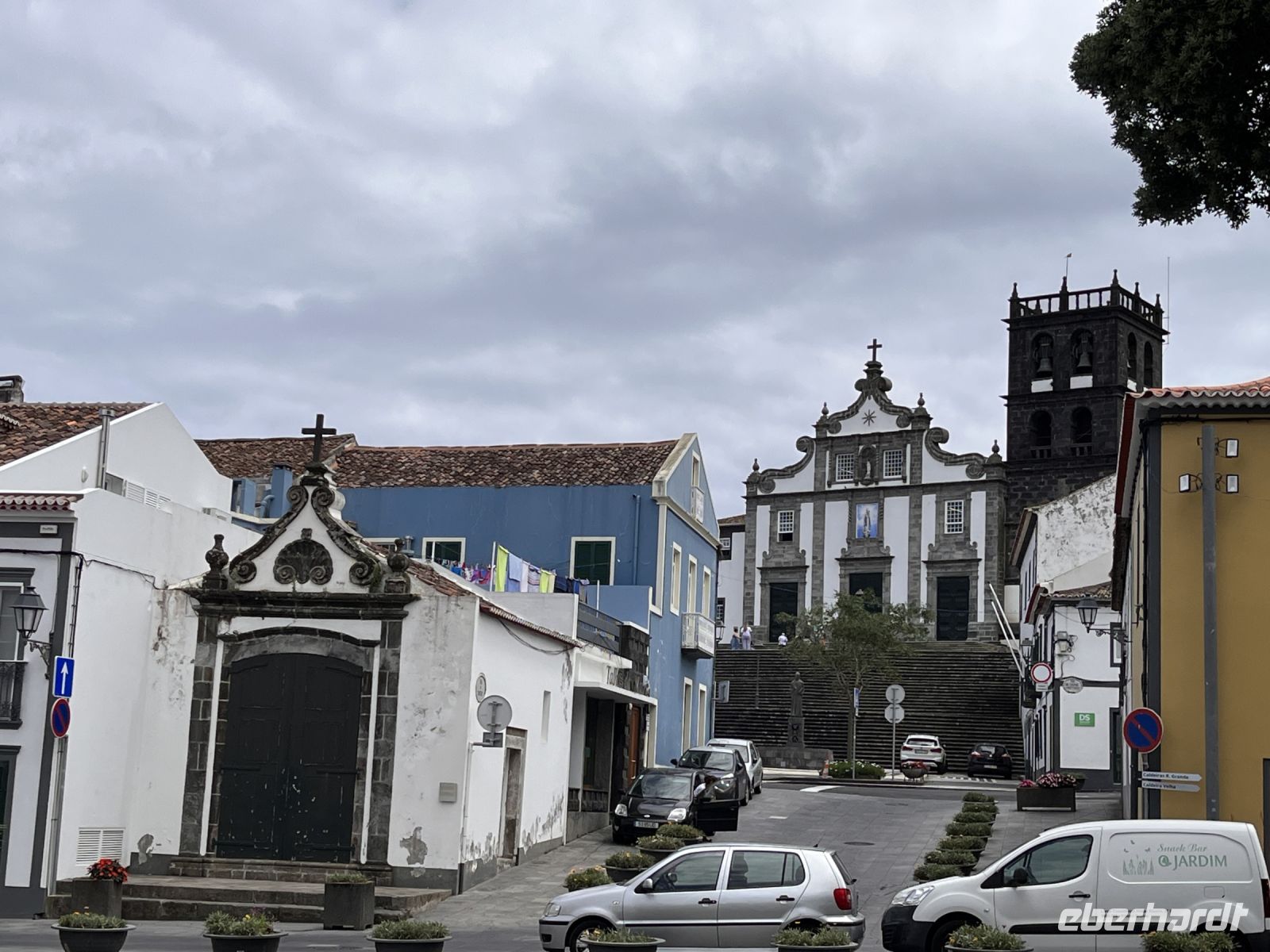 Weiter geht es entlang der Südküste über Porto Judeu nach São Sebastião, der ältesten Siedlung Terceiras. in Porto Judeu besichtigen wir eine Kirche und eine der vielen Wallfahrtskapellen und legen eine Kaffeepause ein. São Sebastião wurde um die Mitte des 15. Jahrhunderts gegründet und ist eine der ältesten Ortschaften der Azoren. Ursprünglich hieß der Ort „Lugar de Frei João“. Die Rechte einer Stadt (Vila, was wörtlich übersetzt „Kleinstadt“ bedeutet) wurden bereits 1503 verliehen und dabei der Name in São Sebastião geändert. São Sebastião wurde 1583 Sitz eines Landkreises. 1580 wurden in der Nähe der Stadt die heute teilweise nicht mehr erhaltenen Festungen Forte das Cavalas, Forte das Caninas, Forte da Greta, Forte de Santa Catarina das Mós, Forte do Bom Jesus, Forte do Pesqueiro dos Meninos, Forte de São Francisco und die Festung Forte de São Bernardo erbaut, da man Angriffe der Spanier befürchtete. 1581 fand in der Nähe der Stadt die Seeschlacht von Salga statt. 1801 wurde São Sebastião bei einem Erdbeben stark zerstört. 1849 zählte die Stadt 2 568 Einwohner. 1870 wurde der Landkreis São Sebastião bei einer Gebietsreform aufgelöst und dem Kreis Angra do Heroísmo einverleibt und der Stadt das Stadtrecht wieder entzogen. Bei dem Erdbeben von 1980 erlitt vor allem der östliche Teil der Stadt starke Schäden. Am 15. November 1983 wurde São Sebastião in Vila de São Sebastião umbenannt und am 24. Juni 2003 die Stadtrechte 133 Jahre nach ihrem Entzug und 500 Jahre nach ihrer Erstverleihung erneut verliehen.