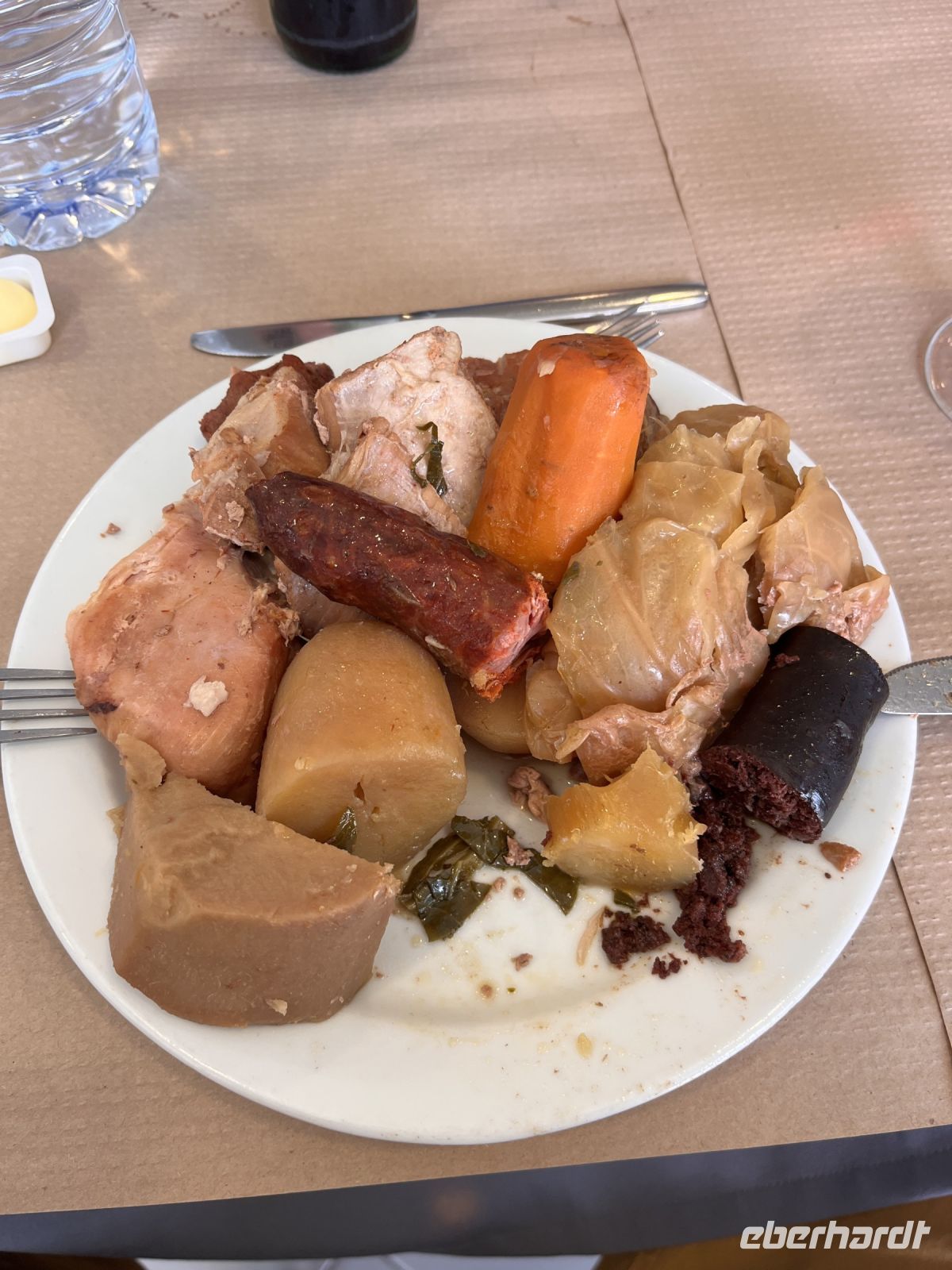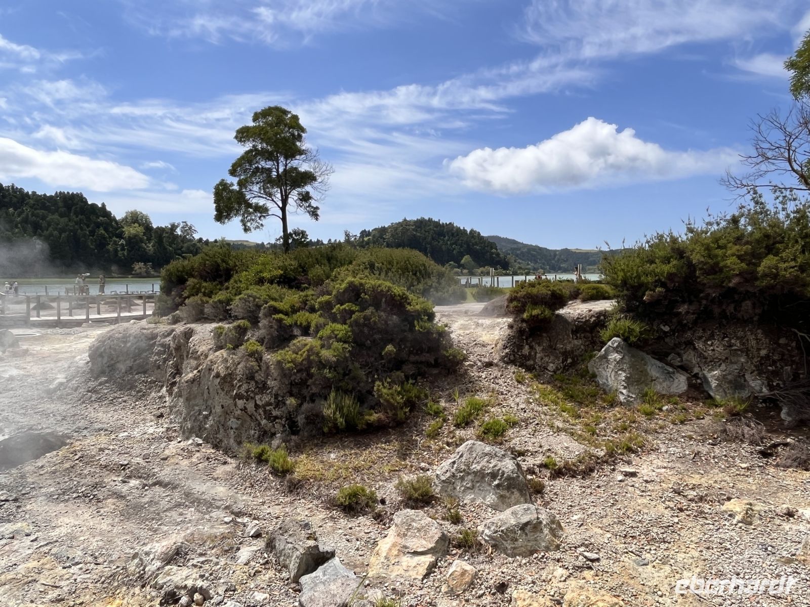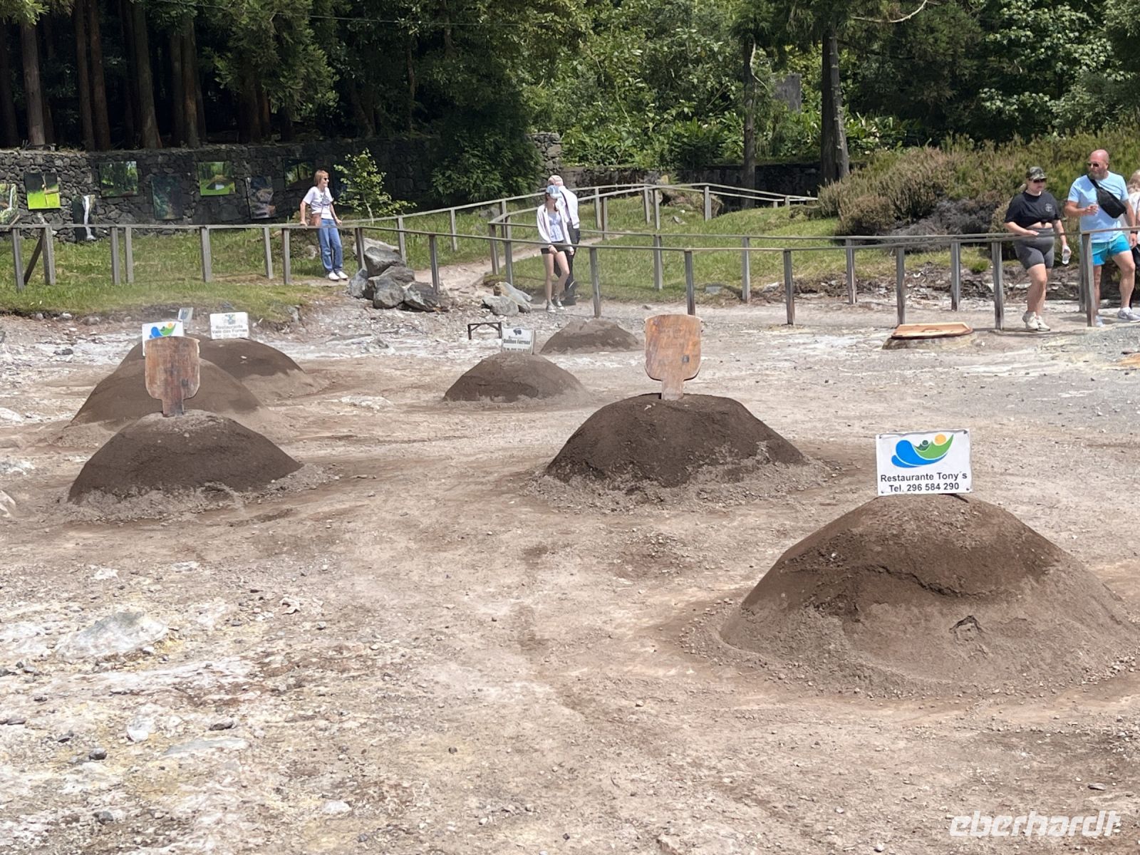 Jetzt geht es weiter nach Furnas einer Kurstadt im Osten der Insel. Wir sehen dampfende Kraterlöcher, dampfende Geysire und heiße Quellen in der Caldeira das Furnas. Hier am Lagoa das Furnas wird der leckere Cozido des Furnas zubereitet - eine Art Eintopf mit verschiedenem Fleisch und Gemüse, welcher sechs Stunden lang in Erdlöchern gekocht wird. Bei unserem Mittagessen im "Tonys" essen wir diese regionale Spezialität. In der Kirche des Ortes ertönt zur Mittagszeit ein eindrucksvolles Glockenkonzert.