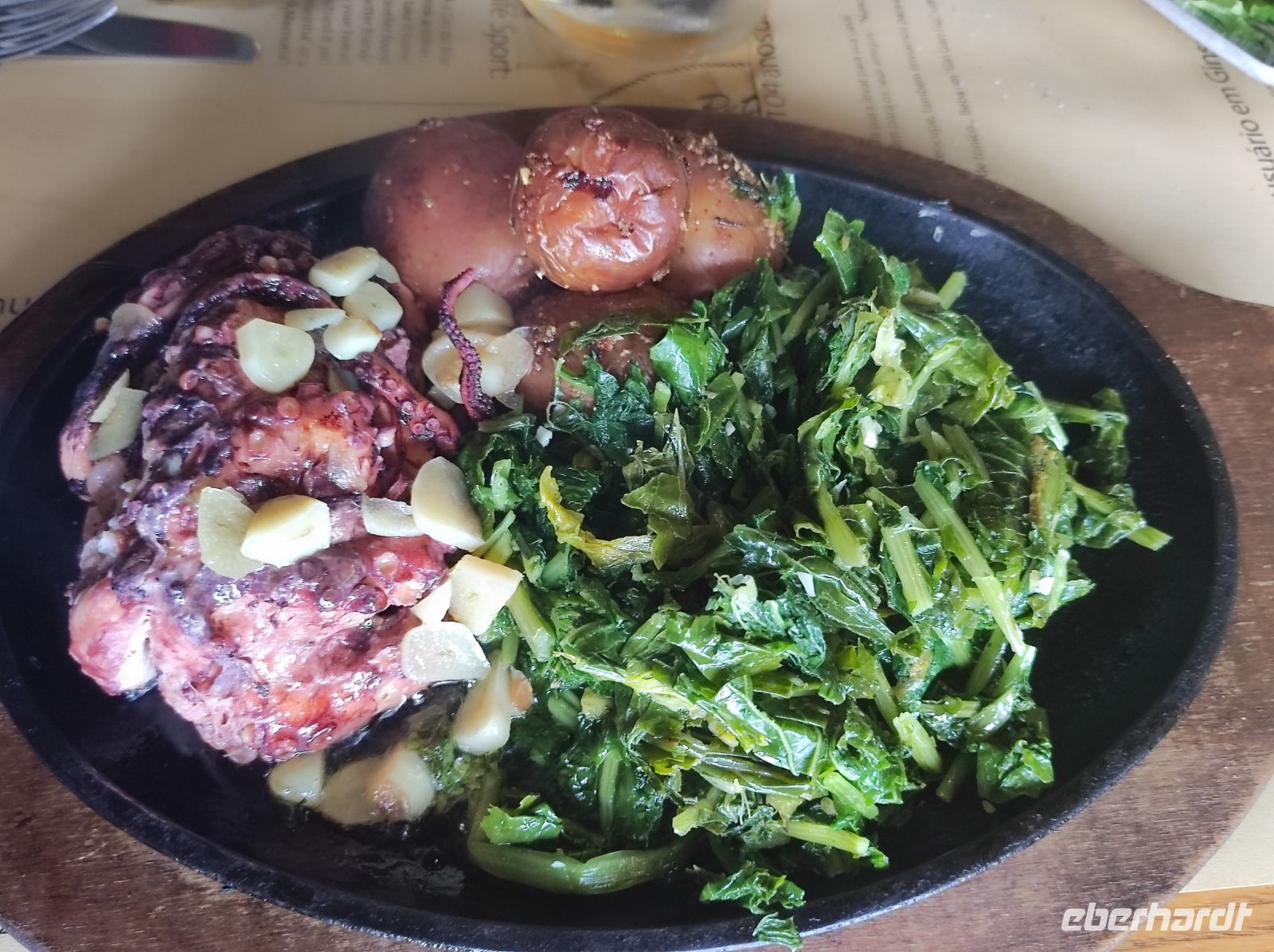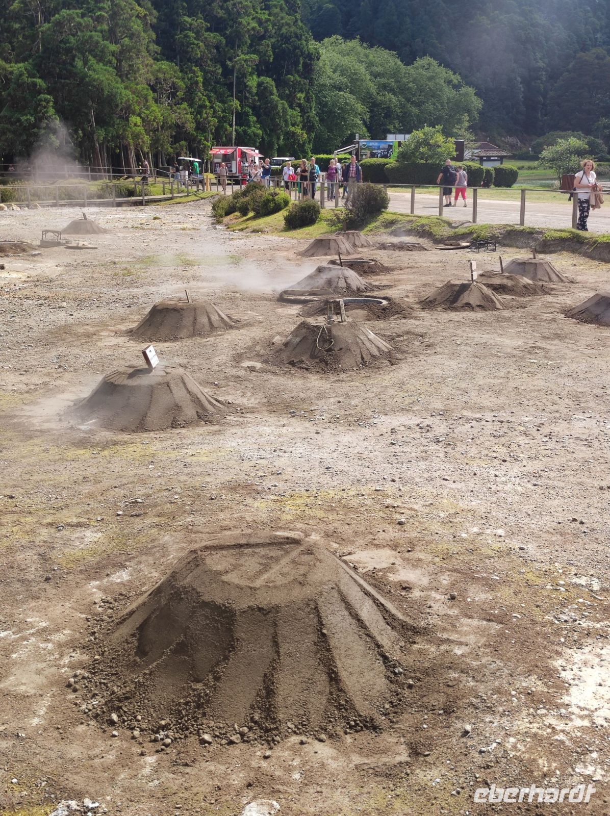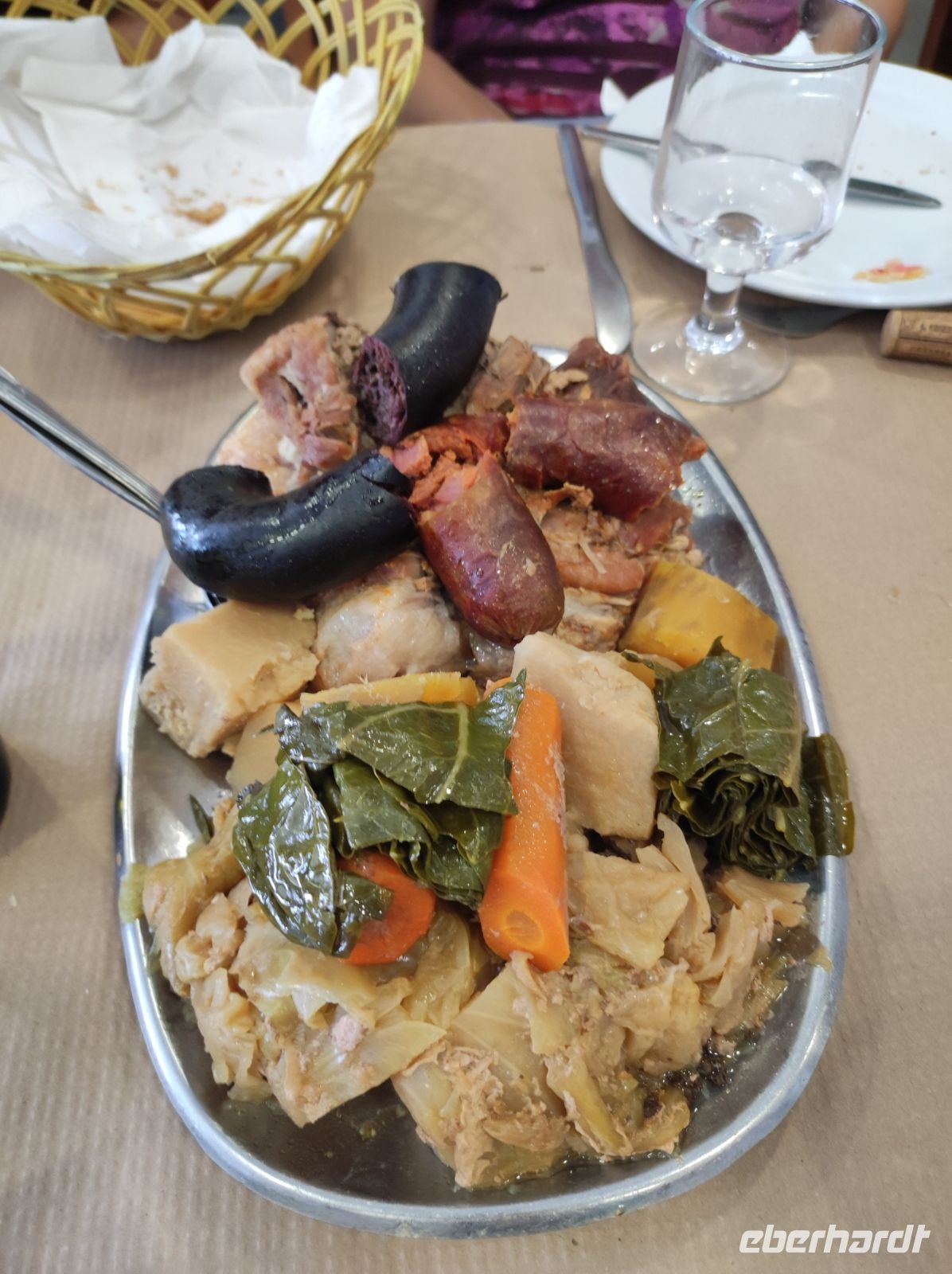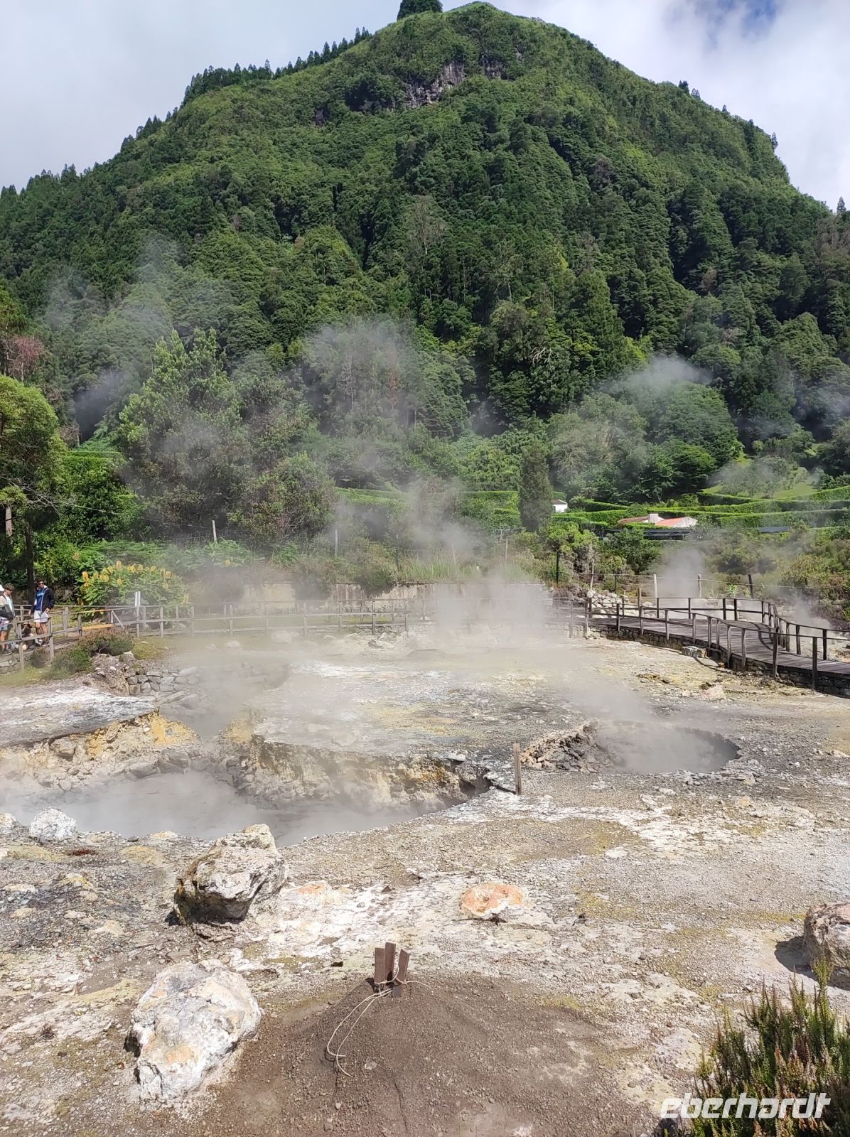 Unsere Reise beginnen wir mit einer Inselrundfahrt, zuerst zu der einzigen aktiven Teeplantage Europas "Cha Gorreana". Bei einer kleinen Führung durch die Herstellungsräume erläuterte uns unsere Reiseleiterin fakten über die hier angebauten Teesorten und die traditionelle Herstellung, nach einer kleinen Tee Probe ging es weiter zu einen der 3 Kraterseen auf dieser Insel. Wir hielten an einem Aussichtspunkt oberhalb des "Lagoa das Furnas", von hier konnten wir den herrlichen Blick auf den See und unseren nächsten Stopp den heißen Quellen von Furnas werfen. Es ging weiter in die kleine Stadt am Ufer des Sees Furnas, hier besuchten wir die berühmten heißen Quellen von Furnas, die schon seit Jahrhunderten als Kurort genutzt werden. Die einheimischen Picknicken in den naheliegenden Naturparks und nutzen die heißen Quellen um das für den Ort berühmte "Cozido des Furnas" zu zubereiten. Ein Topf mit dem Fleisch und den Beilagen wird in ein Loch nahe den heißen Quellen heruntergelassen und wird dort 6 Stunden gegart, danach wird das das Eintopfartige Gericht zusammen mit anderen Beilagen in den Naturparks bei Familientreffen verzehrt. Das Mittagessen wurde im Ort Furnas organisiert, für die Reisegruppe gab es das bekannte "Cozido des Furnas", wohl genährt und gesättigt ging es dann weiter zum Park Terra Nostra. In dem Thermalbecken hatten die Gäste die Möglichkeit etwas Gutes für Ihren Körper zu machen, im 38 Grad heißem Thermalbecken konnte man ein wenig entspannen. Am Nachmittag fuhren wir in die ehemalige Inselhauptstadt "Vila Franco do Campo", nach einer kleinem Stad Besichtigung machten wir Pause für eine kleine Café Pause bevor es dann wieder zum Hotel ging. Am Abend organisierte ich für die Gruppe ein Restaurant am Hafen von Ponta Delgado, unweit vom Hotel.