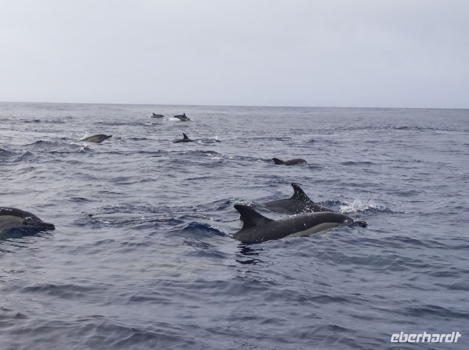 Einige Gäste haben sich für die am Vormittag stattfindende Walbeobachtungstour eingetragen, alle anderen hatten Freizeit bis zu unserem Transfer gegen 14.30 Uhr. Bei der Walbeobachtungs Tour hatten wir zu Anfang eine kleine Einführung über die Lebensweise und Verhaltensarten der Wale in den Gewässern und auch über den Pottwal, diese Walart sieht man zu dieser Zeit und in dieser Region am meisten. Wir fuhren in einem Zodiac (Schlauchboot) raus auf das offene Meer, zuerst fuhren wir zu einem Punkt wo Delfine gesichtet wurden. Angekommen sahen wir um die 20 Delfine die an unserem Boot vorbei und unter uns schwommen, ein echt einzigartiges Hautnahes Erlebnis. Danach geschah das Highlight und wir waren Zeugen von mehreren Pottwalen die nur unweit von unserem Boot schwammen, vor allem die ikonische Schwanzflosse die wir beim Abtauchen des Wales sehen konnten war großartig. Wir sahen noch weitere Pottwale bevor wir uns dann wieder Richtung Festland bewegten. Wieder auf festen Boden angekommen Spazierten wir zurück zum Hotel und wurden am Nachtmittag abgeholt und zum Flughafen geschafft. Am Flughafen von Horta verabschiedeten wir unsere Reiseleiterin und stiegen dann in eine Propellermachine die uns zur 2. größten Insel des Azoren Archipels brachte, Terceira. Auf Terceira angekommen wurden wir zum Hotel transferiert und besuchten am Abend ein Restaurant in der wunderschönen Altstadt von "Angra do Heroismo".