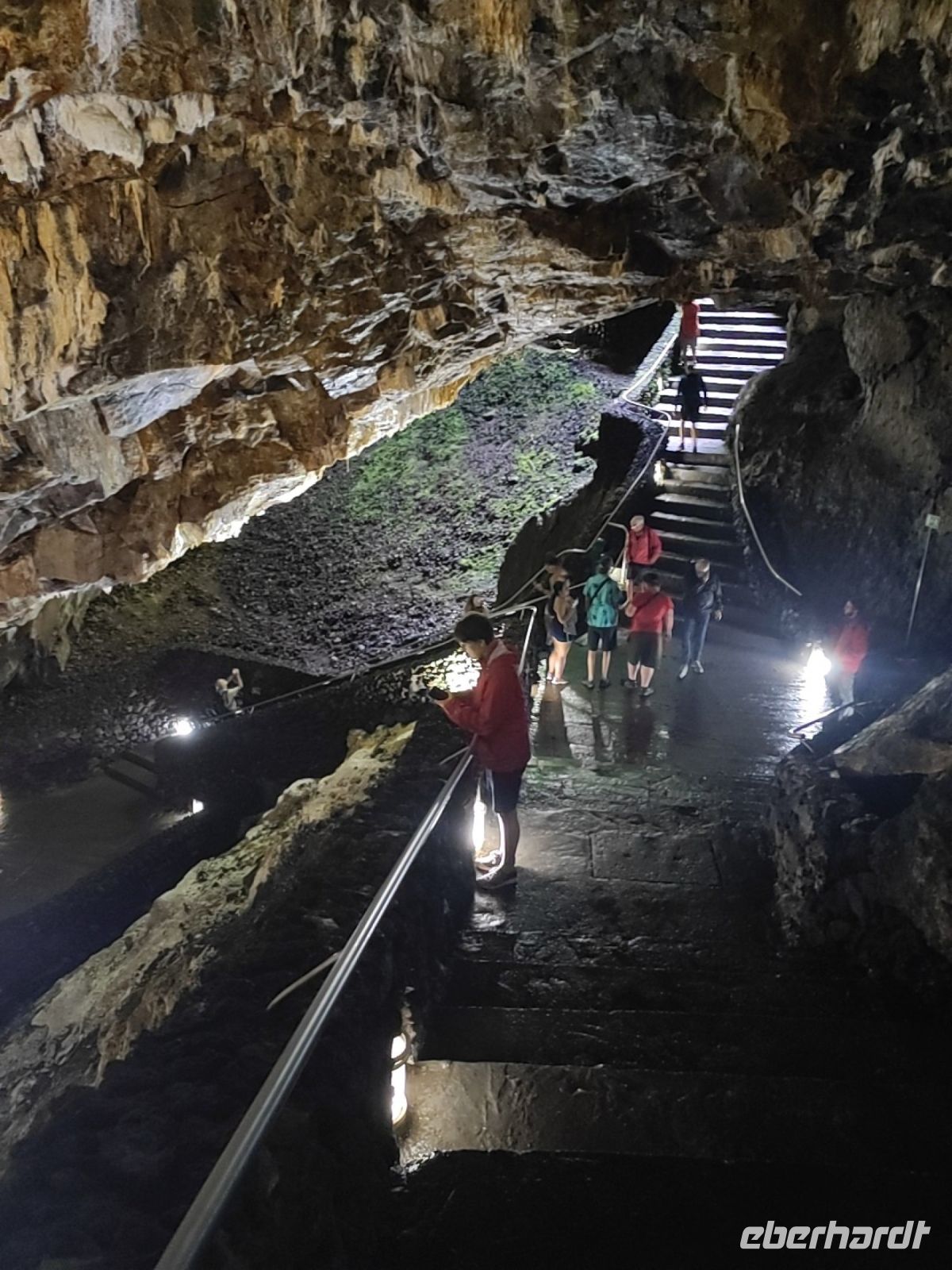 Am heutigen Tag erkundeten wir die 3. größte Insel der Azoren, unser erster Stopp war nicht weit entfernt von unserem Hotel, der "Monte Brasil". Der Berg ist eingekesselt von einer Burgmauer, welche zu der ältesten noch Aktiven Burganlage Portugals diente, gebaut wurde diese Anlage von den Franzosen um sich vor der im Tal liegenden Stadt Angra und deren Bewohnern zu schützen, im 2. Weltkrieg wurde die Anlage mit Flak-Geschützen bestückt und bemannt. Heute dient Sie vor allem als Aussichtpunkt auf die "Bucht von Angra do Heroismo". Weiter ging es dann entlang der Küste zu der ältesten Ortschaft auf der Insel, Sao Sebastiao. Während der Fahrt machten wir Stopp an einer großen Stierkampf Arena, der Stierkampf ist hier auf der Insel sehr beliebt und fast Tag täglich in einer der Ortschaften auf der Insel vertreten, der Stierkampf ist aber nicht mit dem Spanischen Stierkampf wie etwa in Pamplona zu vergleichen, sondern weit aus (Stier)/Tierfreundlicher. Auf der Fahrt sahen wir einige der für die Insel bekannten "Heilig Geist" Kapellen welche mit ihrer Farbenfrohen Fassade im Stadtbild sehr auffallen. In der Kirche von Sao Sebastiao, kann man Jahrhunderte alte sehr gut erhaltene Fresken bestaunen. Weiter ging es dann in das Landesinnere der Insel, zu einem Aussichtspunkt mit Blick auf die riesige Grasebene in mitten der Insel, von oben sieht diese aus wie ein riesiger Flickenteppich. Um die Mittagszeit hatte jeder Gast etwas Zeit für ein Mittagessen oder freie Erkundungen in der Stadt "Praia da Vitoria", viele Nutzen das schöne Wetter aus und kühlten sich im Atlantischen Ozean ab. Nach dieser kleinen Pause ging es zu einem weiteren Highlight der Reise, wir besuchten den Inaktiven und hohlen Vulkan Schlot "Algar do Cavaro". Von außen relativ unscheinbar im Pflanzen Dickicht Versteckt aber von Innen ein riesiger Hohlraum voll mit Stallagniten und einen Urwaldartigen Vulkankegel. Am Nachmittag besuchten wir eine lokale Käseverkostung und tranken dazu ein Glas Weißwein, zur Auswahl standen 4 verschiedene Käsesorten, hinter jedem eine Andere Rezeptur, aber alle samt mit sehr leckerem Geschmack. Danach fuhren wir nach einem Erlebnisreichen Tag zurück nach "Angra do Heroismo" und in unsere Hotel am Fuße des "Monte Brasil". Am Abend besuchten wir ein kleines Unscheinbares Restaurant und wurden von einer köstlichen Portugiesischen Küche bewirtet und verzaubert.