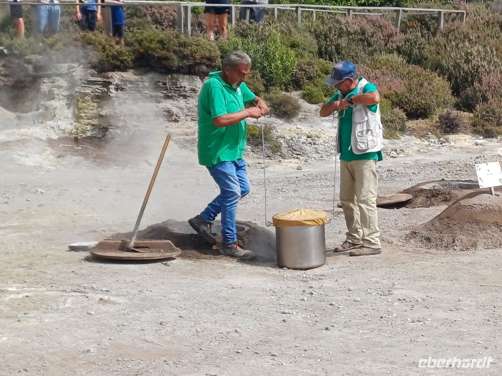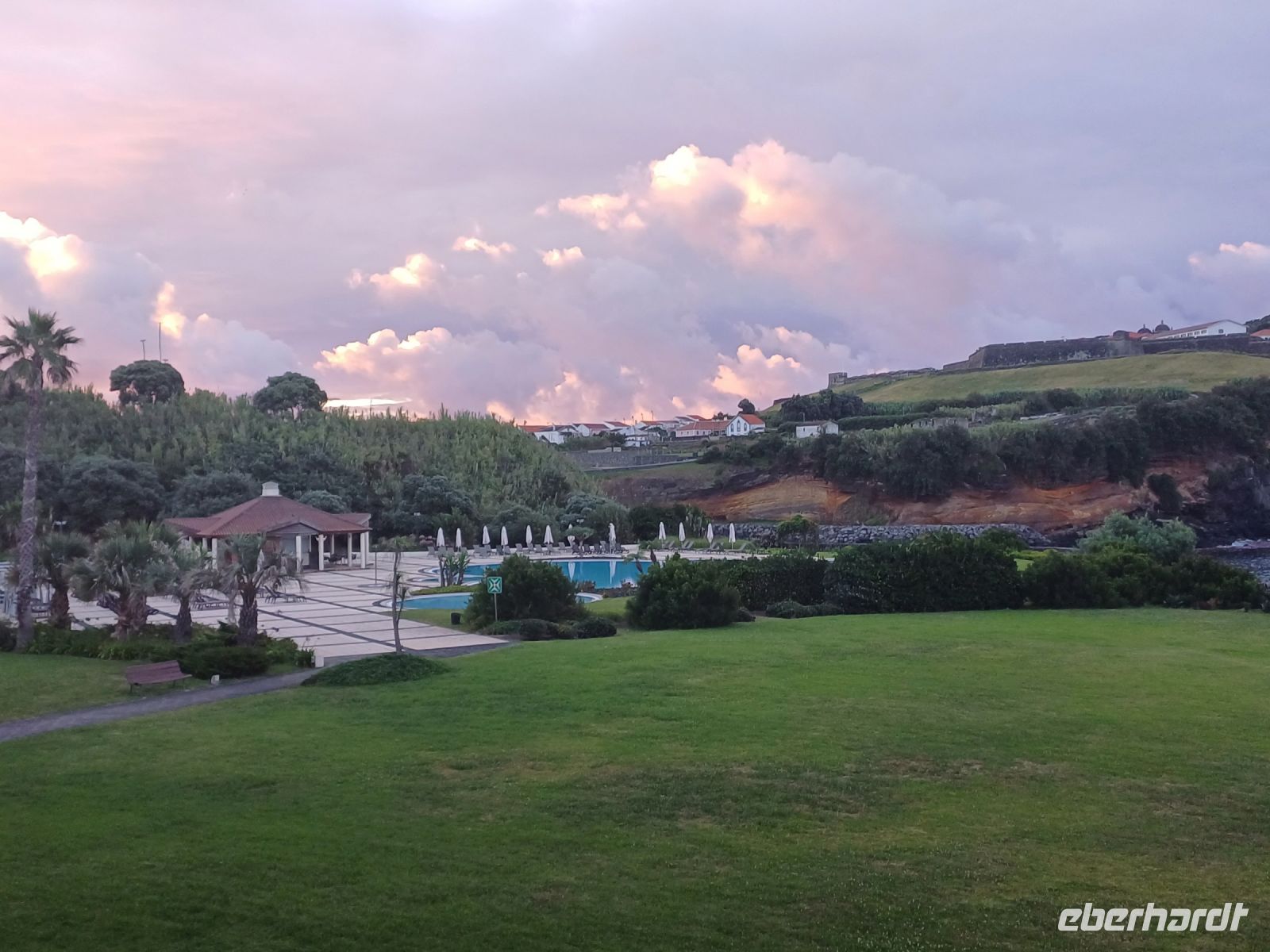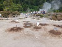 Nach dem reichlichen Frühstück besteigen wir unseren Reisebus. Die Insel Sao Miguel ist die größte und die wohl vielseitigste Insel, zudem noch gut erschlossen. Der Aufschwung der Inseln begann mit dem EU Beitritt Portugals und der Erschließung für Touristen. Die kurzweilige Fahrt geht in den Norden zur Teeplantage Gorreana, unsere Reiseleitung erläutert uns den Anbau der verschiedenen Teesorten. Jeder darf das Aroma testen und den ersten Einkauf tätigen. Die Insel zeigt sich von ihrer grünen Seite, immer wieder sehen wir blühende oder abgeblühte Hortensien. Vom Aussichtspunkt Pico do Ferro haben wir einen fantastischen Ausblick auf den See Furnas und die heißen Quellen. Der Dampf der Fumarolen und der Schwefelgeruch weisen uns den Weg. In die Erde eingelassene Kochtöpfe mit dem leckeren Eintopf Cozido werden 6 Stunden gegart. Auch wir probieren in Tonys Restaurant davon. Der bekannte üppige Garten „ Parque Terra Nostra“ steht nun auf dem Programm. Wir überzeugen uns von der Pracht der Bäume und Sträucher. Anschließend lädt ein riesiges warmes Thermalbecken zum Bade ein. Bei einem Besuch der alten Inselhauptstadt Villa Franco do Campo geht der prall gefüllte Tag zu Ende. Der Abend wird beendet, bei einigen Gästen mit Picknick und den anderen Gästen mit einem Besuch der Hafenrestaurants.