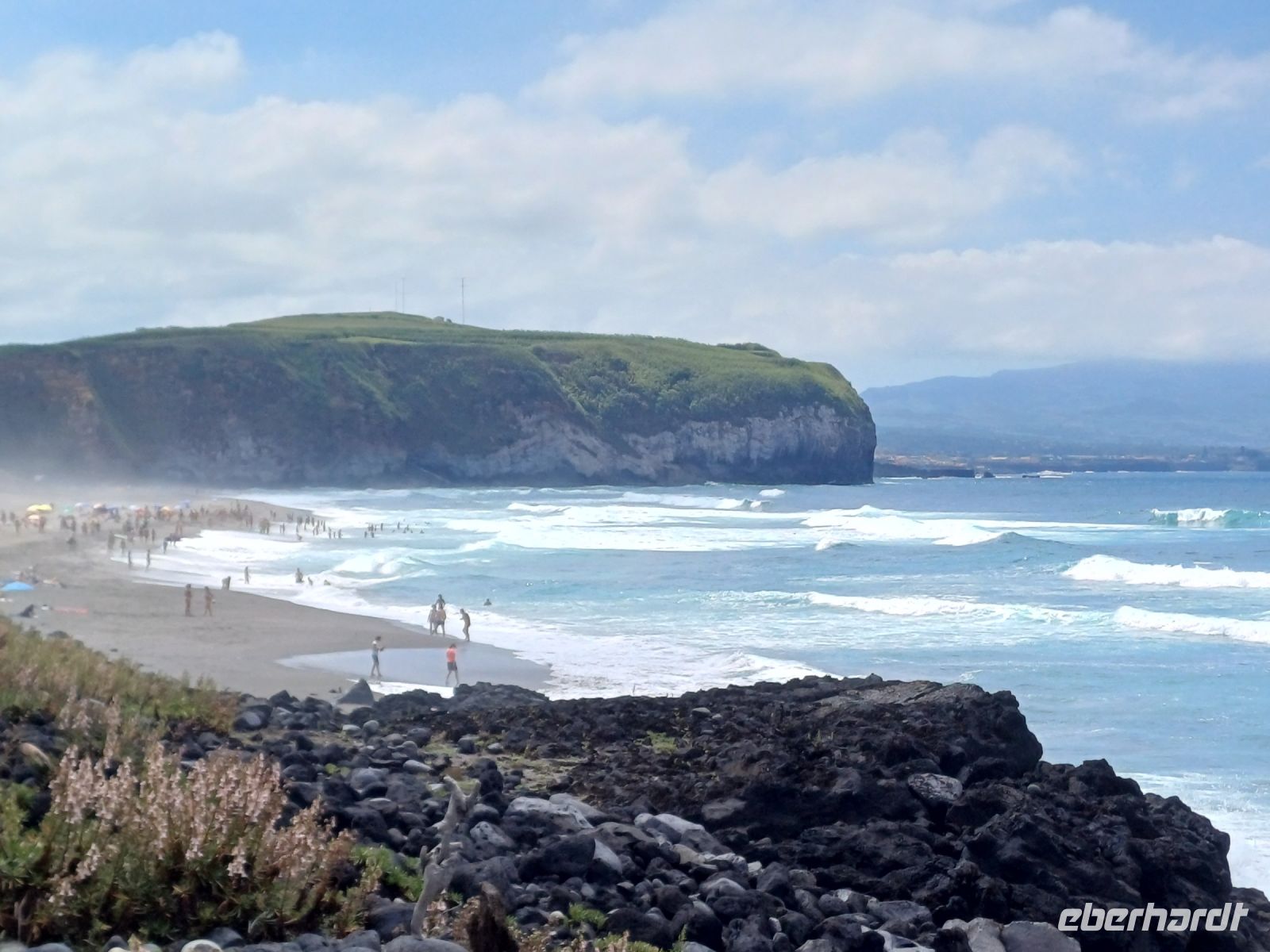 Am Nachmittag besichtigen wir den Norden der Insel, mit dem Ort Ribiera Grande. Zum Abschluss geht es zu einem dunklen tossenden Atlantikstrand, es wird eher ein Stehbad, man ist froh sich auf den Beinen halten zu können. Das Meer ist so stürmisch selbst eine Sonnenbrille wird von den Wellen fortgespült. Am Abend finden sich Grüppchen zum gemeinsamen Abendessen.