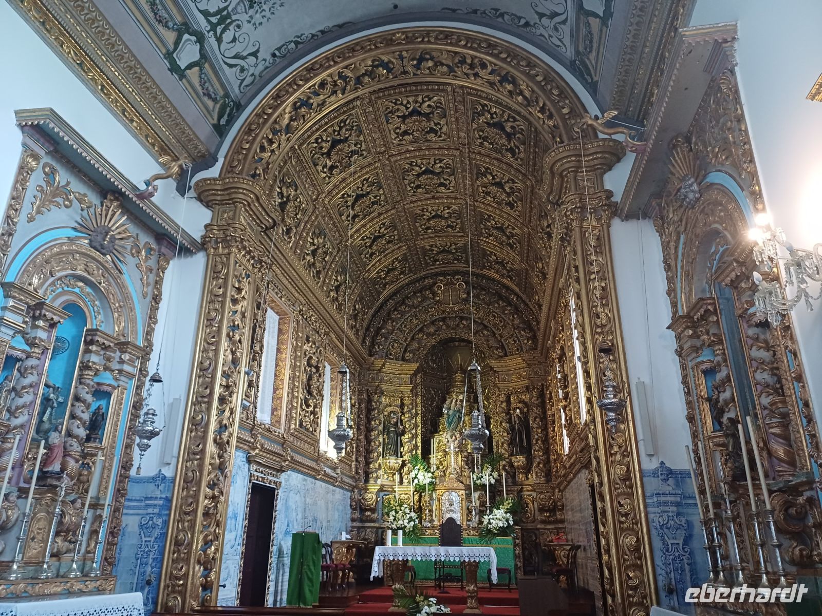 Der 3. Tag auf Sao Miguel steht vorallem im Zeichen der schönen Seen – Lagoa Azul und Lagoa Verde. Zuerst geht es entlang der Südküste zu einer Ananas – Plantage, wir erfahren viele Einzelheiten über den mühevollen Anbau. In Zukunft werden wir vermutlich beim Kauf daran denken wieviel Arbeit dahinter steckt. Nun geht es zum Aussichtspunkt Vista do Rei, von dort bekommt man eine Ahnung von der Landschaft und den Farben der beiden Seen. In Sete Citades können wir uns von den prachtvollen Herrenhäusern in das 19 Jahrhundert versetzen lassen. Der Besuch des ethnografische Museum lädt uns ein in eine längst vergangene Zeit. Es bietet ein Sammelsurium an Kuriositäten von ungewöhnlichen und gewöhnlichen Dingen, liebevoll gesammelt von einem sehr alten Ehepaar. Zusammen mit unserer Reiseleiterin bildet ein informativer Stadtrundgang in Ponta Delgada den Abschluss unserer Tagestour. Für den Abend hatte ich im Vorfeld der Reise ein reichliches Abendbuffet im Restaurant Sao Pedro bestellt.