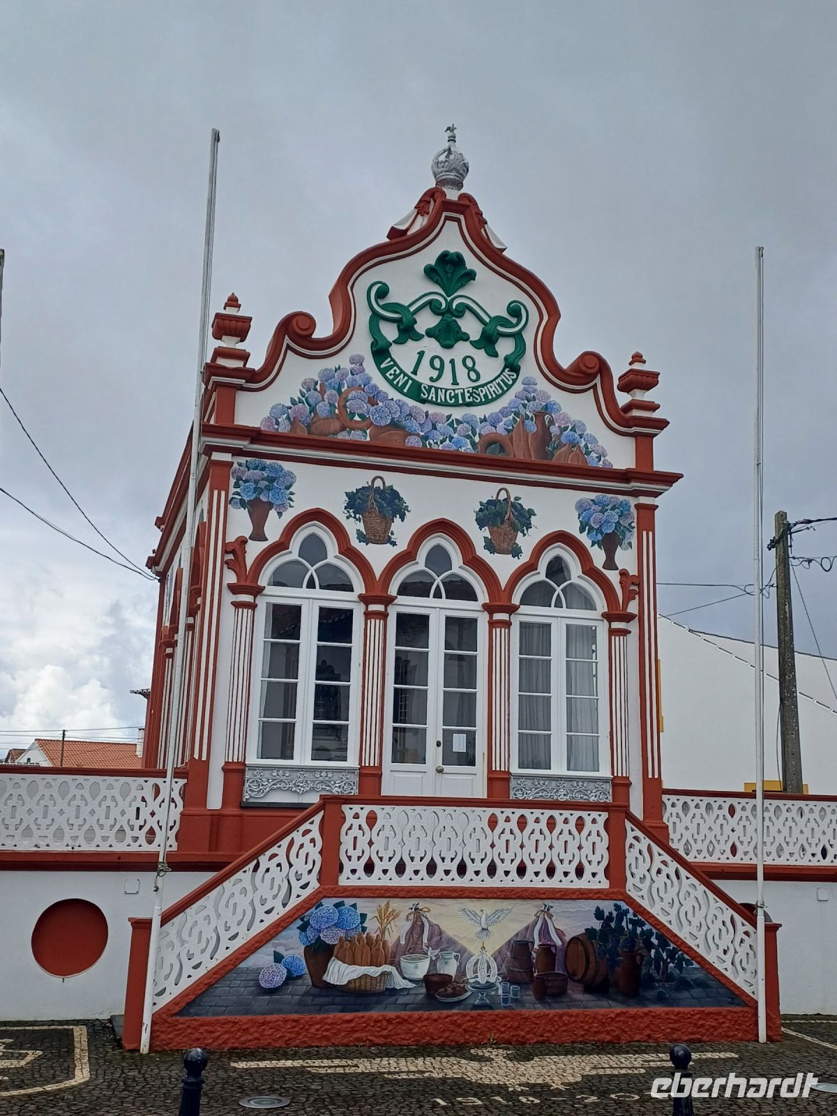 Unsere ersten Eindrücke von der Insel wollen wir heute bei einer Inselrundfahrt intensivieren . Zuerst erklimmen wir mit dem Bus den Hausberg Monte Brasil, von da haben wir einen schönen Blick auf die Stadt Angra do Heroismo. Entlang der Südküste liegt Sao Sebastiao und Praia da Vitoria, alle Orte haben farbenfrohe Heilige-Geist Kapellen, diese sind Eigentum der Bevölkerung und nicht der Kirche. Wir sehen die Ziegeninseln, und erfahren einiges über den Stierkampf. Der Stierkampf ist auf Terceira am häufigsten ein Straßen- Stierkampf, dabei wird der Stier am Seil durch die Straßen gejagt. Beim Halt im anschließenden Weinort Biscoitos besuchen wir die beeindruckenden Natursteinbecken. Weiter geht es in den Norden, alle Gäste wagen sich in das Höhleninnere der Vulkanhöhle Algar do Carvao, wobei doch einige Stufen zu überwinden sind. Am späten Nachmittag geht es zu einer trubeligen Käse-Verkostung, diese Idee hatten am Sonntag auch noch andere Gäste. Aufgrund des Regens nahmen die Gäste das Abendessen im Hotel Restaurant ein.