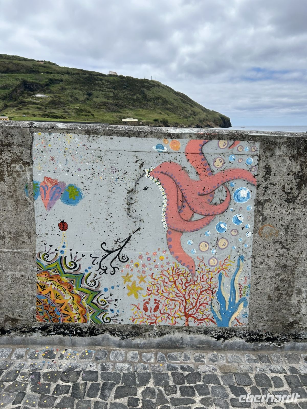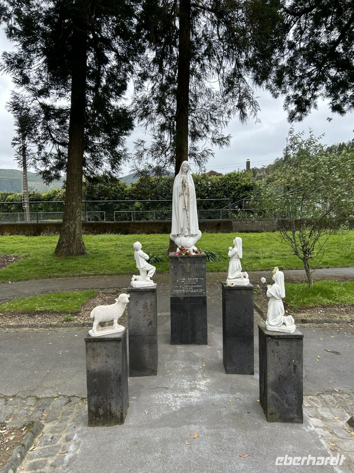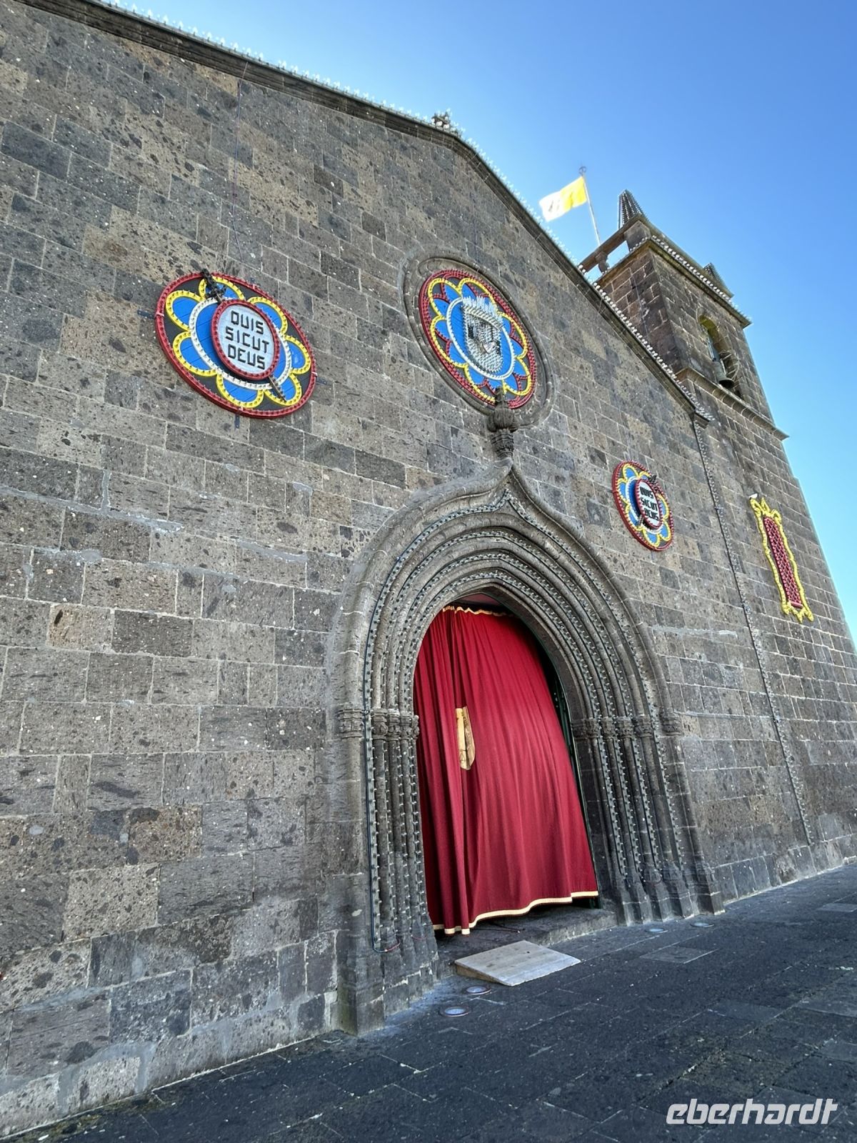 Der 4100 Seelenort liegt an der Südküste von Sao Miguel und ist eine vorgelagerte Vulkaninsel, deren Kraterwand an der Nordseite zur See hin durchbrochen ist, so dass Meerwasser einfließen kann und sich Sand abgelagert hat. Sozusagen ist hier ein natürliches Schwimmbecken entstanden. Hier angekommen nutzen wir die Gelegenheit und besichtigen die Kirche von Sao Miguel bevor die Sonntagsmesse beginnt. Bereits beim Betreten wedelt uns der intensive Geruch von Weihrauch um die Nase ein typischer Brauch für die Sonntagszeremonie.