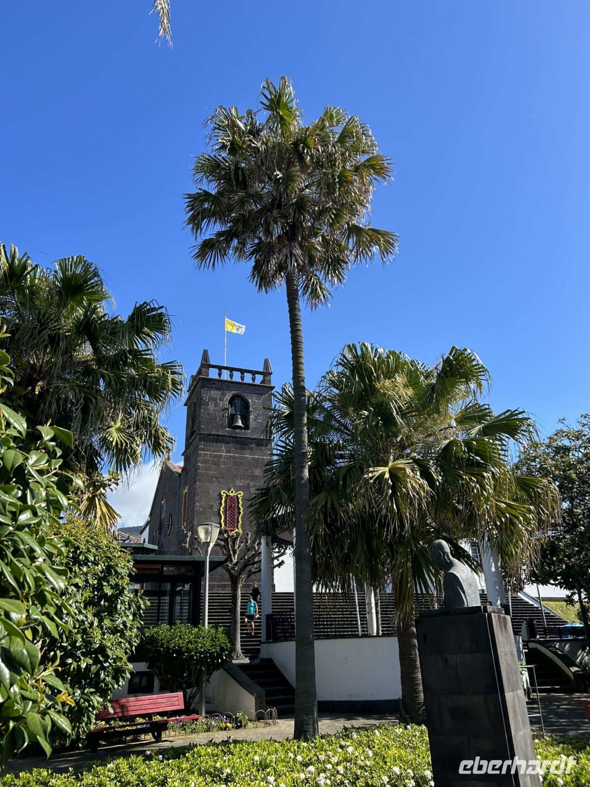 Wieder im trocknen Bus angekommen machen wir uns auf ins das beschauliche Städtchen Riberia Grande, wo wir nach einem ersten kleinen Rundgang einen Mittagspause einlegen. Gestärkt schauen wir uns nun die frisch sanierte Kirche „Igreja Matriz de Nossa
