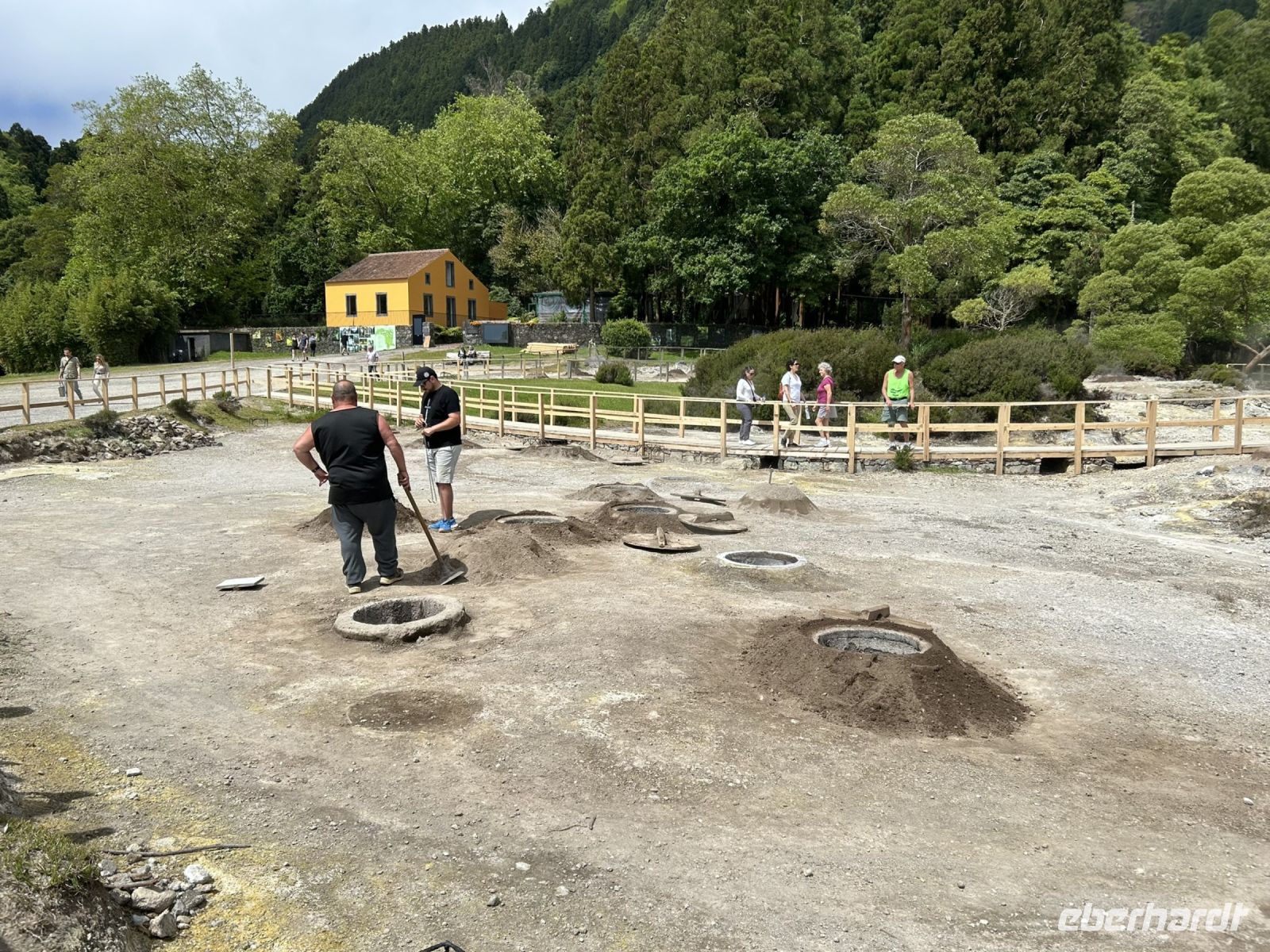 Und wir haben Glück! Mit uns sind auch 2 Mitarbeiter von Tonys Restaurant angekommen, die den gekochten Eintopf aus der Erde holen.