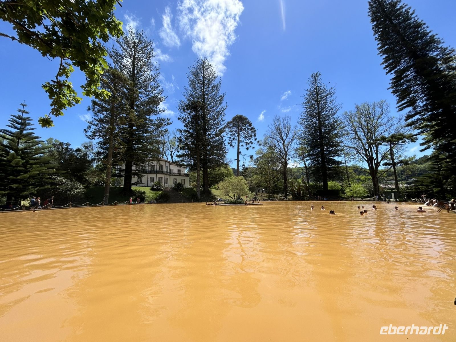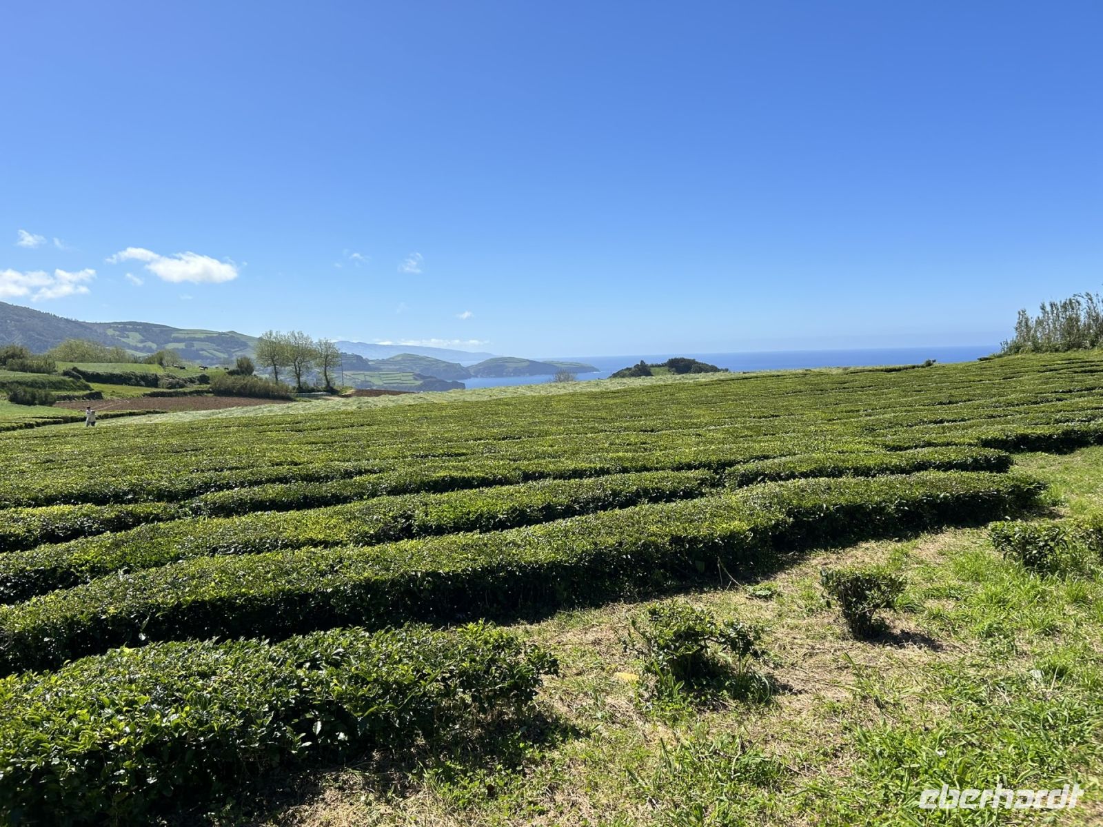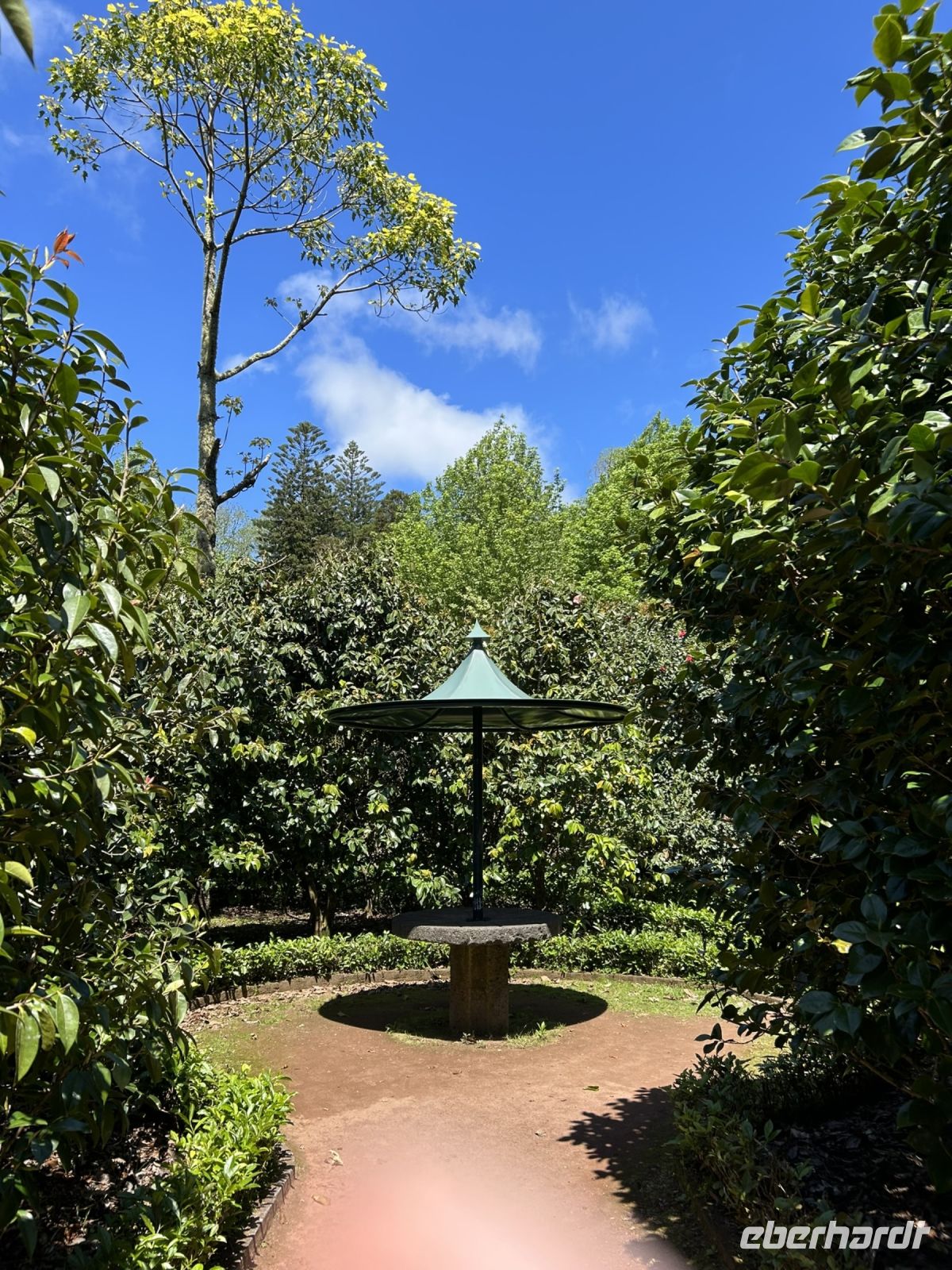 Neben allerlei Flora und Fauna gibt es hier auch ein Thermalbecken mit 38 Grad Wassertemperatur. Einige von uns nutzen die Gelegenheit und springen in das in dem Fall nicht kalte, sondern wohlig temperiert Nass. Der andere Teil der Gruppe geht mit Reiseleiter José auf Erkundungstour durch den wundervollen, sehr gepflegten Park. Gemeinsam machen wir uns wieder auf den Rückweg nach Ponta Delgada, wo wir aber noch einen letzten Zwischenstopp auf einer Teeplantage machen.