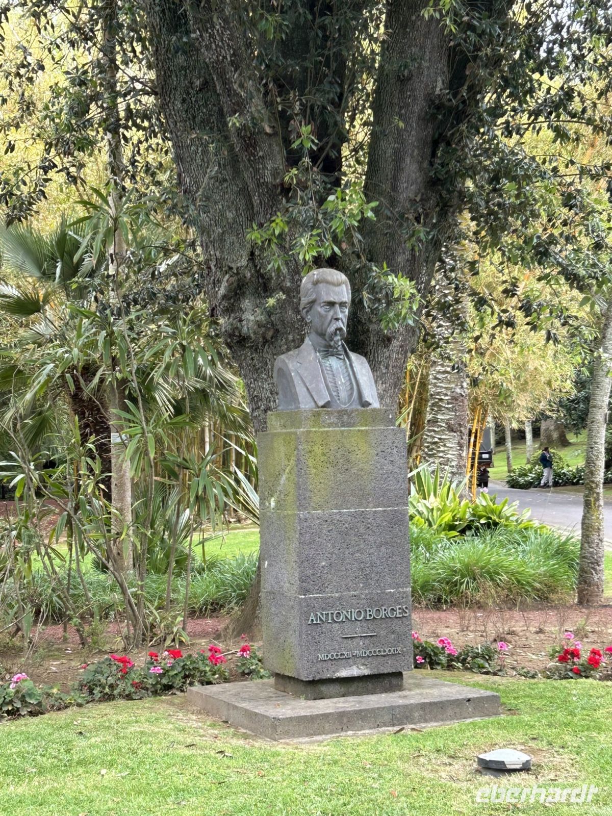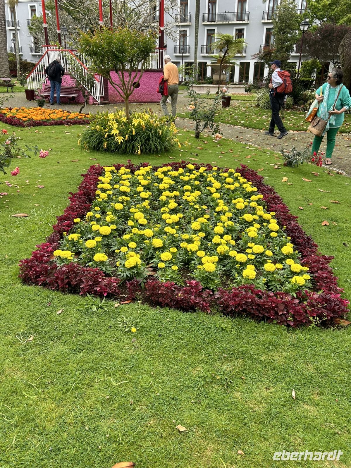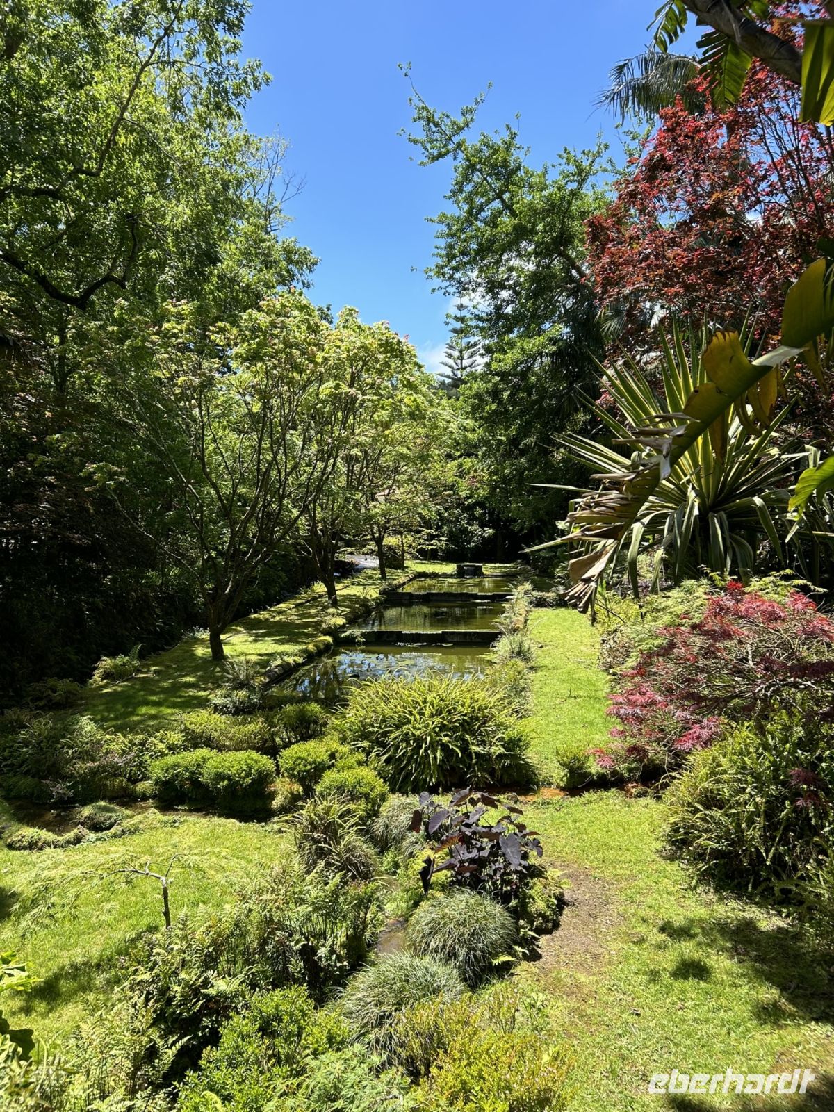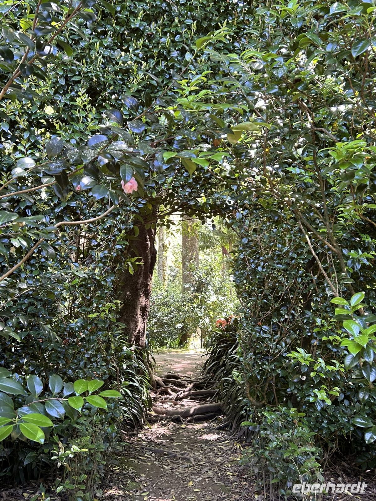 Neben allerlei Flora und Fauna gibt es hier auch ein Thermalbecken mit 38 Grad Wassertemperatur. Einige von uns nutzen die Gelegenheit und springen in das in dem Fall nicht kalte, sondern wohlig temperiert Nass. Der andere Teil der Gruppe geht mit Reiseleiter José auf Erkundungstour durch den wundervollen, sehr gepflegten Park. Gemeinsam machen wir uns wieder auf den Rückweg nach Ponta Delgada, wo wir aber noch einen letzten Zwischenstopp auf einer Teeplantage machen.