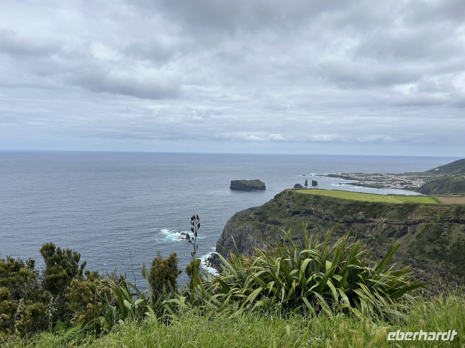 Weiter geht es zu einem herrlichen Aussichtspunkt mitten im Grünen, wo wir einen Blick auf eine im Atlantik gelegene Insel erhaschen können. Es ist atemberaubend- strahlender Sonnenschein, eine ruhige See und Natur pur.