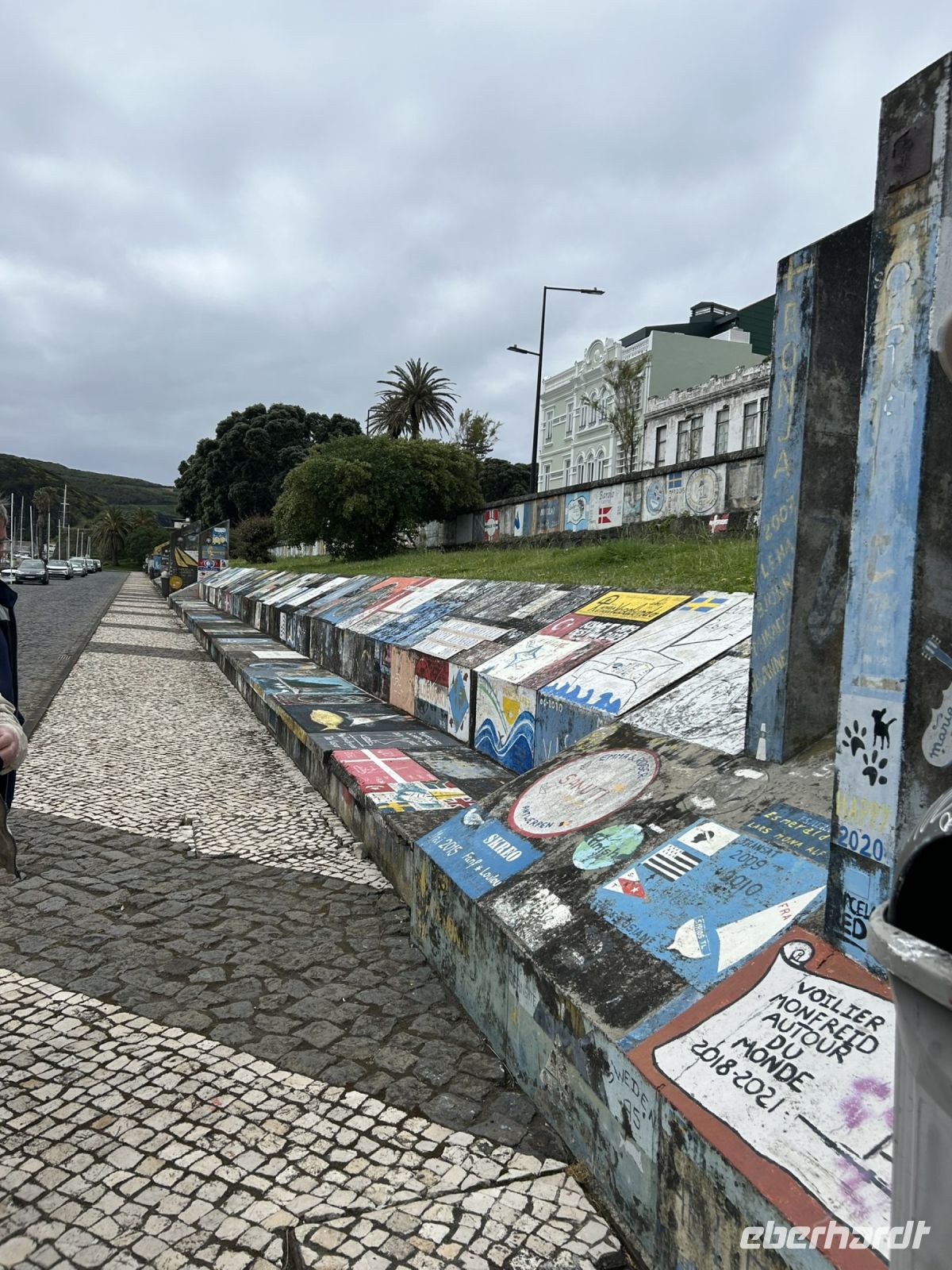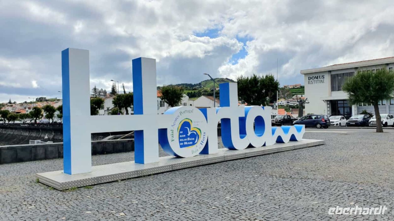 Die Zimmer können wir noch nicht beziehen, daher begeben wir uns auf eine erste Erkundungstour zu Fuß durch Horta.