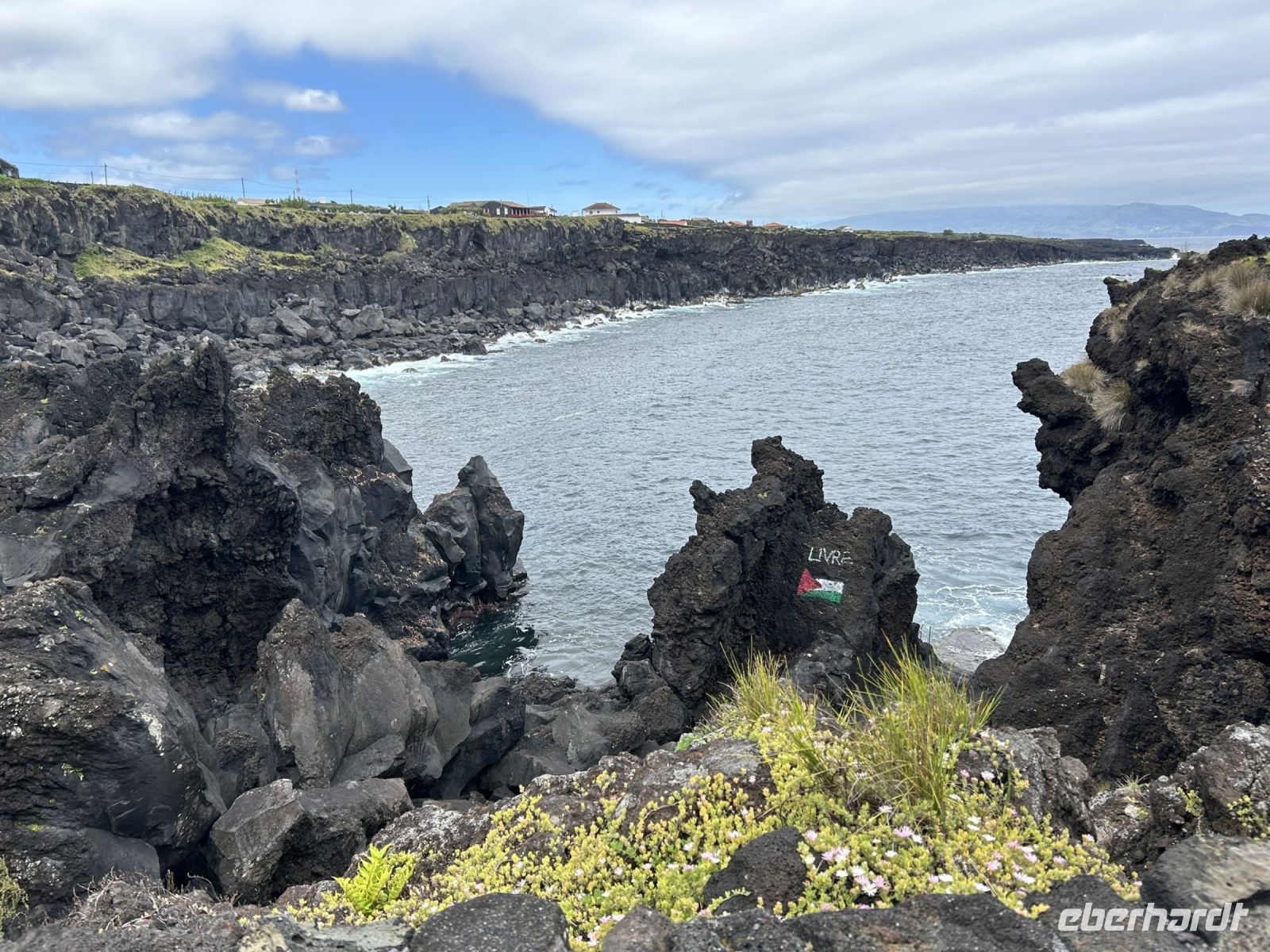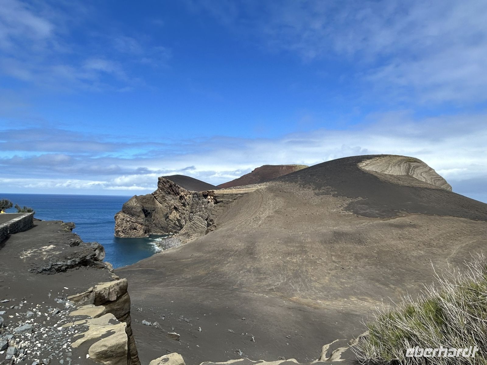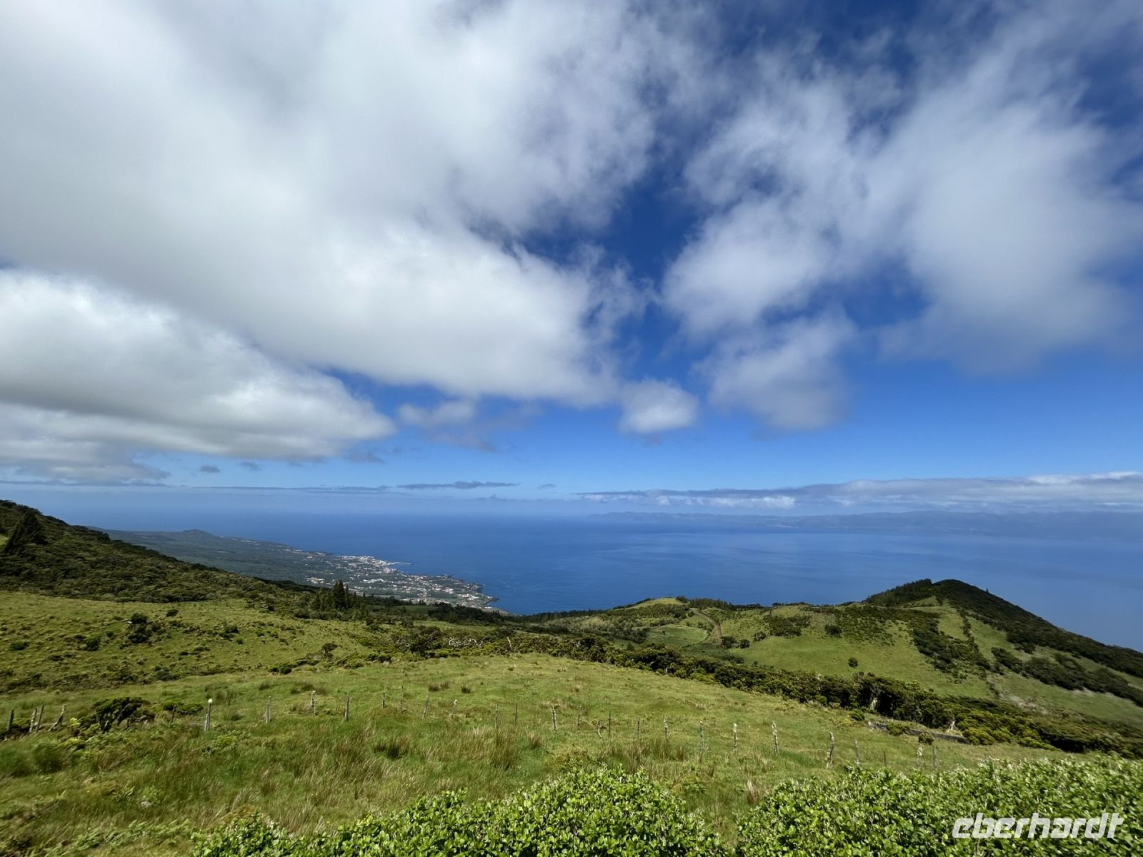 Den ersten Halt machen wir an einem Supermarkt um unsere Wasservorräte aufzufüllen und um uns ein wenig Proviant für den heutigen Tag zu besorgen. Faial ist die fünftgrößte Insel der Azoren und erstreckt sich über 172 Quadratkilometer mit einer Breite von etwa 14 km und 21 km Länge. Während unserer Inselrundfahrt halten wir an verschiedenen Aussichtspunkten um die sagenhafte Aussicht genießen zu können. Natürlich knipsen wir was das Zeug hält.