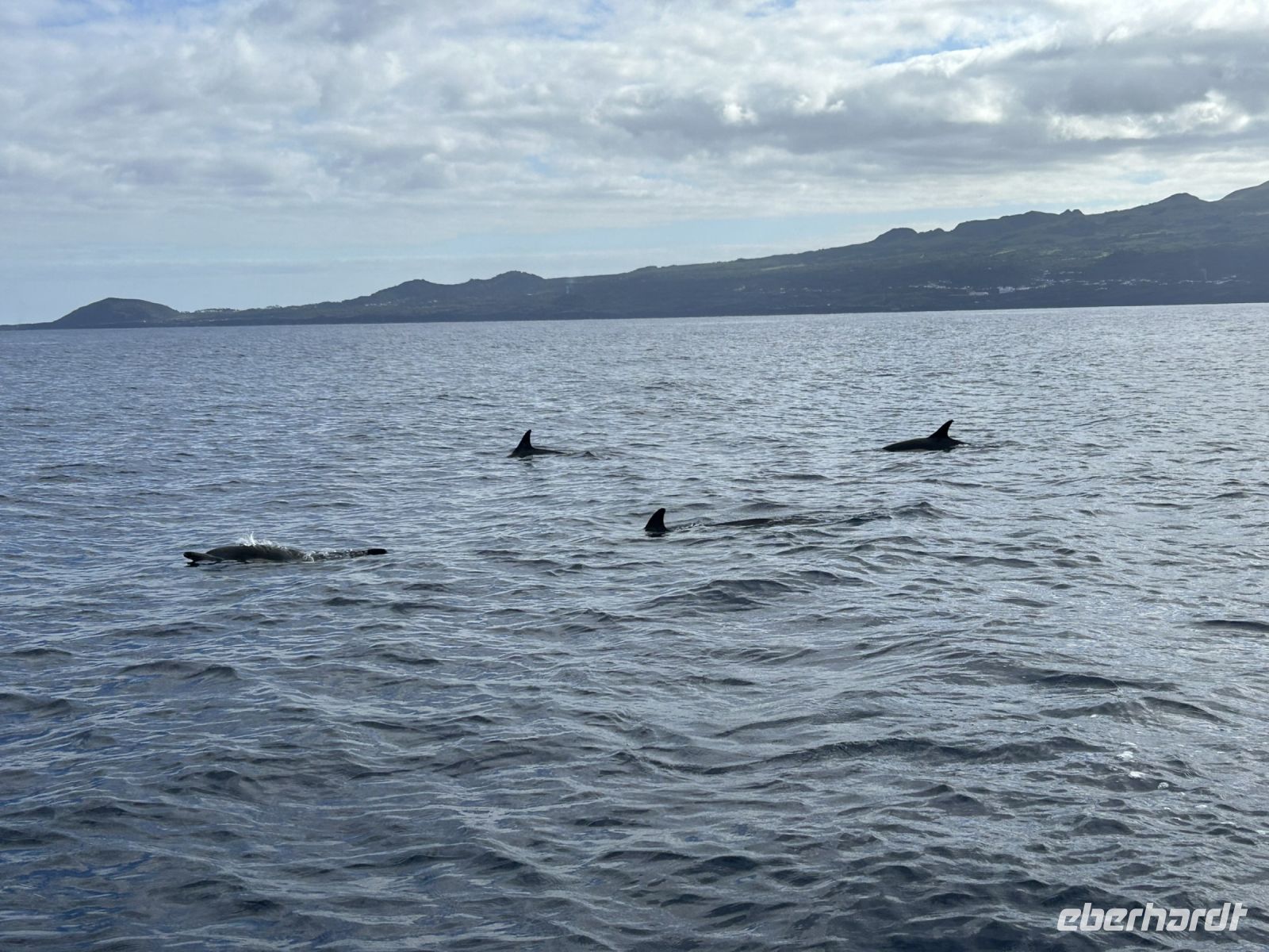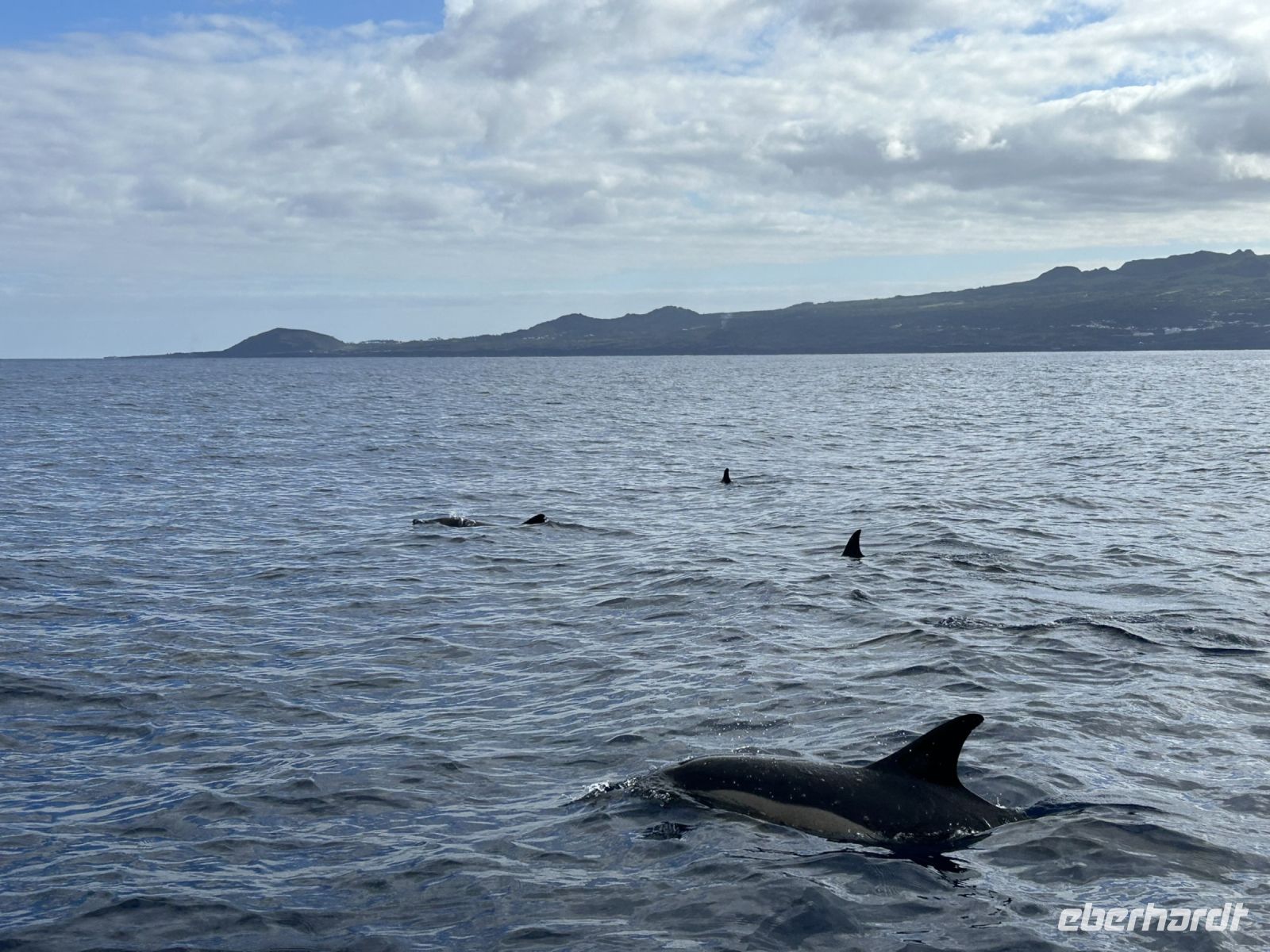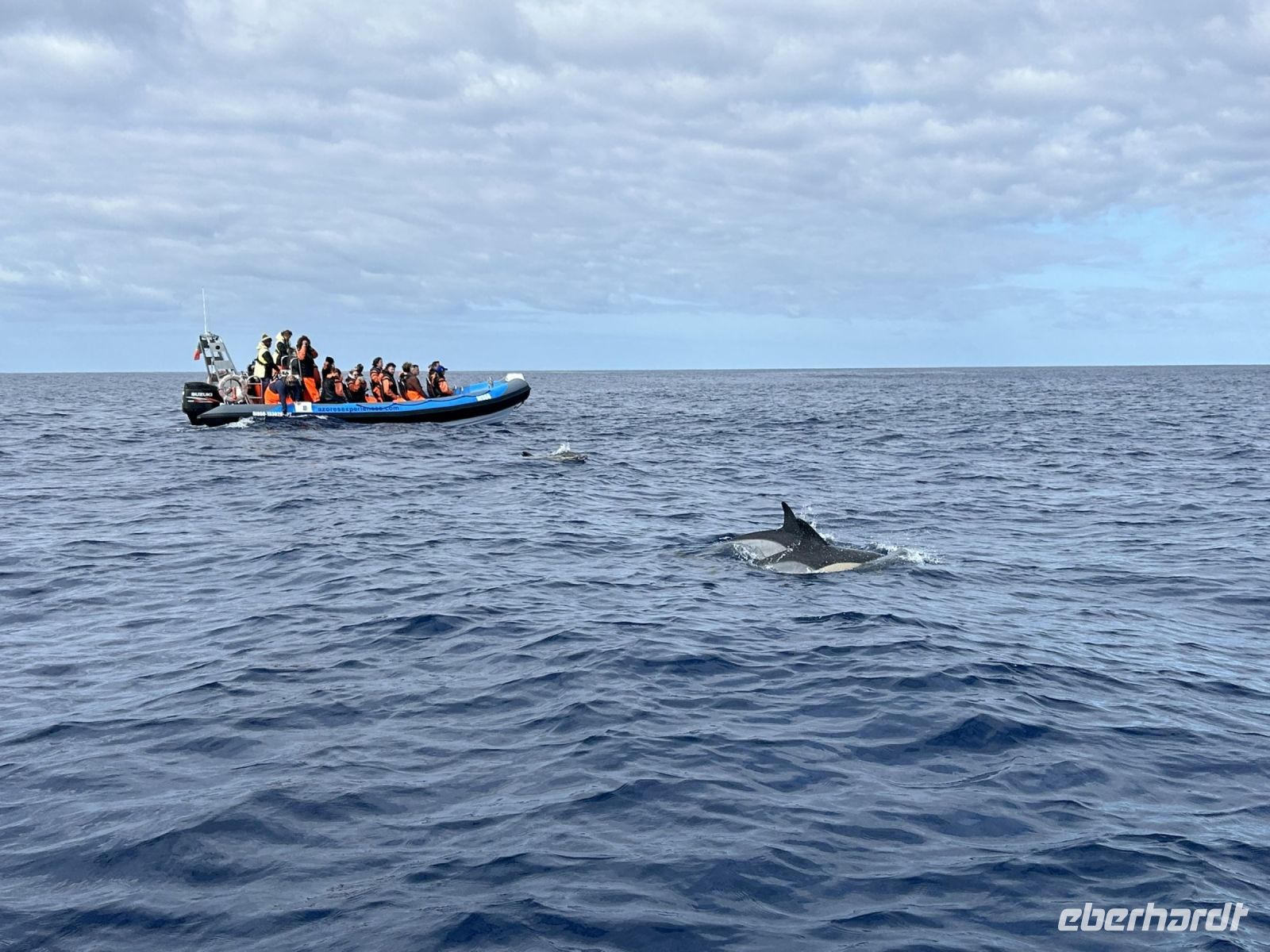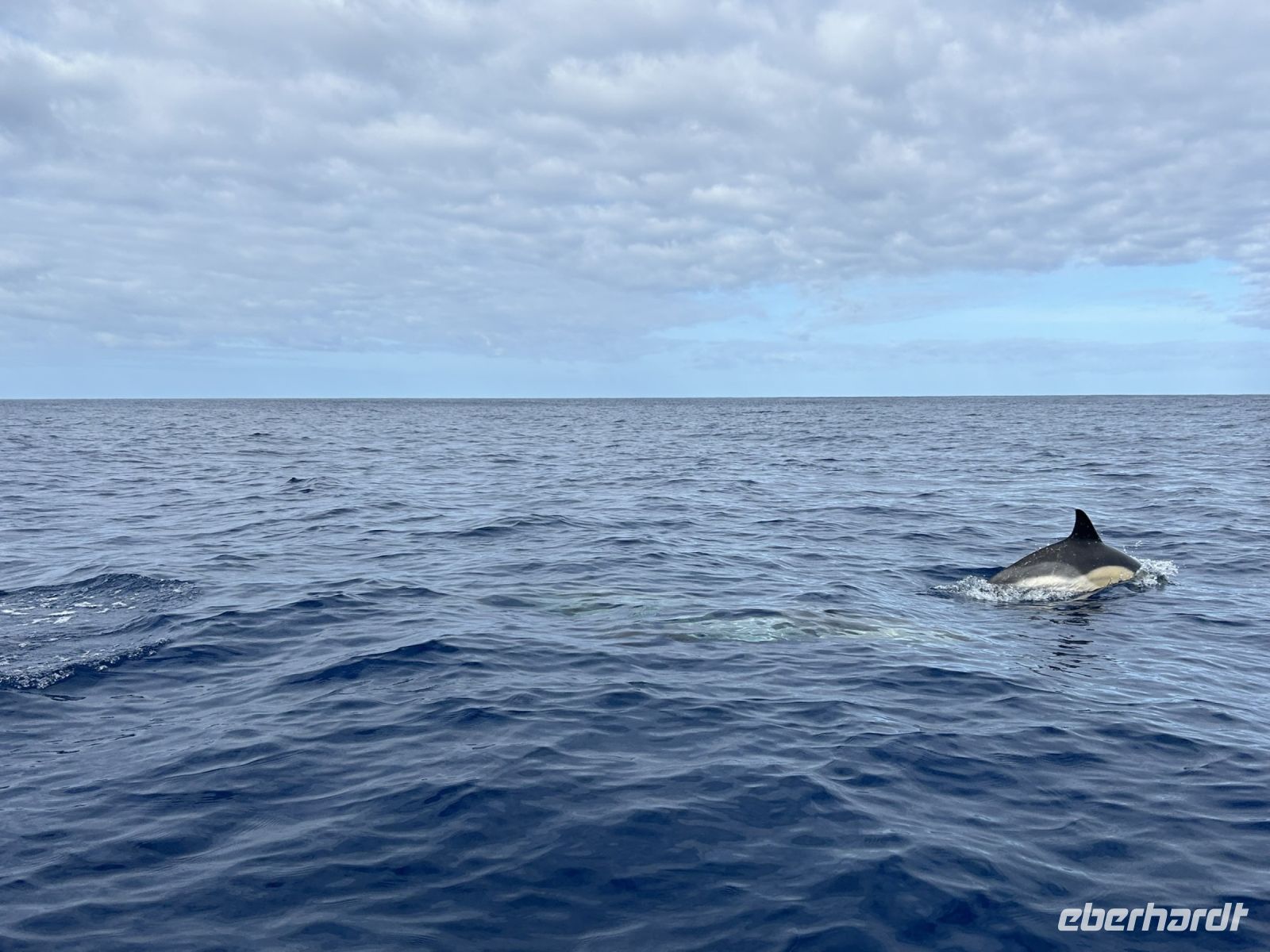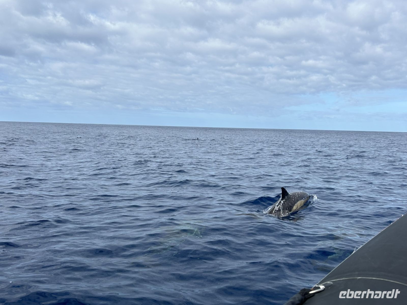 Nach einer kurzen und stürmischen Fahrt erreichen wir einen Spot, wo uns eine Gruppe Delfine erwartet. Bereitwillig stellen sie sich als Fotoobjekt zur Verfügung, worüber wir sehr dankbar sind.