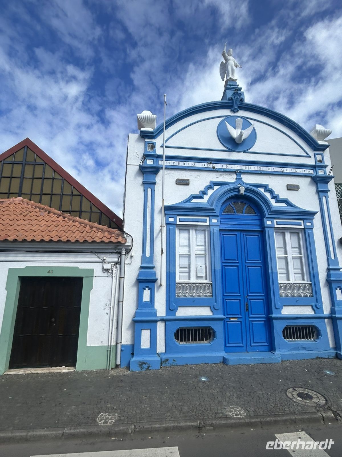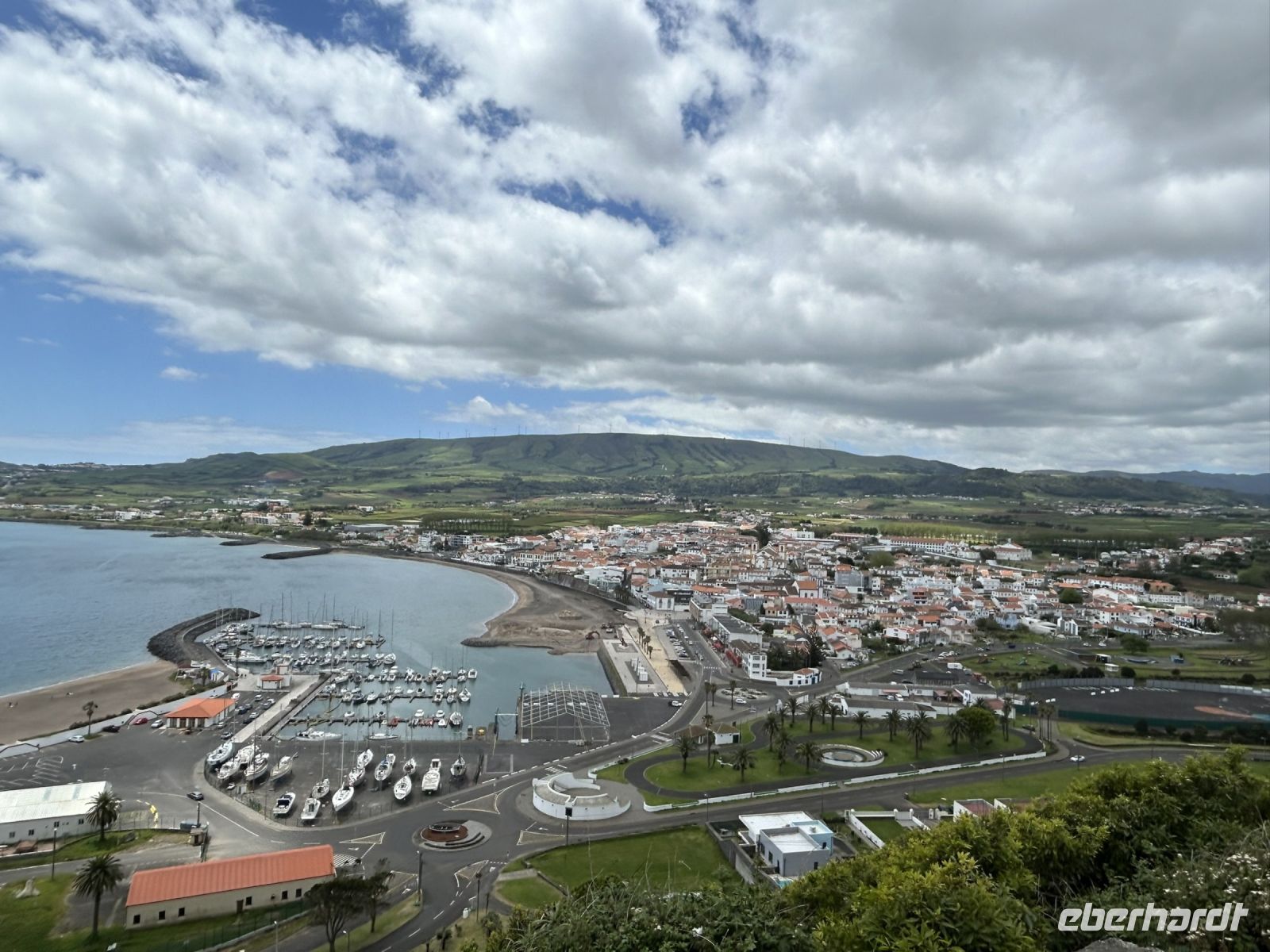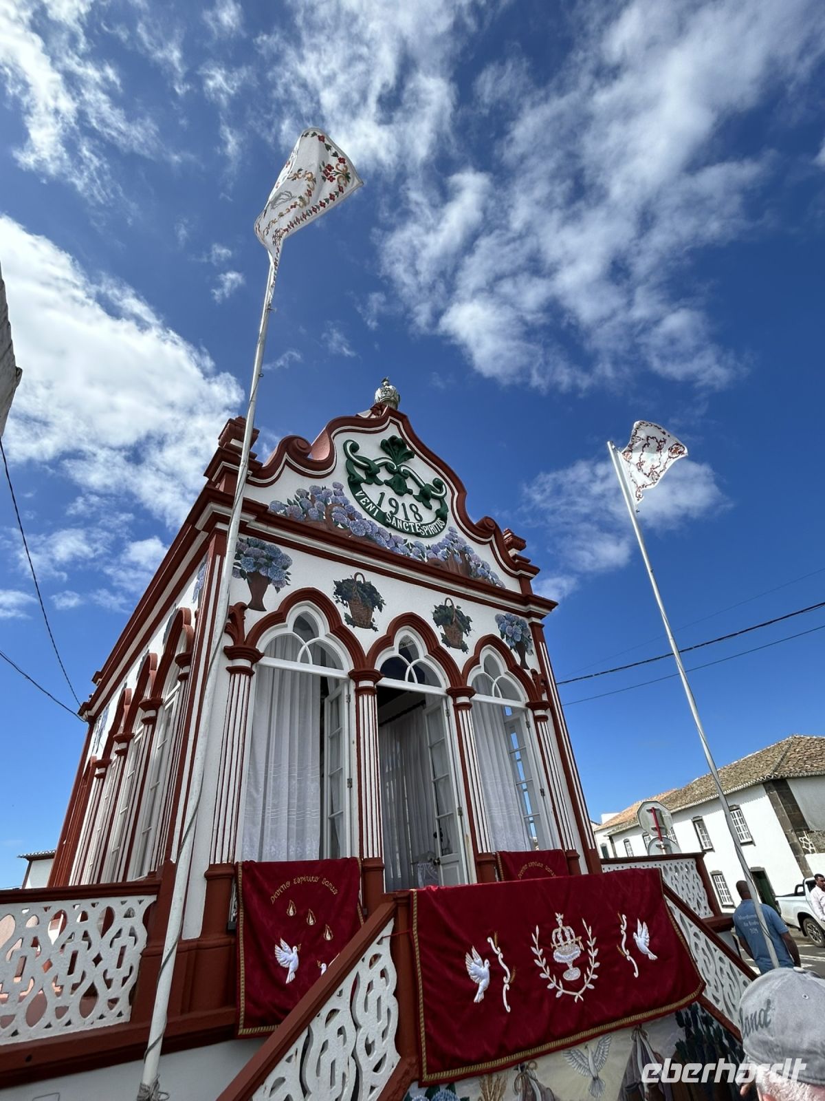 Das Heilig-Geist-Fest durften wir direkt miterleben, denn es ist Pfingstsonntag und die Kirchen und Kapellen, sogenannte Imperios sind bunt geschmückt. Der Sinn des Festes ist die Verehrung des Heiligen Geistes und die rituelle Verteilung von Nahrungsmitteln als Zeichen der Solidarität. Nach unserem wohlverdienten Mittagspäusschen in Praia di Vitoria fahren wir noch einige Aussichtspunkte an um einen besseren Eindruck der Insel zubekommen. Während der Fahrten unterhält uns unserer Reiseleiter mit wissenswerten Fakten über Land und Leute, natürlich darf die eine oder andere witzige Anekdote nicht fehlen.