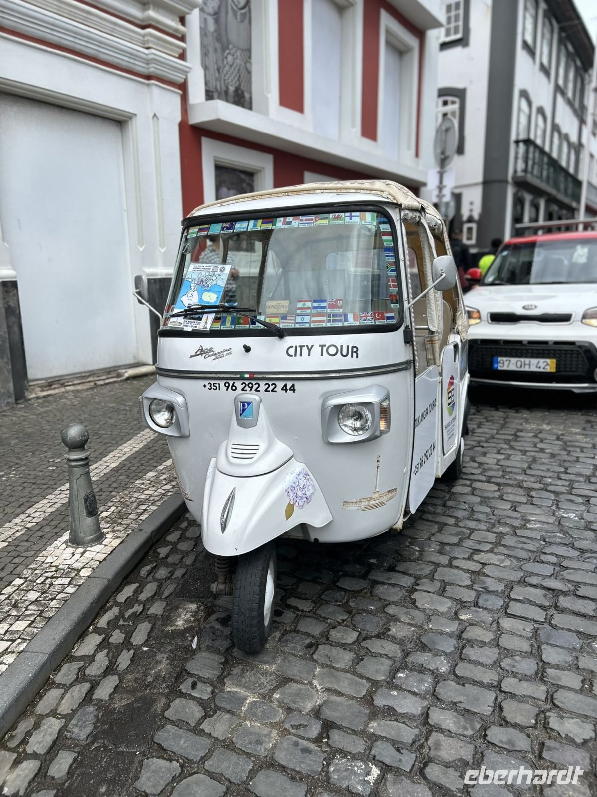 Immer noch ganz begeistert fahren wir nun schließlich auf sehr abenteuerliche Art und Weise Richtung Horta, wo unsere Reiseleiterin bereits auf uns wartet.