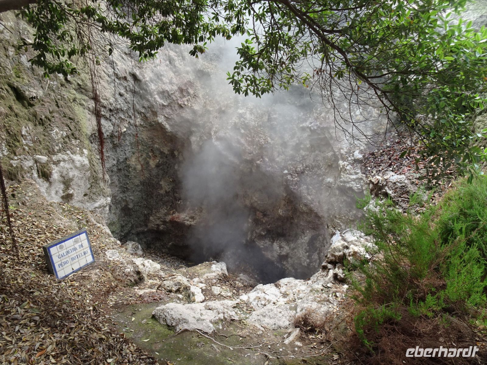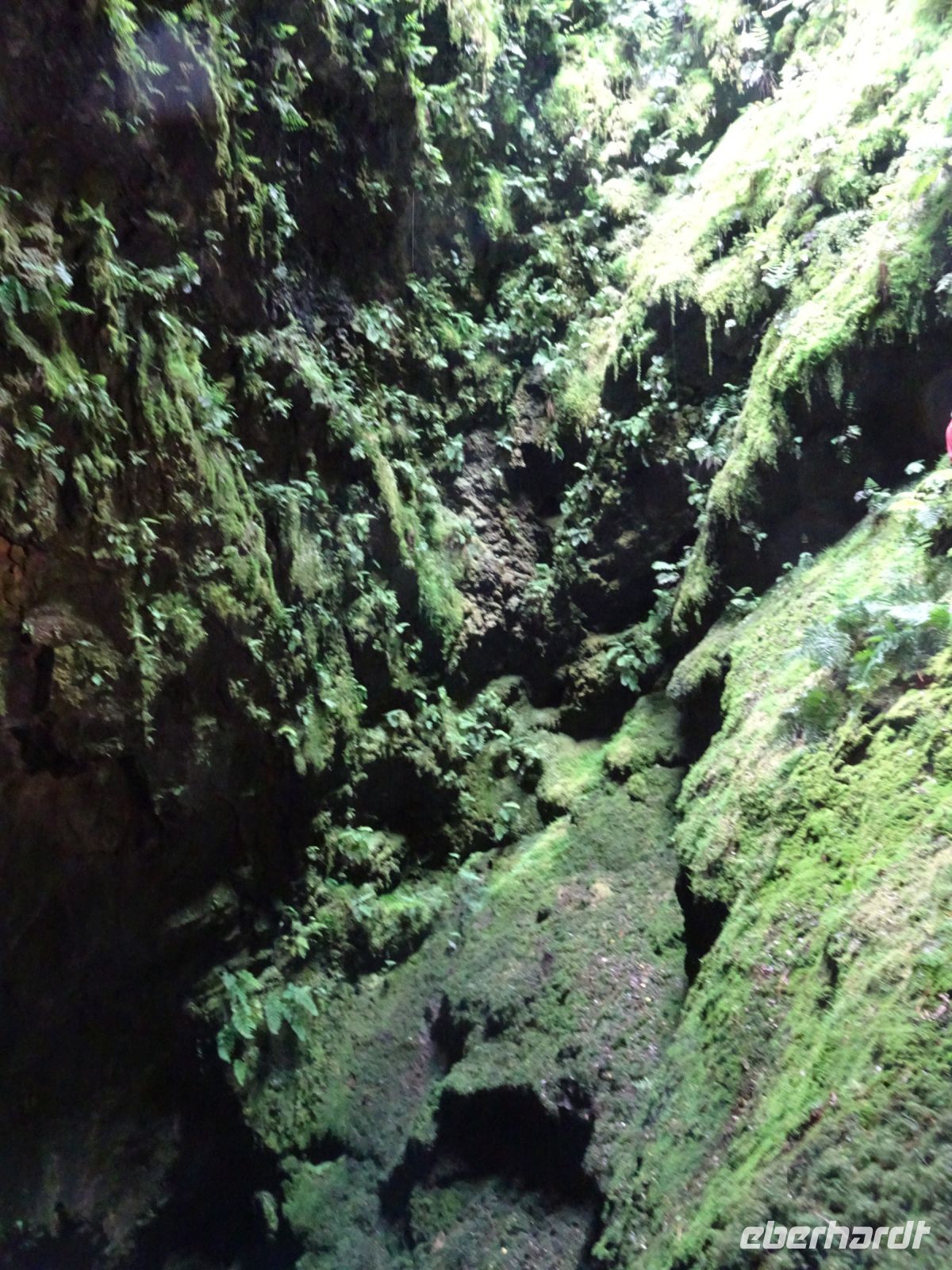 Eine besonders interessante Erscheinung war die Algar do Carvão ( Kohlenhöhle), in die wir bei Interesse hinabsteigen konnten. Trichterförmiger Einstieg und unten Tropfsteinhöhen mit mächtigen Gewölben und einer interessanten Vegetation von Moosen und Farnen. Die Höhle ist ein vor etwa 2000 Jahren erloschener Schlund eines Vulkans.