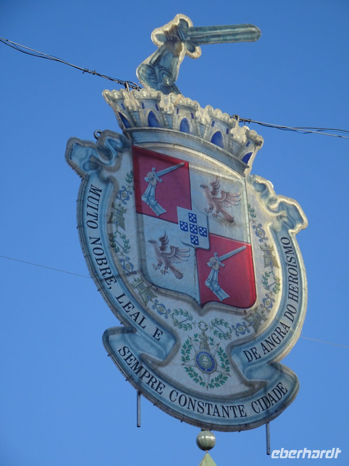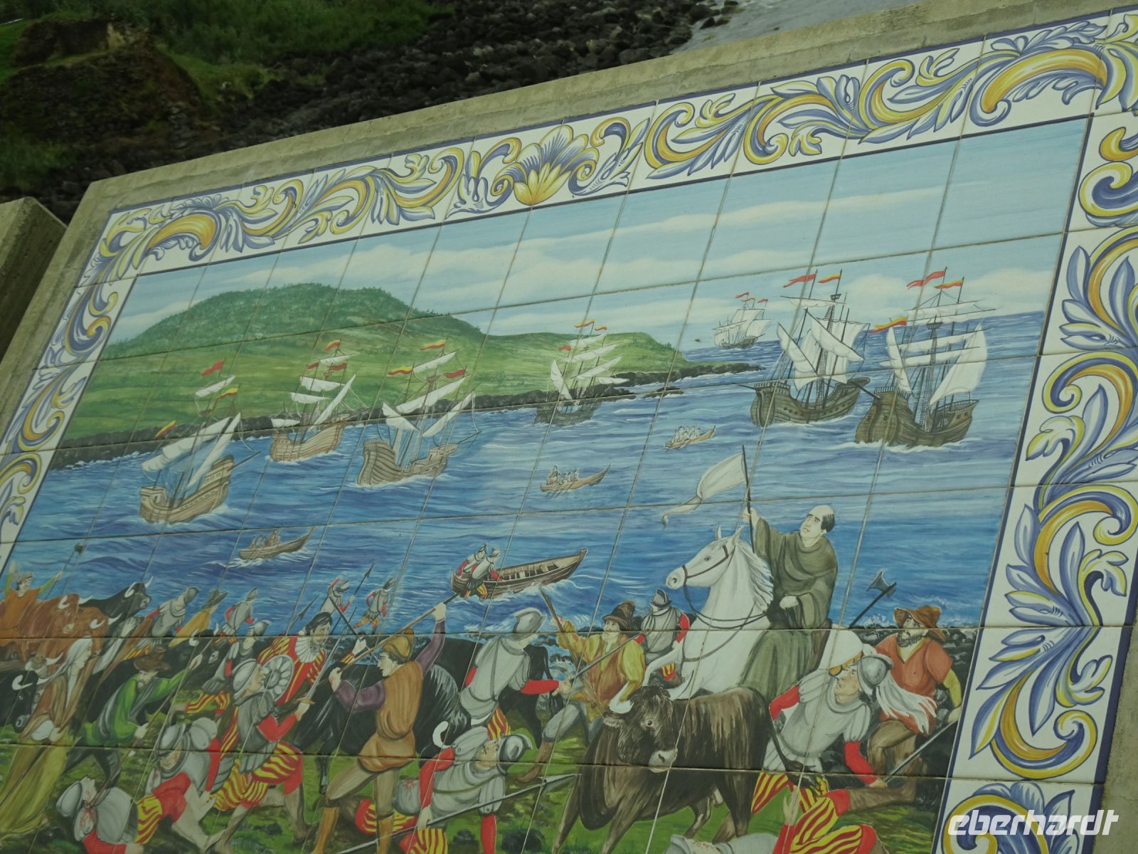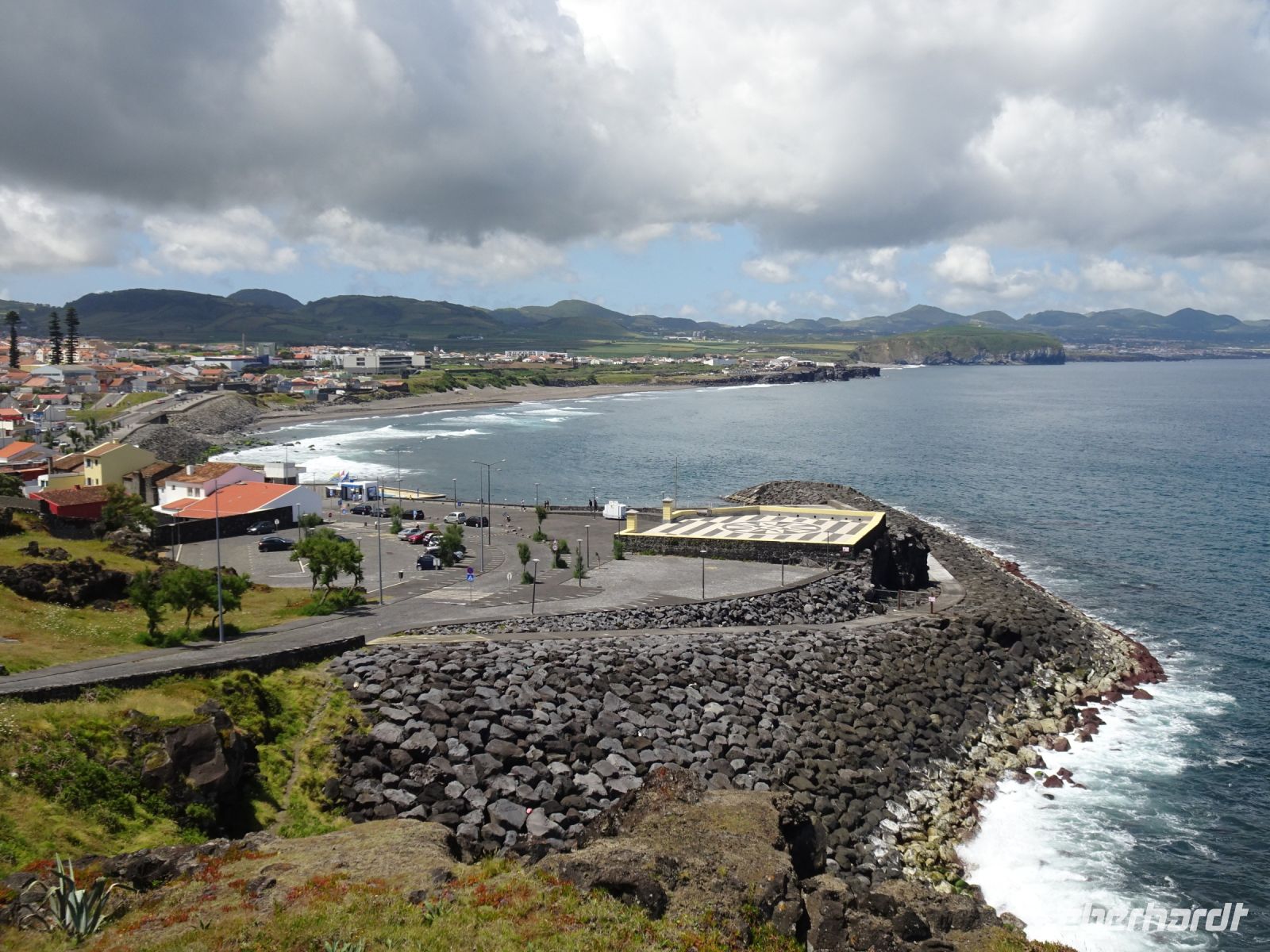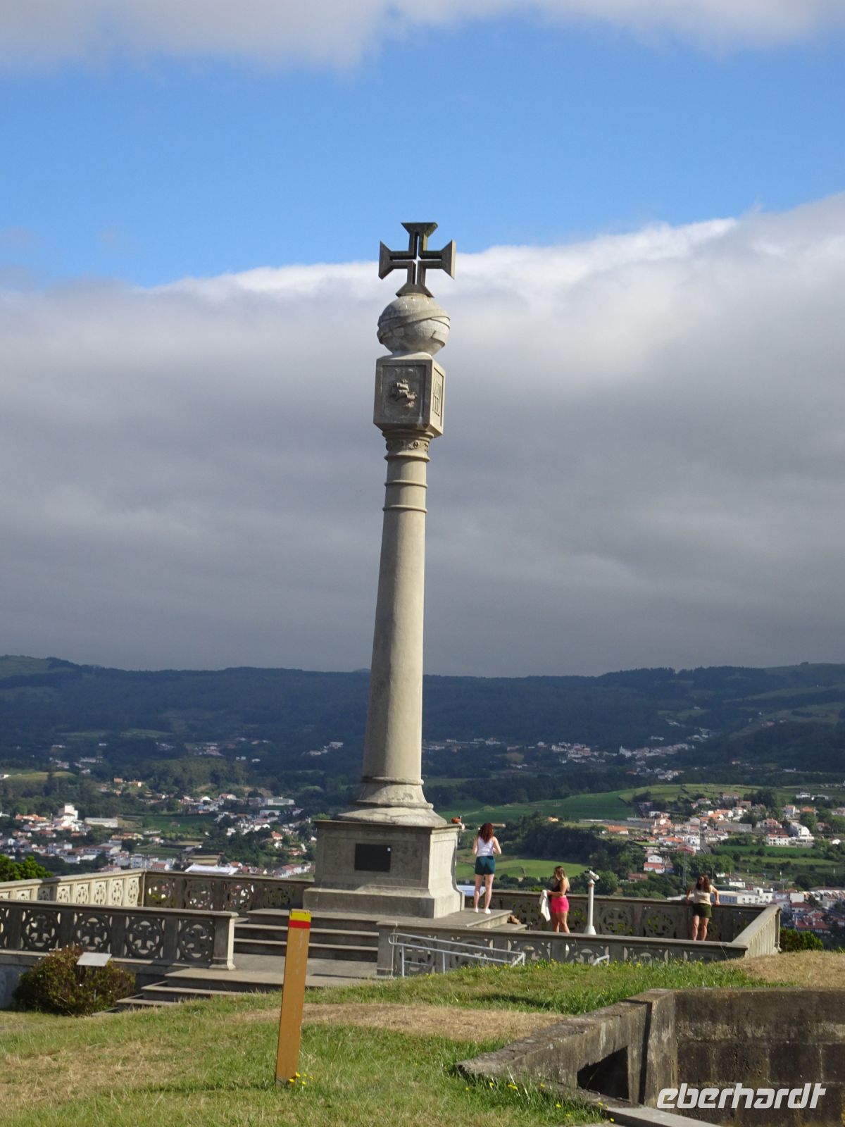 Ein verloschener Vulkan in der Nähe des Hotel und von Angra, der Monte Brasil, war unser erstes Ziel. Auf der höchsten Stelle des Berges eine Säule, gekrönt von einer Bänderkugel. Diese nutzten Seefahrer in der Antike zur Standortbestimmung. Ebenfalls auf dieser Säule das Kreuz des Christusritterordens. Das Monument wurde 1932 zum 500. Jahrestag der Besiedlung von Terceira eingeweiht. Da Terceira auch in der Vergangenheit in heftige Kämpfe zwischen Spaniern und Portugiesen verwickelt war, ist quasi als Trutzburg eine heute noch genutzte Kaserne prägend. Nicht unerwähnt muss auch die Anwesenheit der US-Armee mit einem stattlichen Luftwaffenstützpunkt sein.