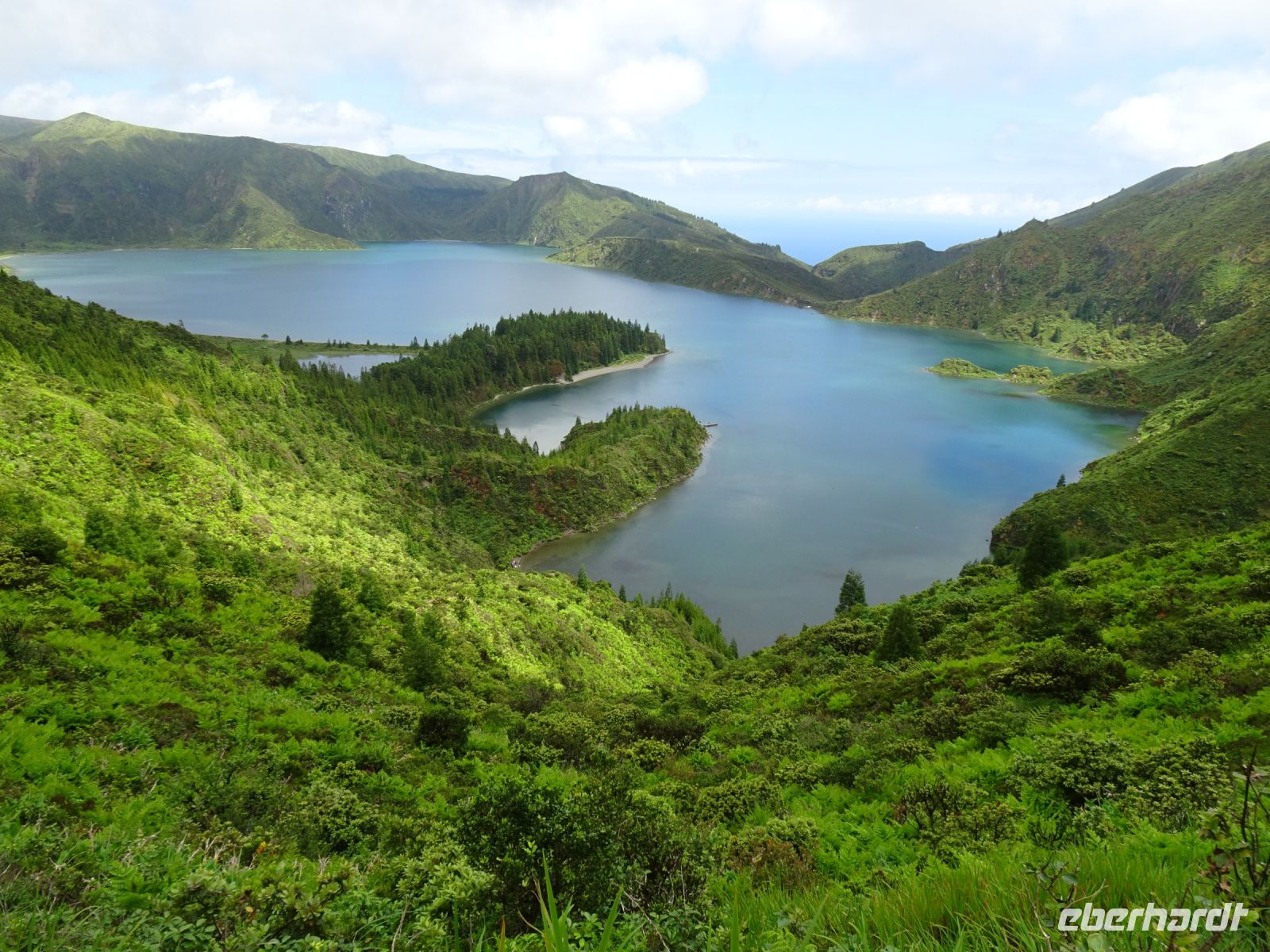 Wir setzten unsere Fahrt über die in der Mitte der Insel gelegene Bergkette mit einem Fotostopp am größten Kratersee der Insel fort. Wir hatten einen herrlichen Blick über die Insel und Aussicht auf den Berg Pico. Wunderbare Landschaft und tolle Fotomotive.