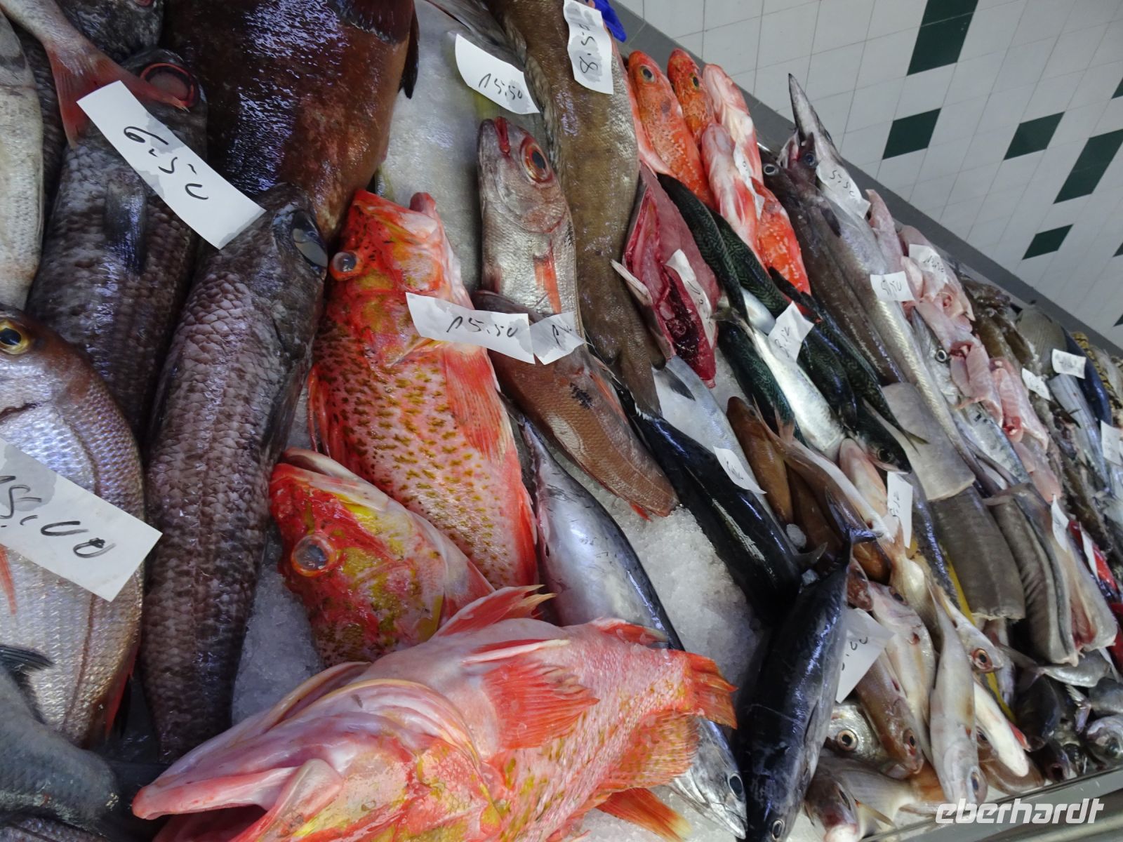 Ein besonderes Erlebnis in südlichen Ländern sind immer wieder die lokalen Märkte. Also ging es zusätzlich zum Programm zu Fuß zum in der Nähe des Hotels befindlichen Markt. Allerdings ist Dienstag nicht der beste Markttag, da erst zum Wochenende die Händler mit ihren Angeboten kommen und die Einheimischen für das Wochenende einkaufen. Wir bekamen trotzdem einen guten Einblick in das Obst- und Gemüseangebot. Und dann die Vielfalt des Fischangebotes. Beeindruckend!