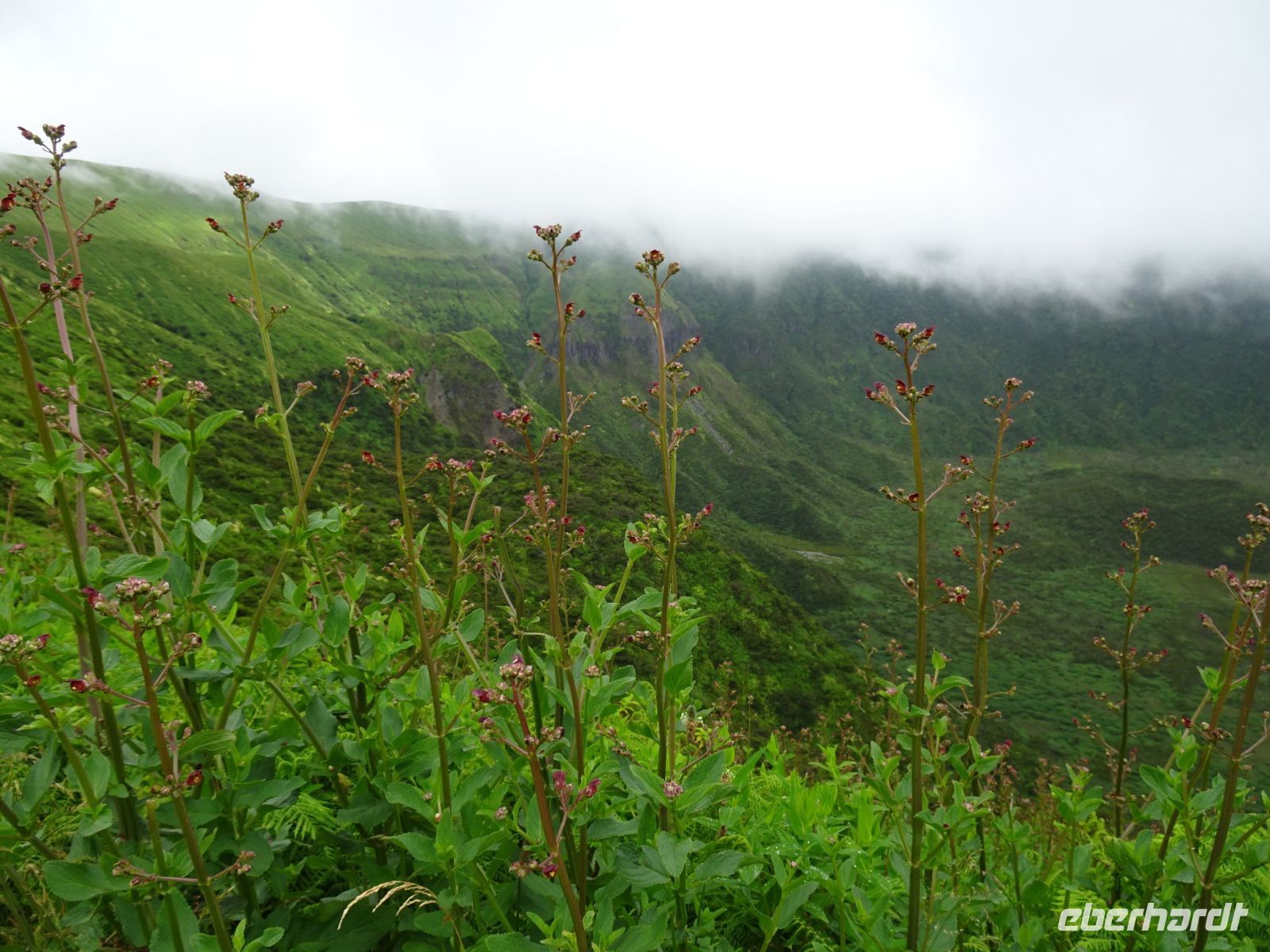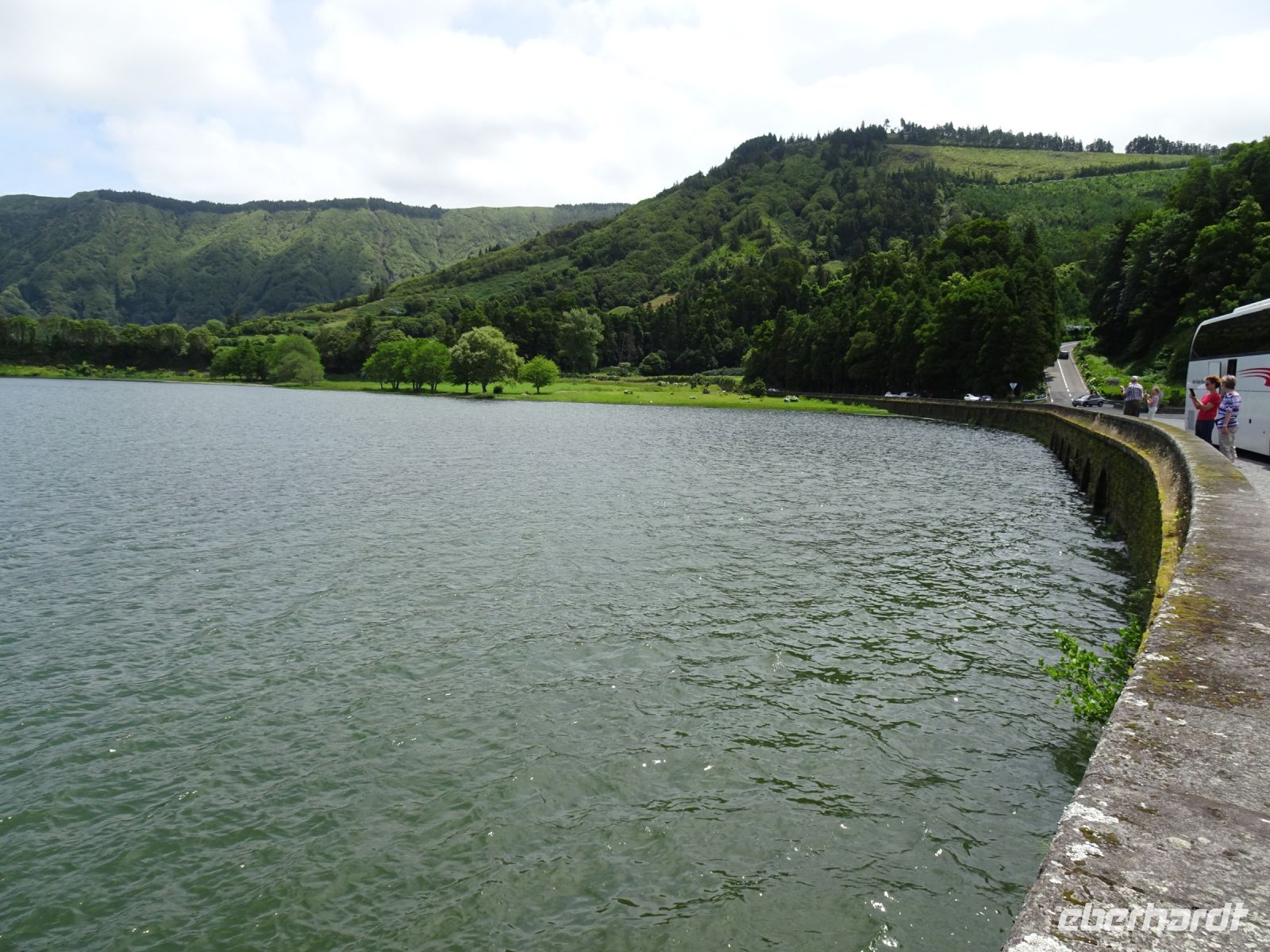 Nach einer ausgiebigen Mittagspause, die die Reisegäste zu einer Mahlzeit oder zum Ortsbummel nutzten, ging unsere Fahrt weiter zum Aussichtspunkt auf den Feuersee - Lagoa do Fogo. Wir hatten eine tolle Aussicht auf diese unter Schutz stehende Caldera eines erloschenen Vulkans mit ca. 6 km Durchmesser, entstanden nach einem Vulkanausbruch 1563.. Kurze Zeit später verwehrten uns Wolken weitere beeindruckende Blicke auf den See.