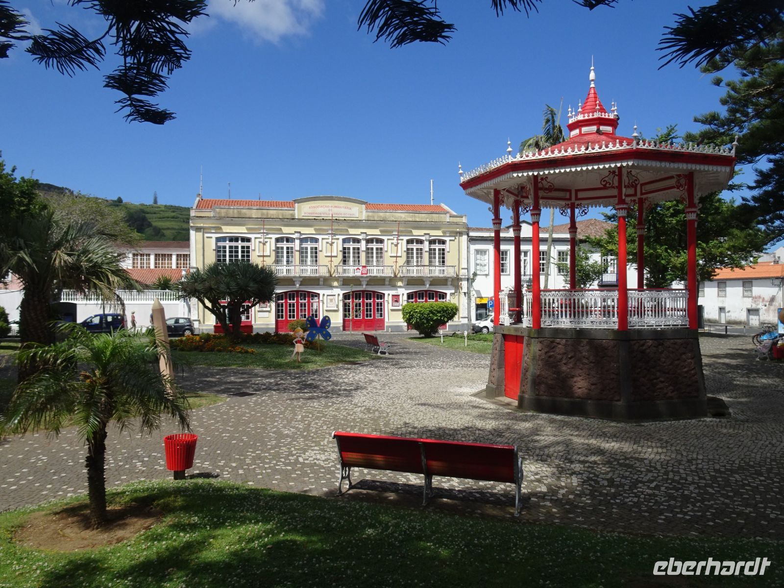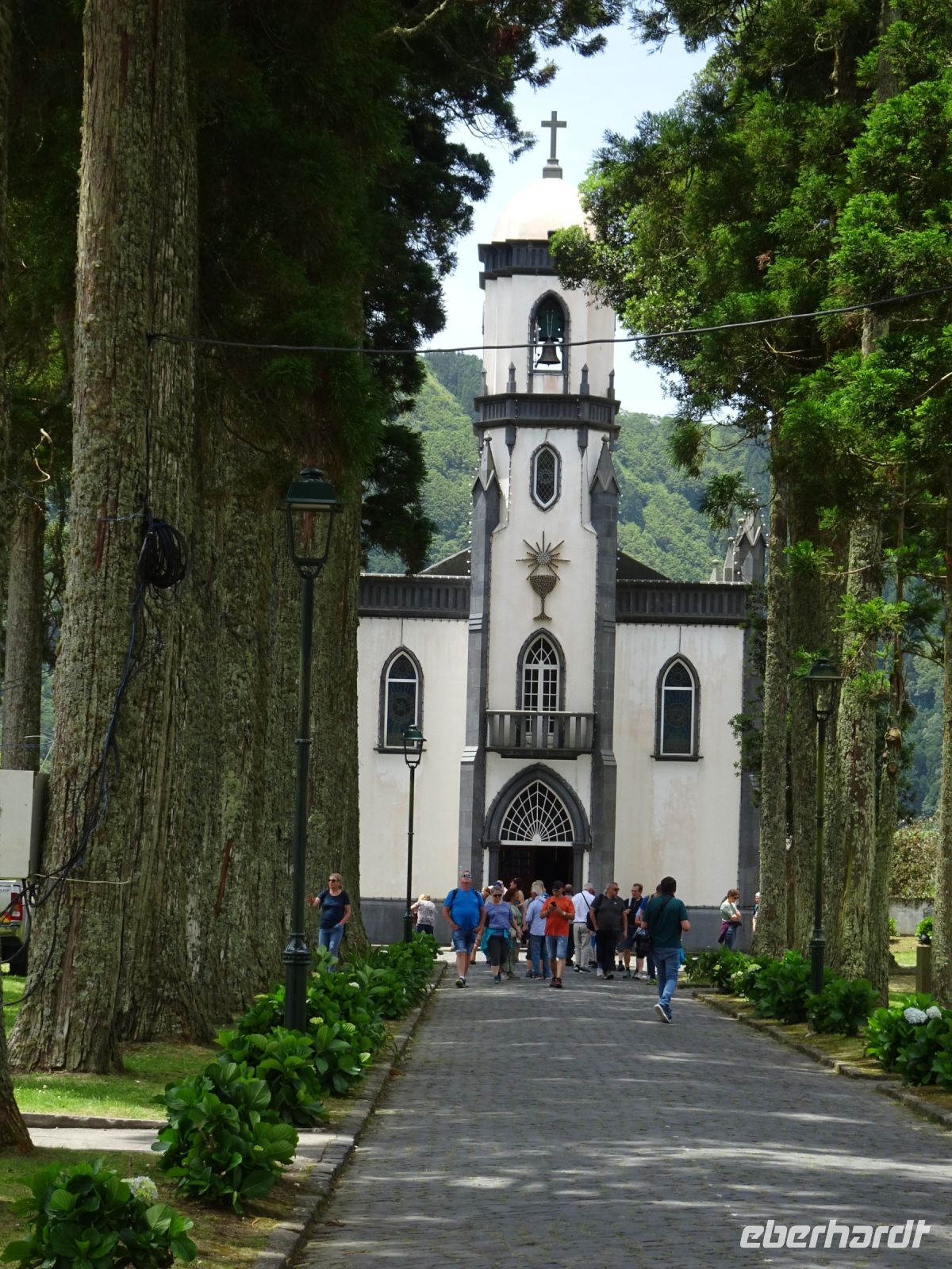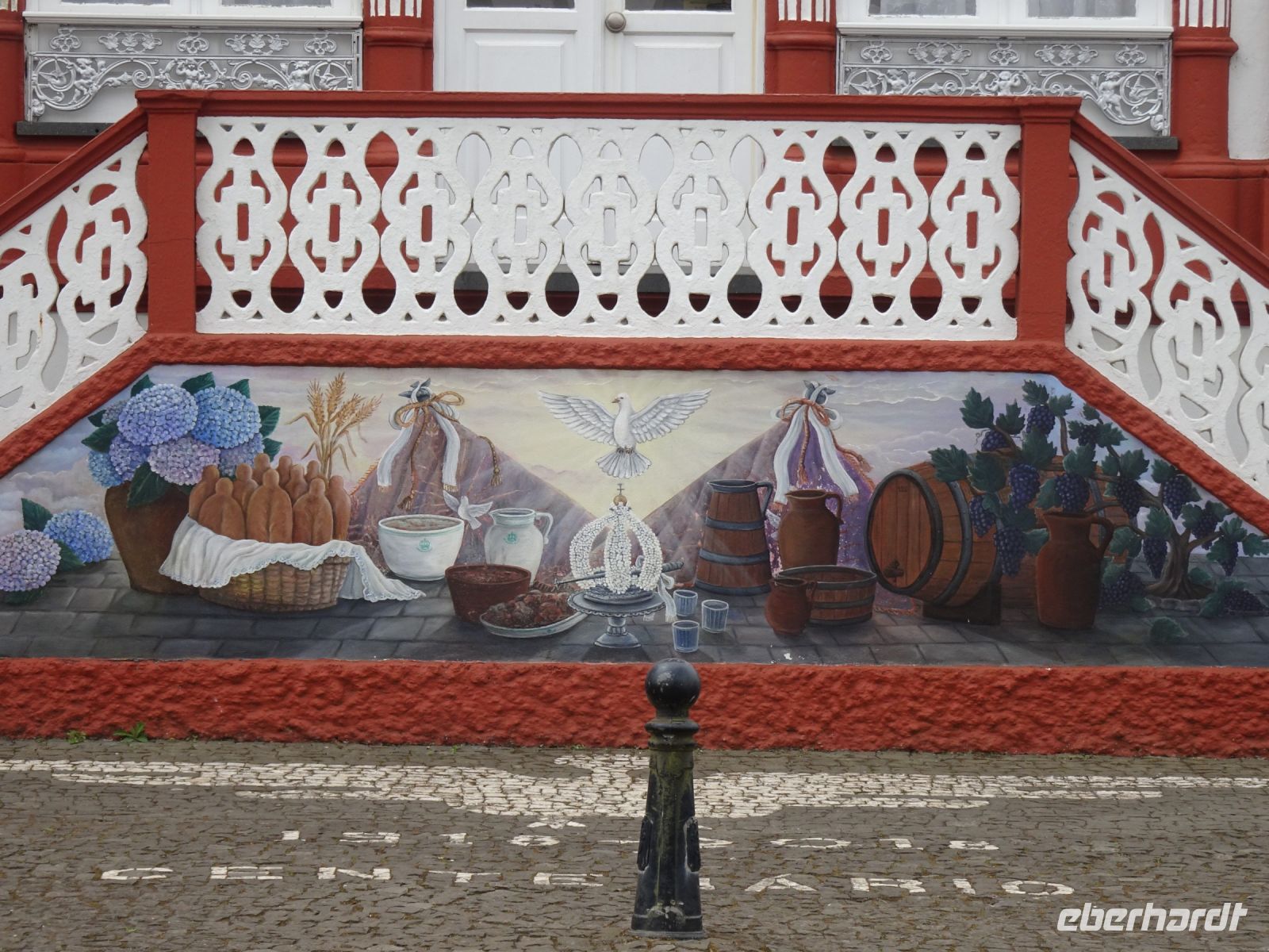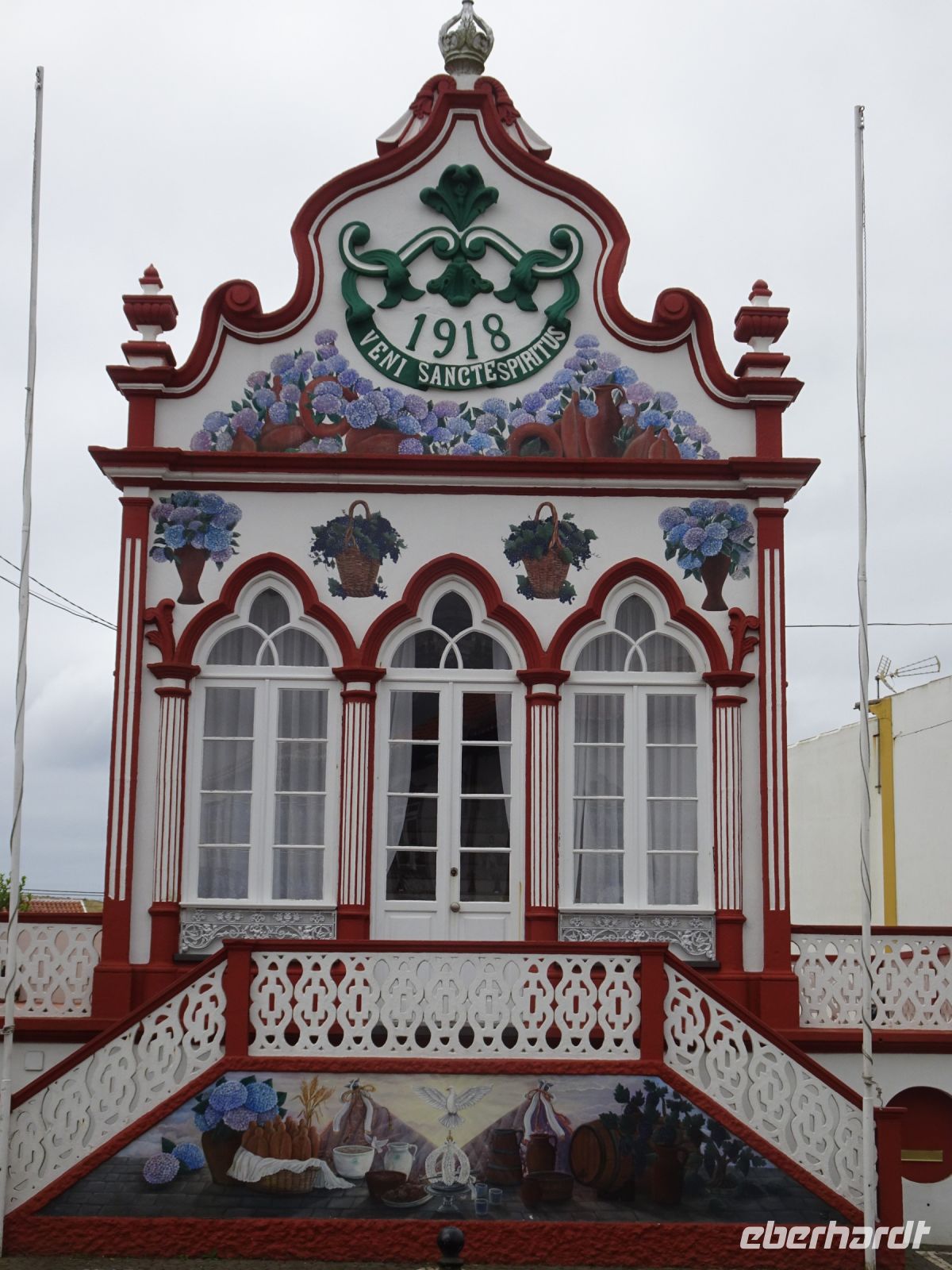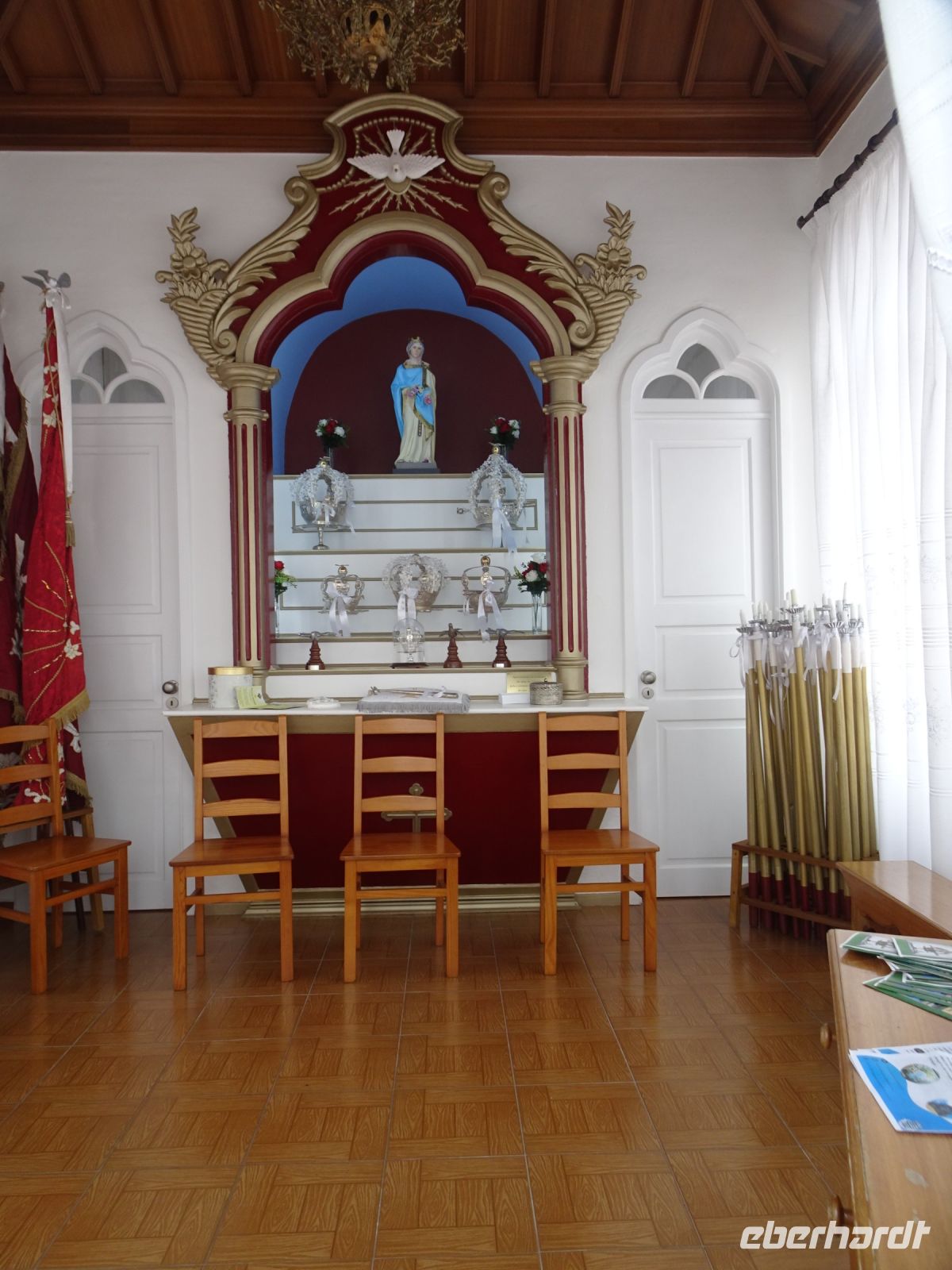 Weiter auf unserer Inselrundfahrt ging es die Nordküste entlang. Etwas im Inselinneren, in São Sebastião, dann punkt um 12 Uhr Gottesdienst in einer stattlichen katholischen Kirche und daneben: ein Heiliggeist-Tempel, einer der Prächtigsten, wie unser Reiseleiter Thomas erwähnte. Wir bestaunten die mit großer Symbolik gekennzeichnete Ausgestaltung.
