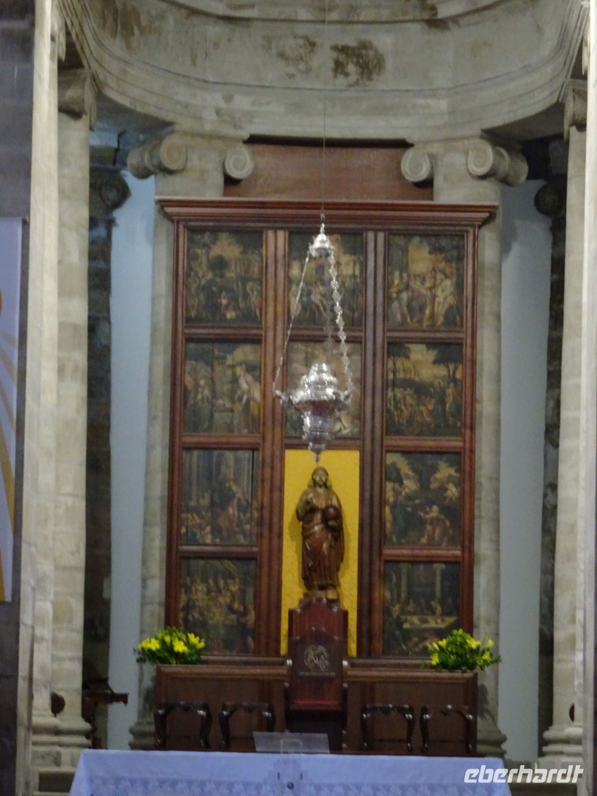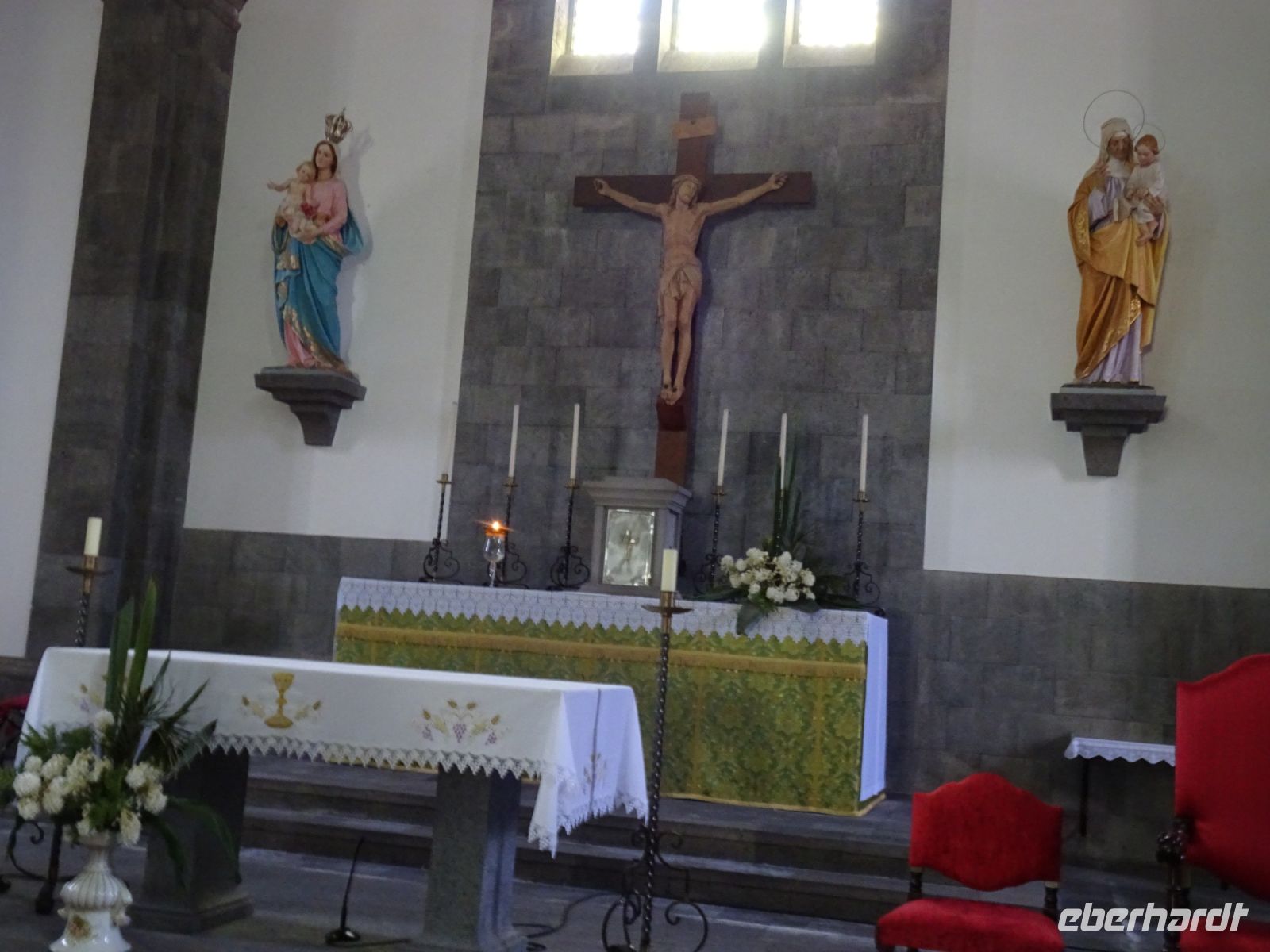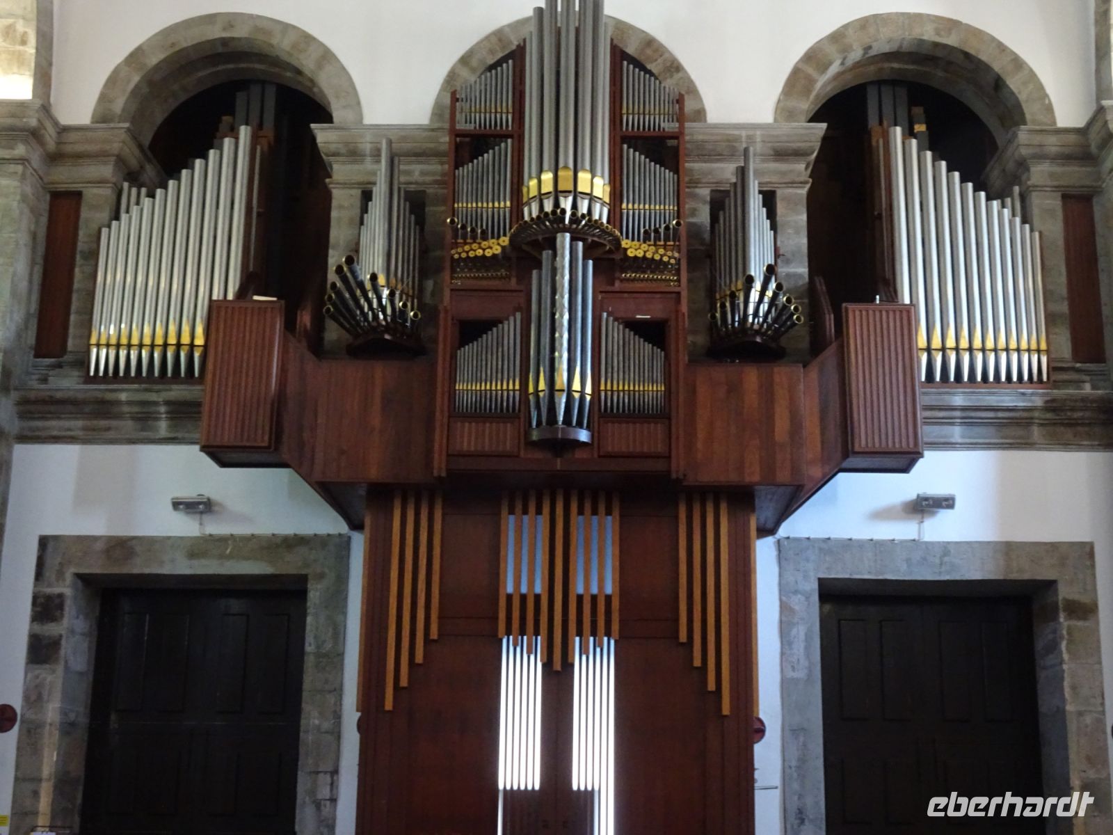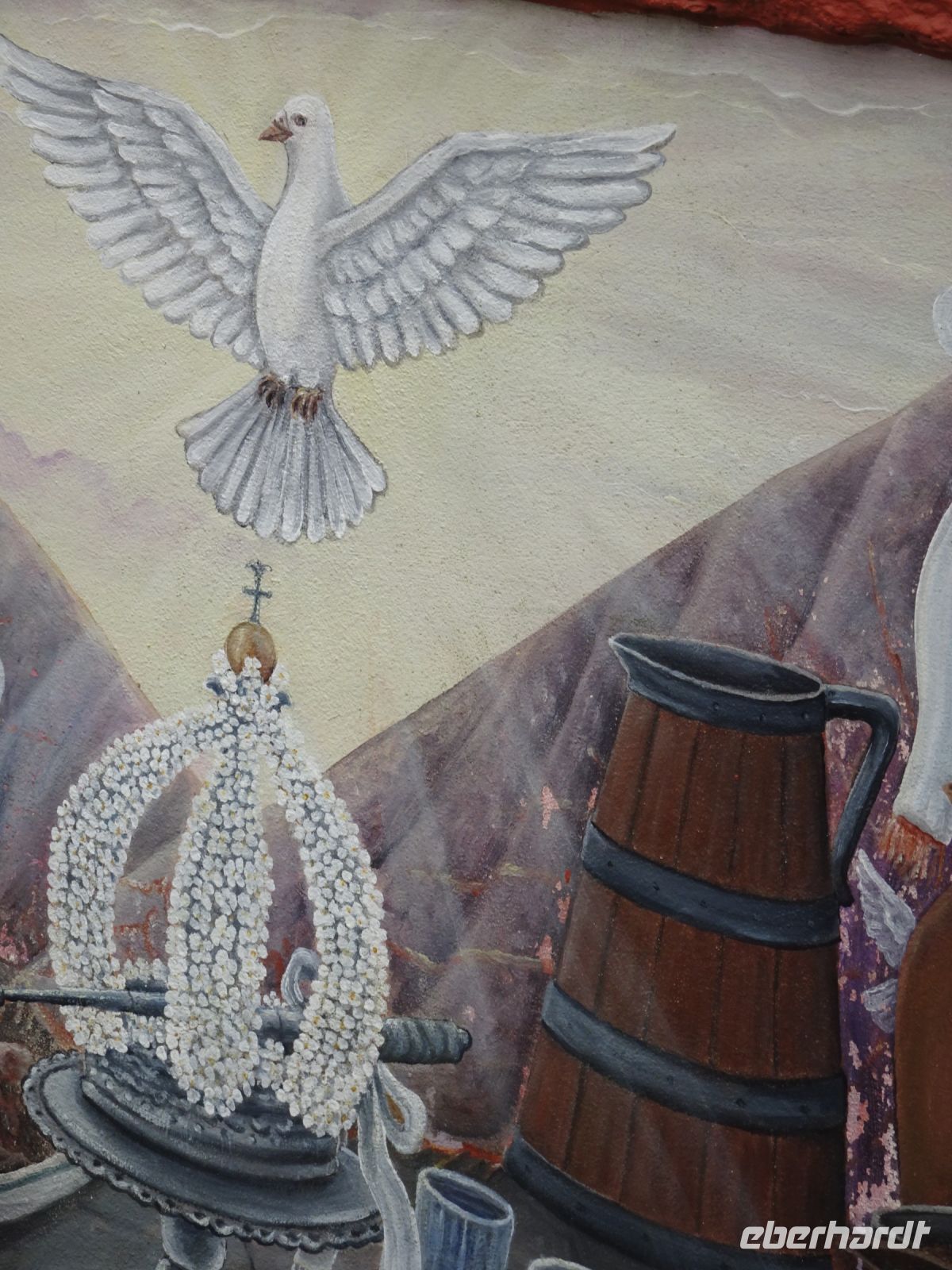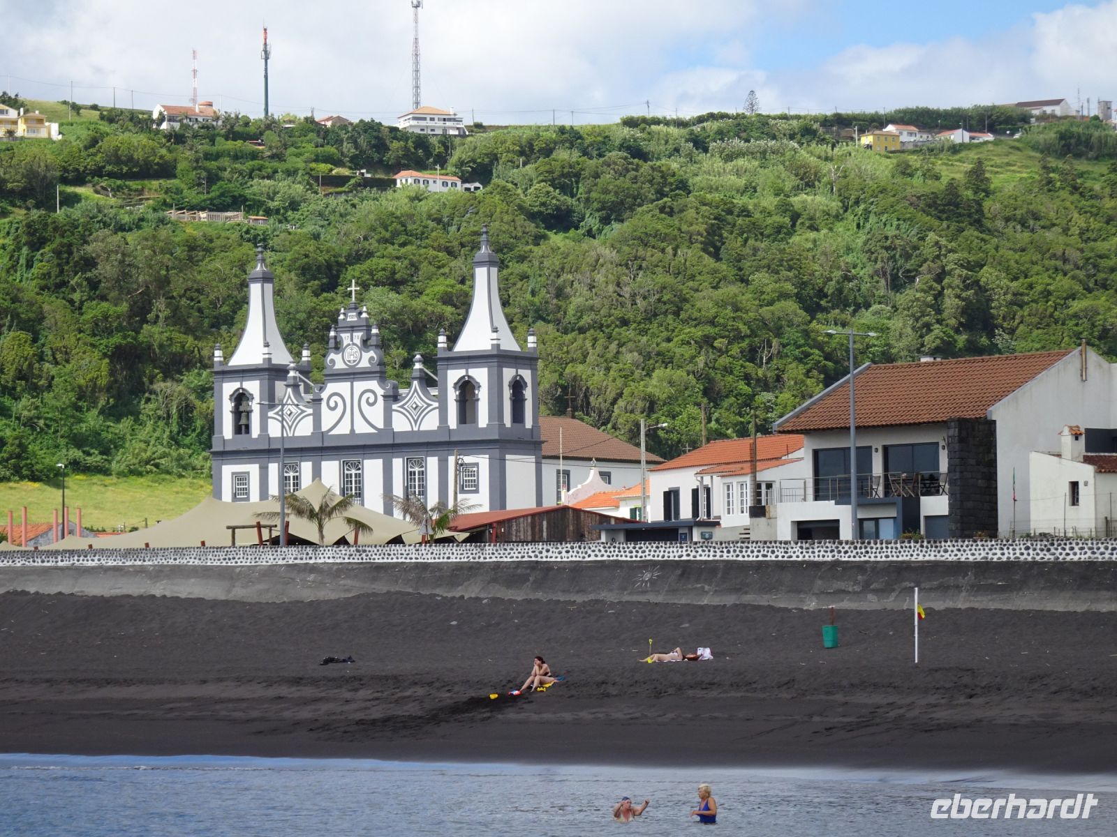 Weiter auf unserer Inselrundfahrt ging es die Nordküste entlang. Etwas im Inselinneren, in São Sebastião, dann punkt um 12 Uhr Gottesdienst in einer stattlichen katholischen Kirche und daneben: ein Heiliggeist-Tempel, einer der Prächtigsten, wie unser Reiseleiter Thomas erwähnte. Wir bestaunten die mit großer Symbolik gekennzeichnete Ausgestaltung.